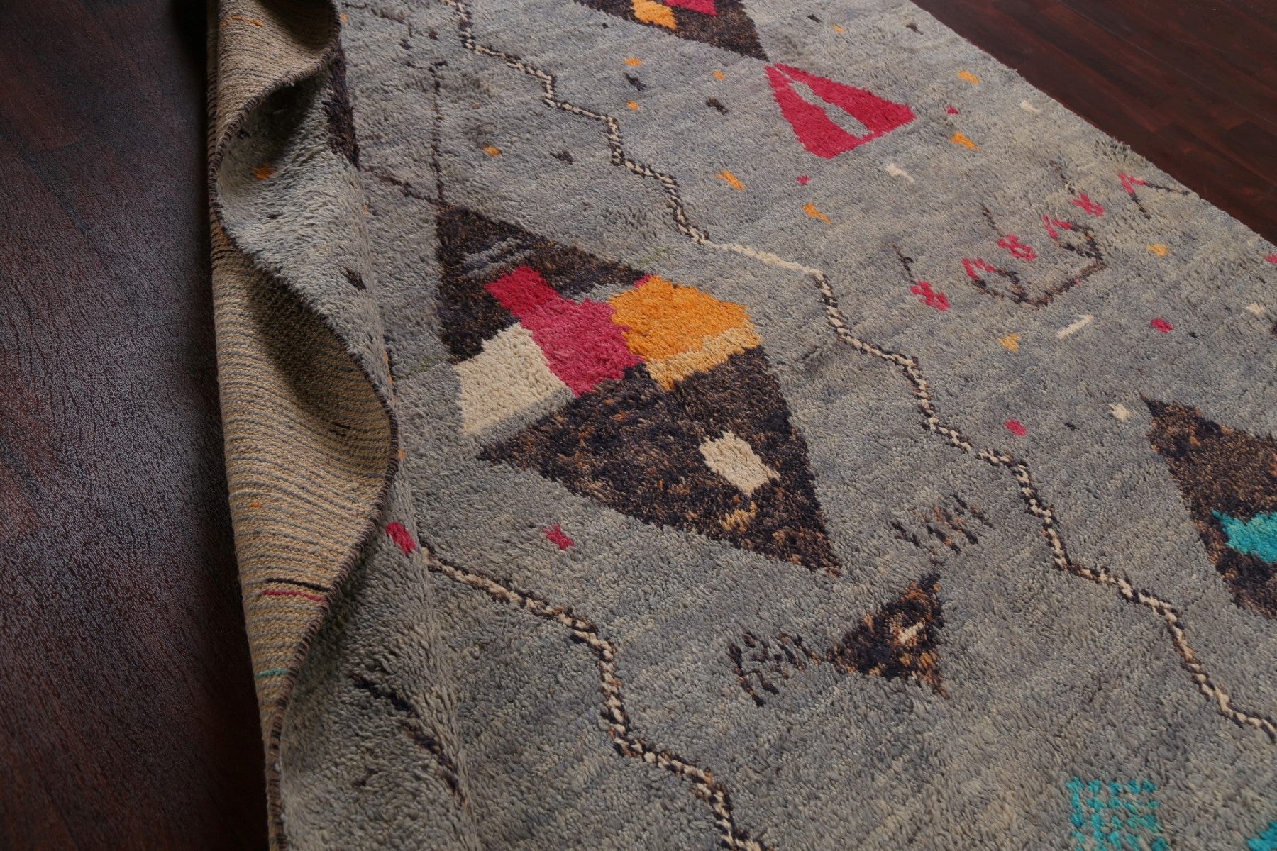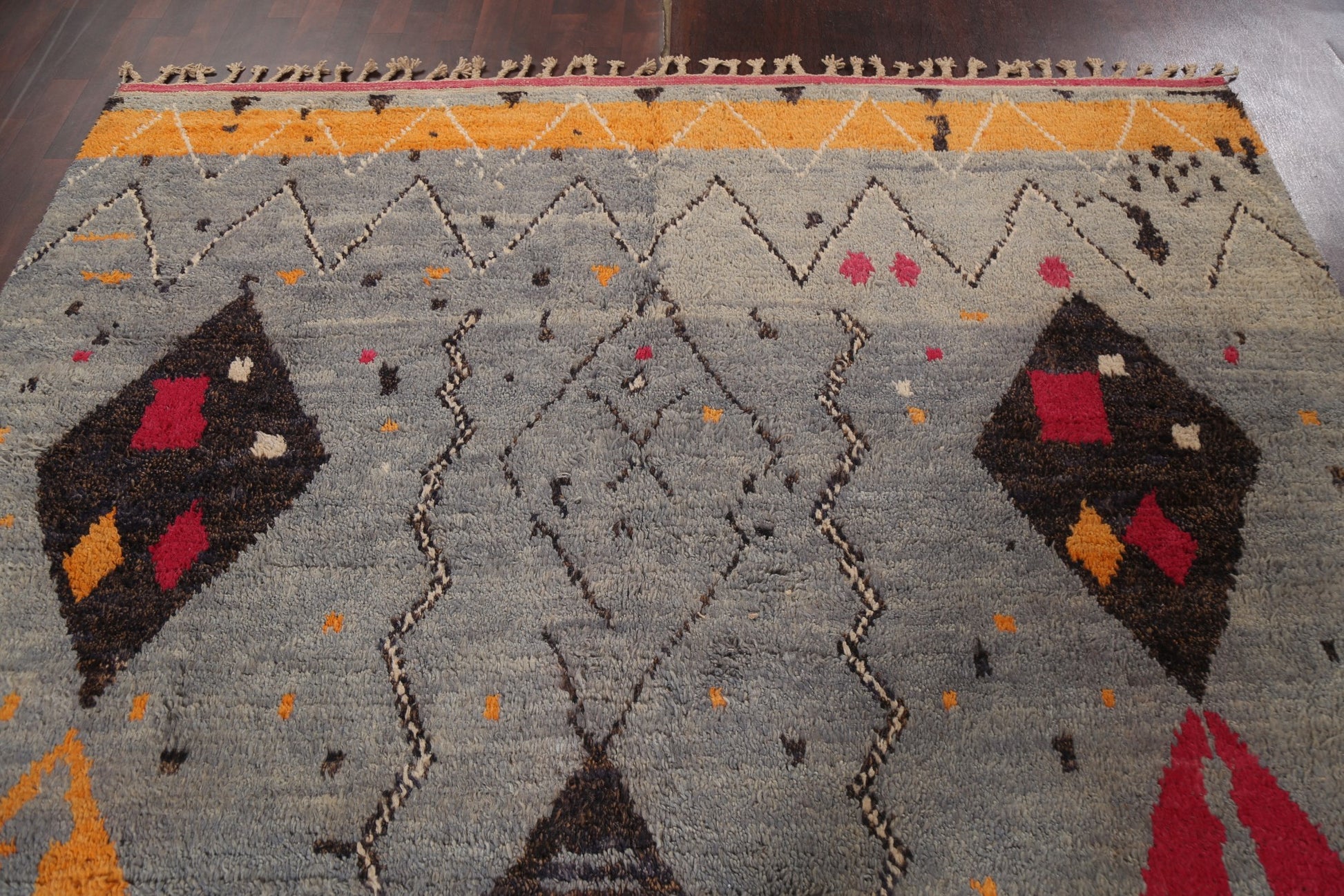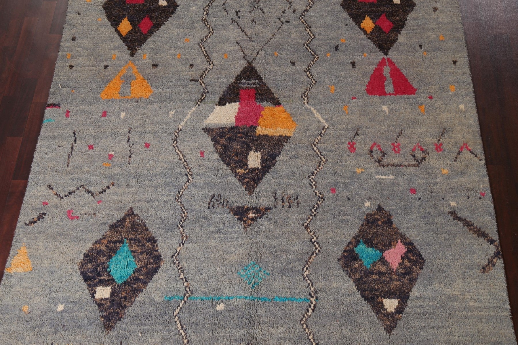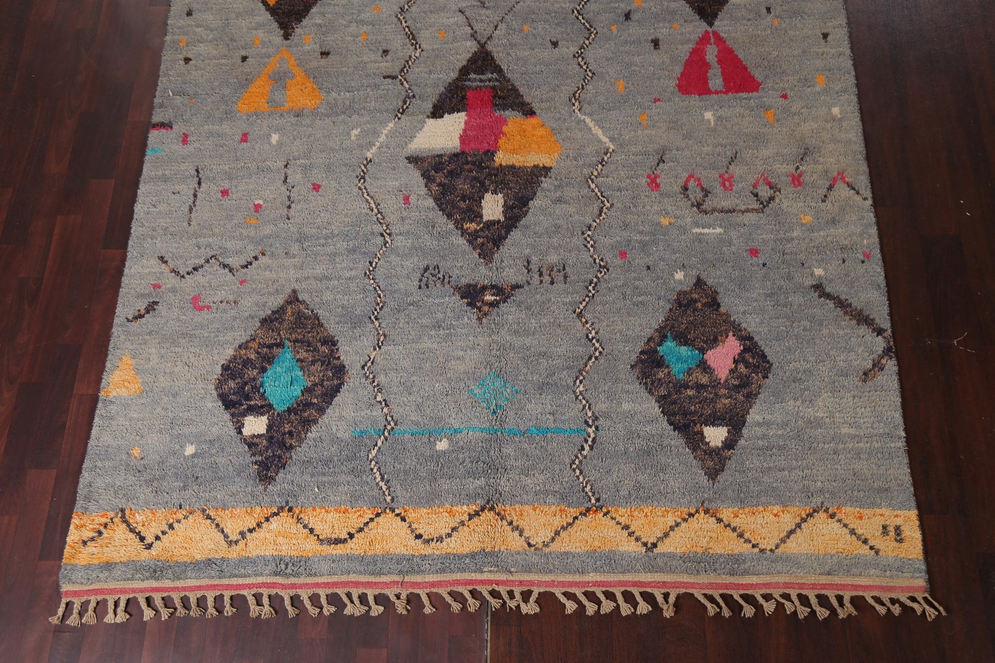A Beautiful Genuine Morocco Moroccan rug is Hand Knotted by skillful weavers in Morocco with 100% Wool Material. This rug is in New, First Quality condition. dimensions are 10' 11'' X 7' 11'' in foot and 333 X 241 in centimeter. the primary color is Multi-Colored.