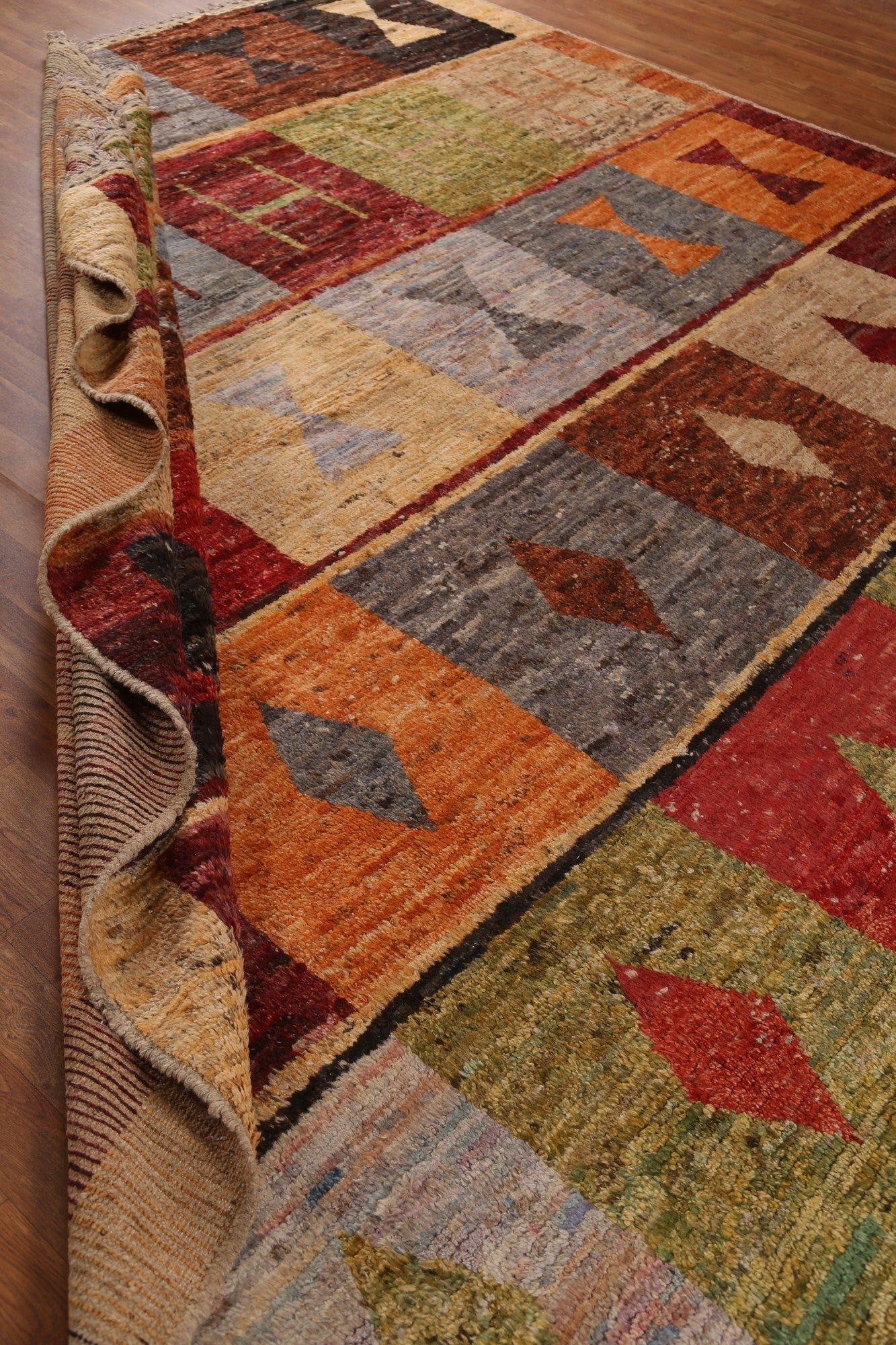 A Beautiful Genuine Pakistan Moroccan rug is Hand Knotted by skillful weavers in Pakistan with 100% Wool Material. This rug is in condition. dimensions are 13' 6'' X 10' 2'' in foot and 411 X 310 in centimeter. the primary color is Multi-Colored.