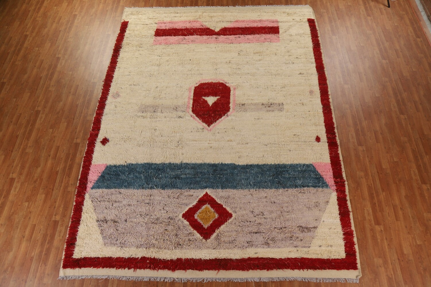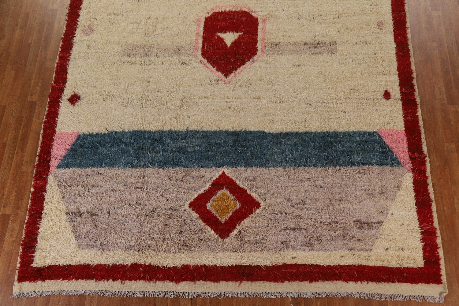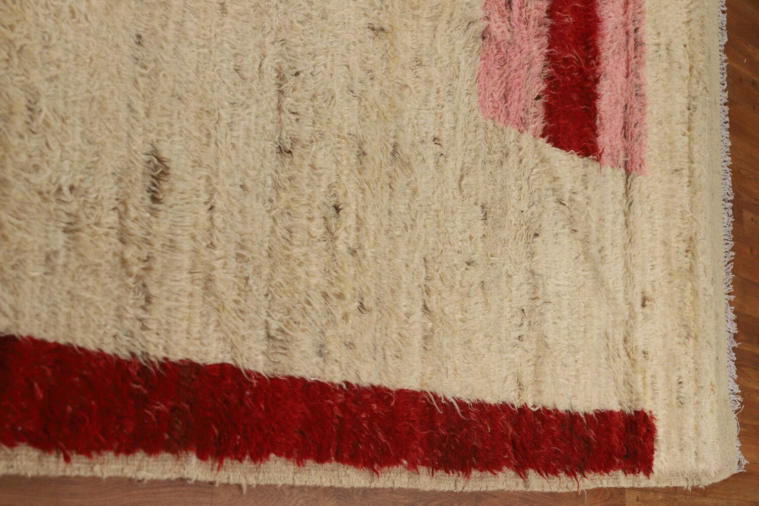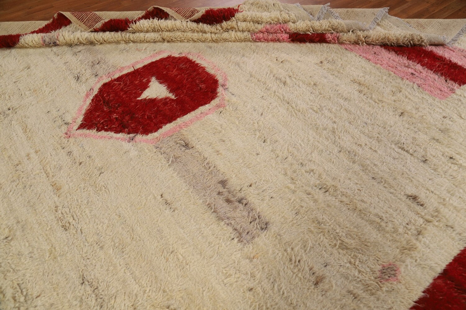 A Beautiful Genuine Pakistan Moroccan rug is Hand Knotted by skillful weavers in Pakistan with 100% Wool Material. This rug is in condition. dimensions are 14' 0'' X 10' 5'' in foot and 427 X 318 in centimeter. the primary color is Beige & Ivories.