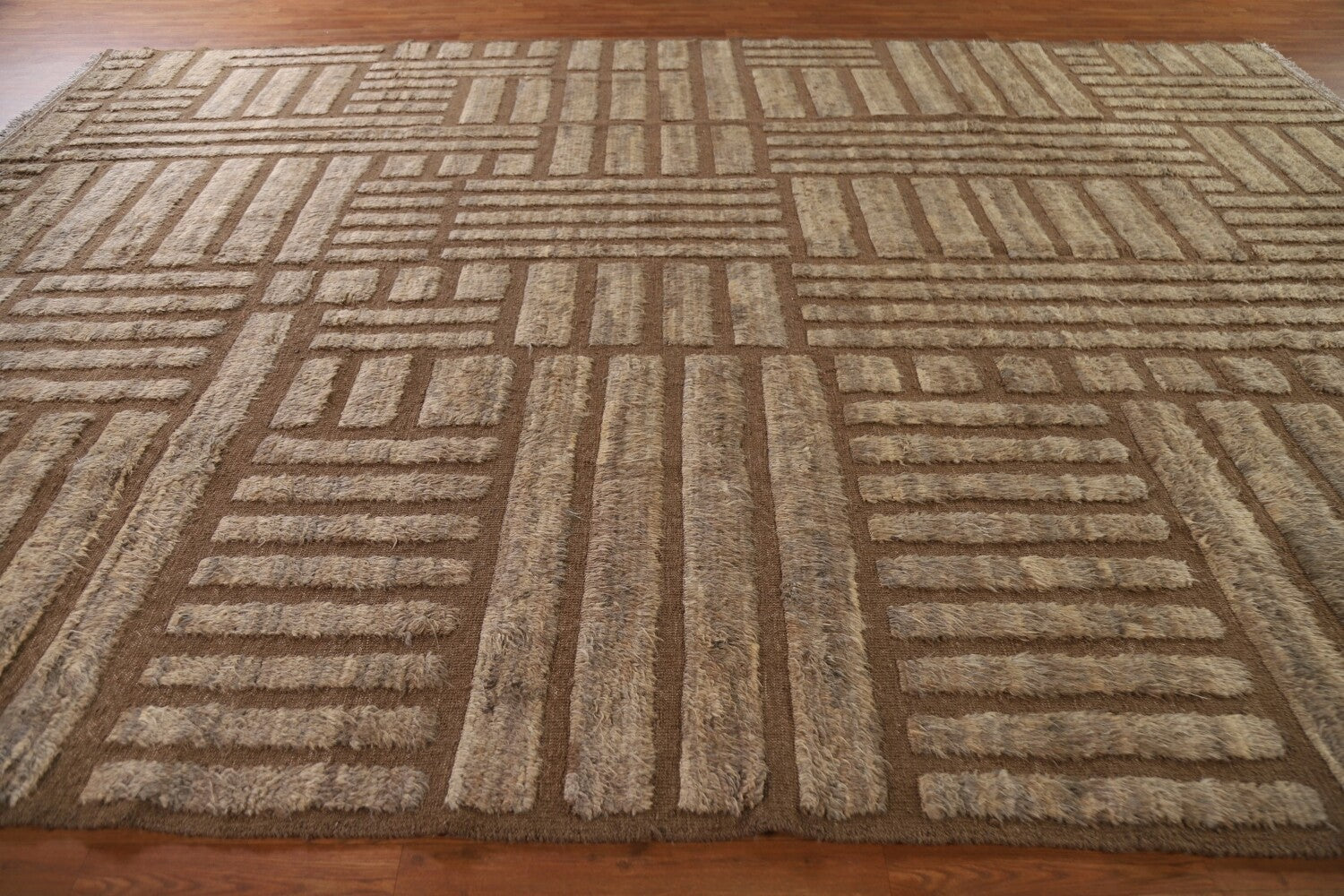 A Beautiful Genuine Pakistan Moroccan rug is Hand Knotted by skillful weavers in Pakistan with 100% Wool Material. This rug is in condition. dimensions are 13' 10'' X 10' 0'' in foot and 422 X 305 in centimeter. the primary color is Brown.