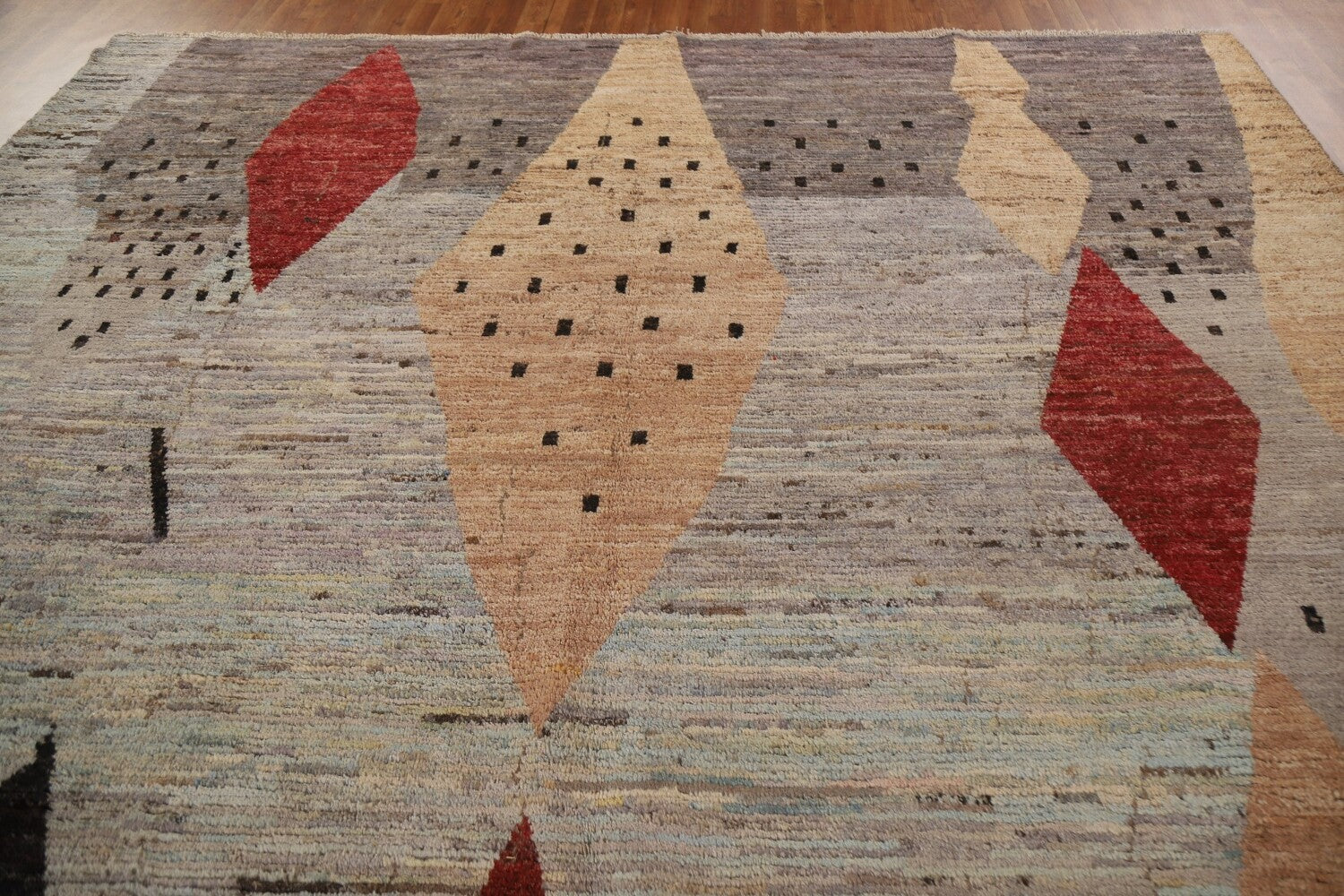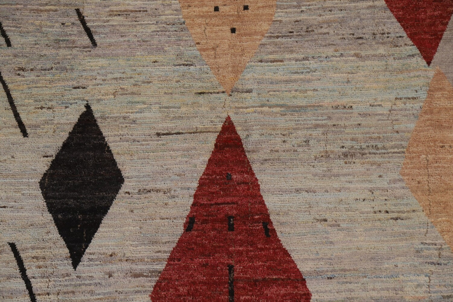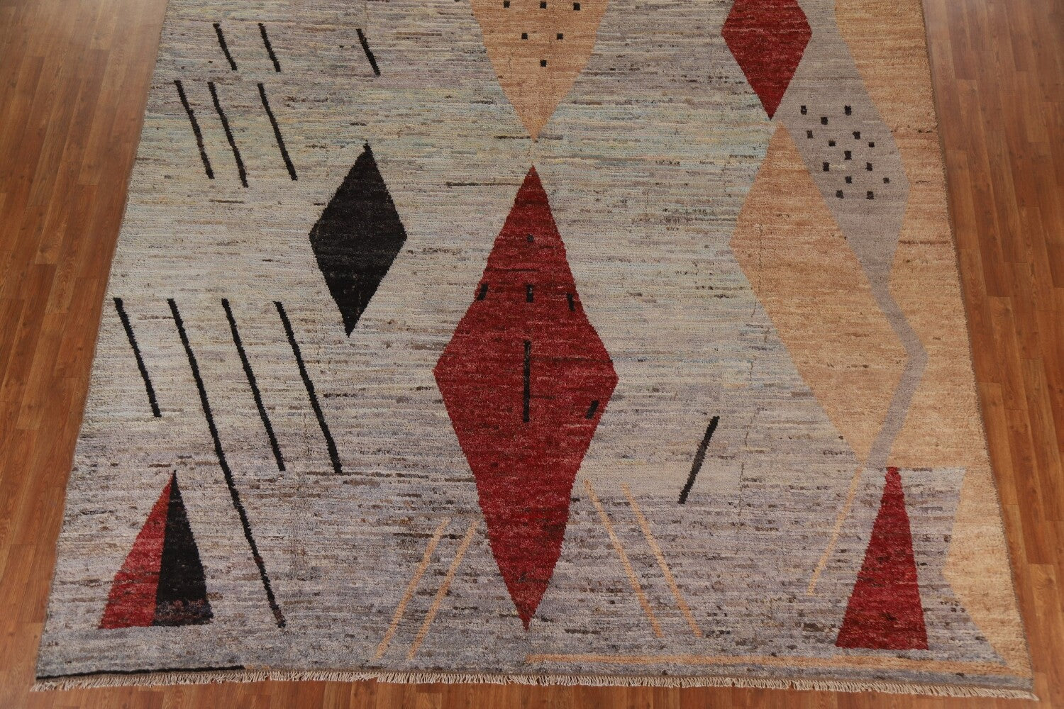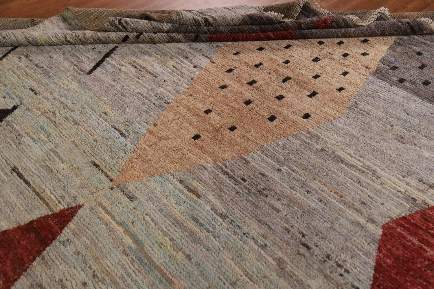 A Beautiful Genuine Pakistan Moroccan rug is Hand Knotted by skillful weavers in Pakistan with 100% Wool Material. This rug is in condition. dimensions are 13' 6'' X 10' 5'' in foot and 411 X 318 in centimeter. the primary color is Greys & Charcoal.