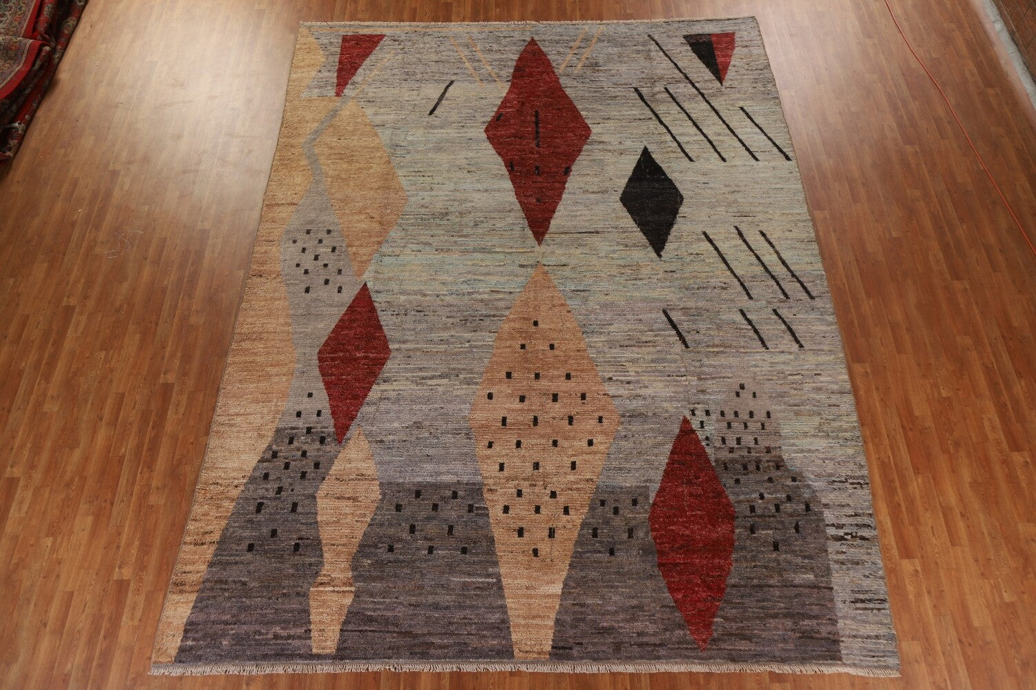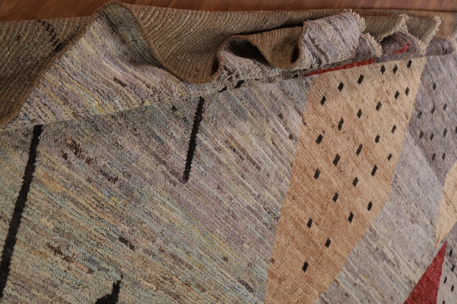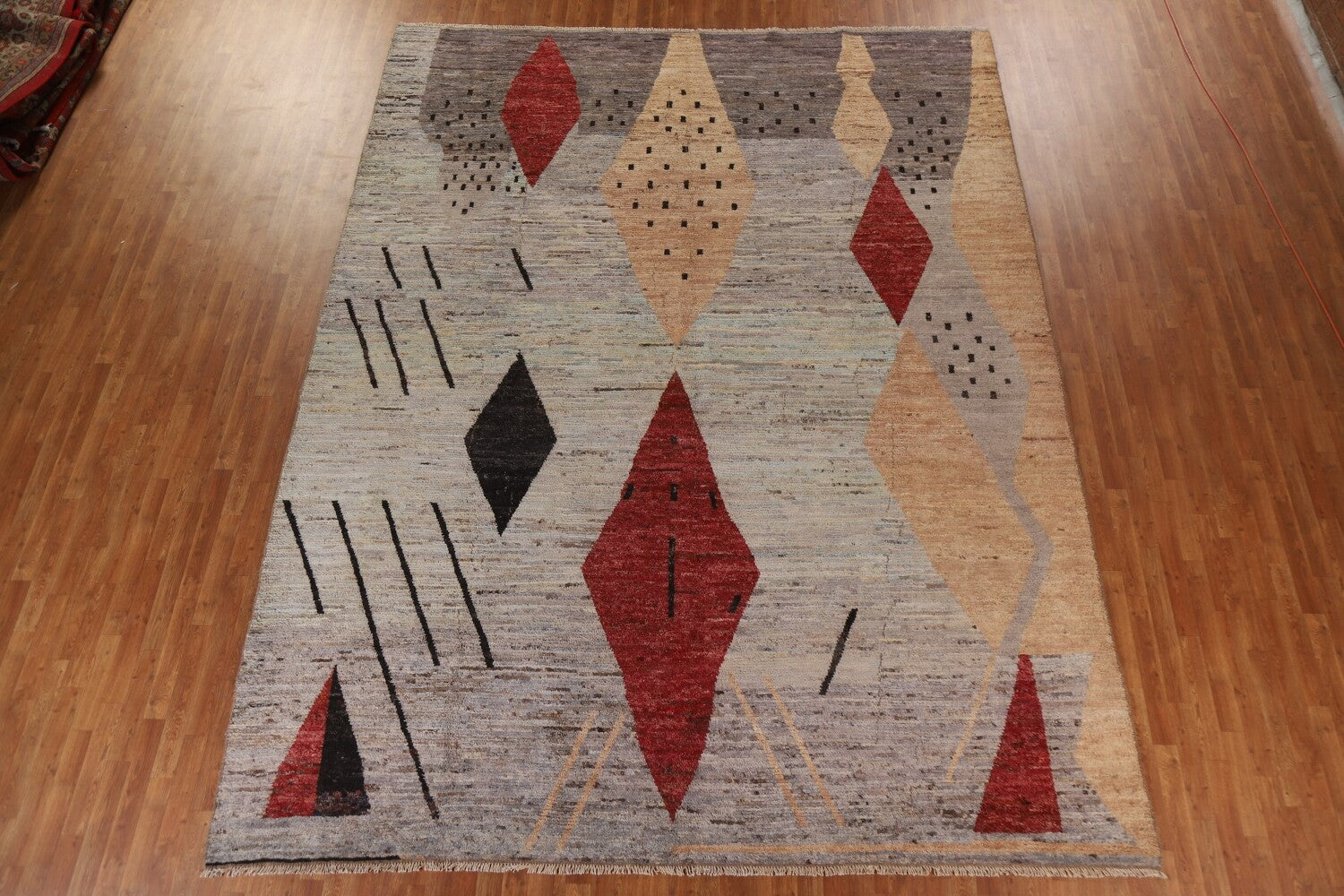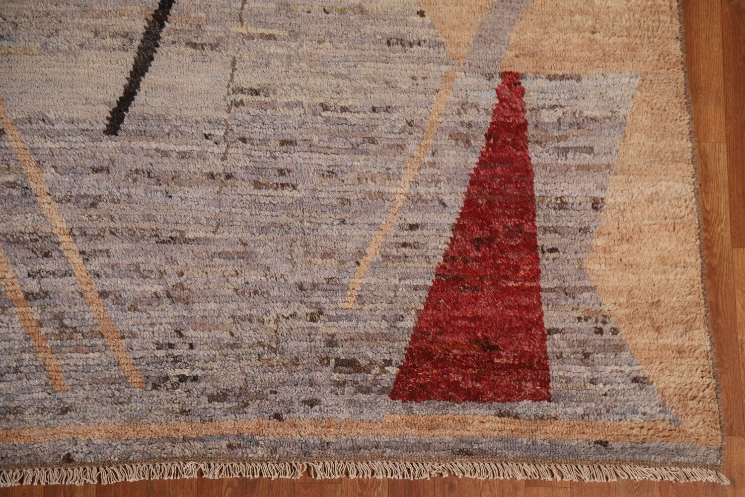 A Beautiful Genuine Pakistan Moroccan rug is Hand Knotted by skillful weavers in Pakistan with 100% Wool Material. This rug is in condition. dimensions are 13' 6'' X 10' 5'' in foot and 411 X 318 in centimeter. the primary color is Greys & Charcoal.
