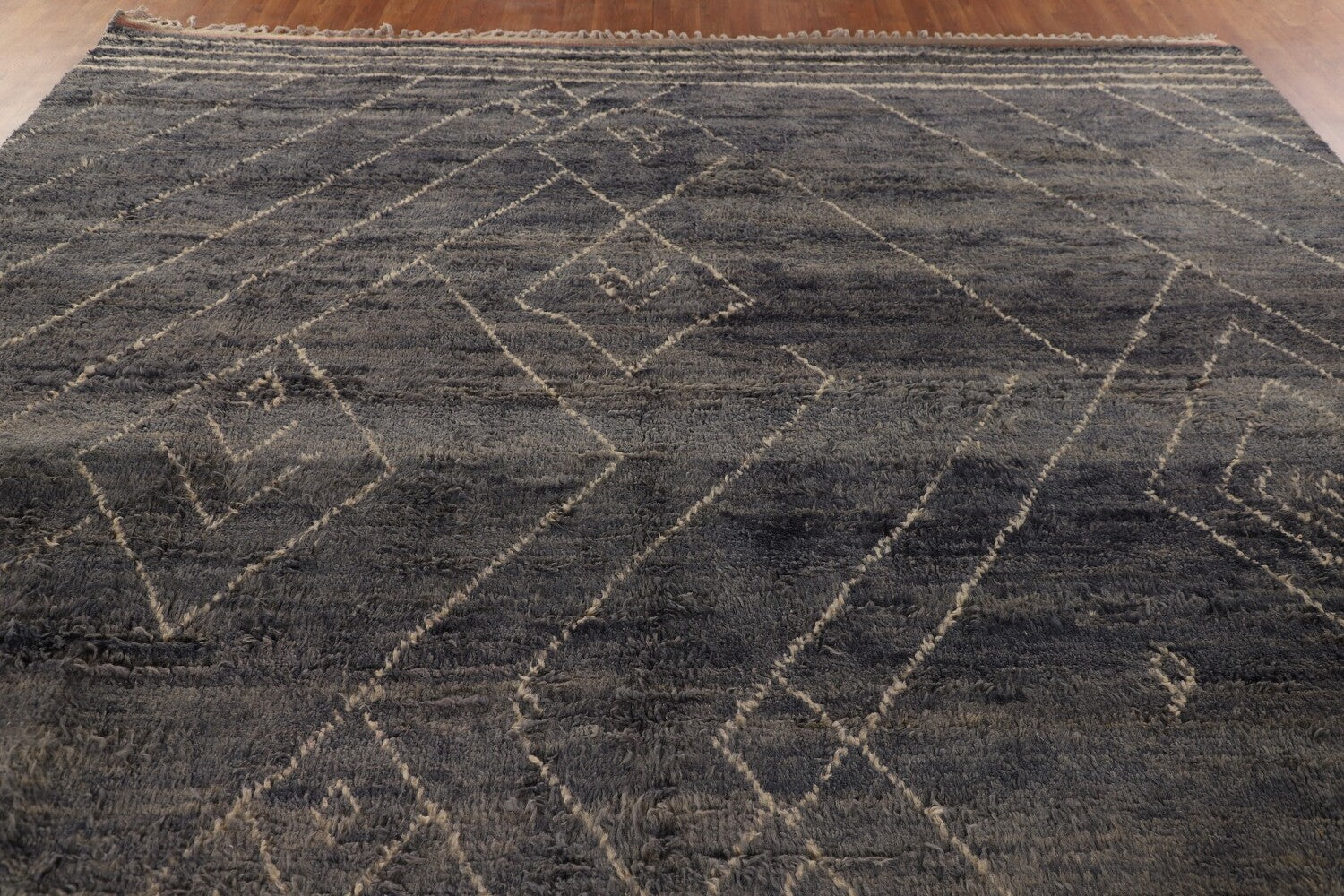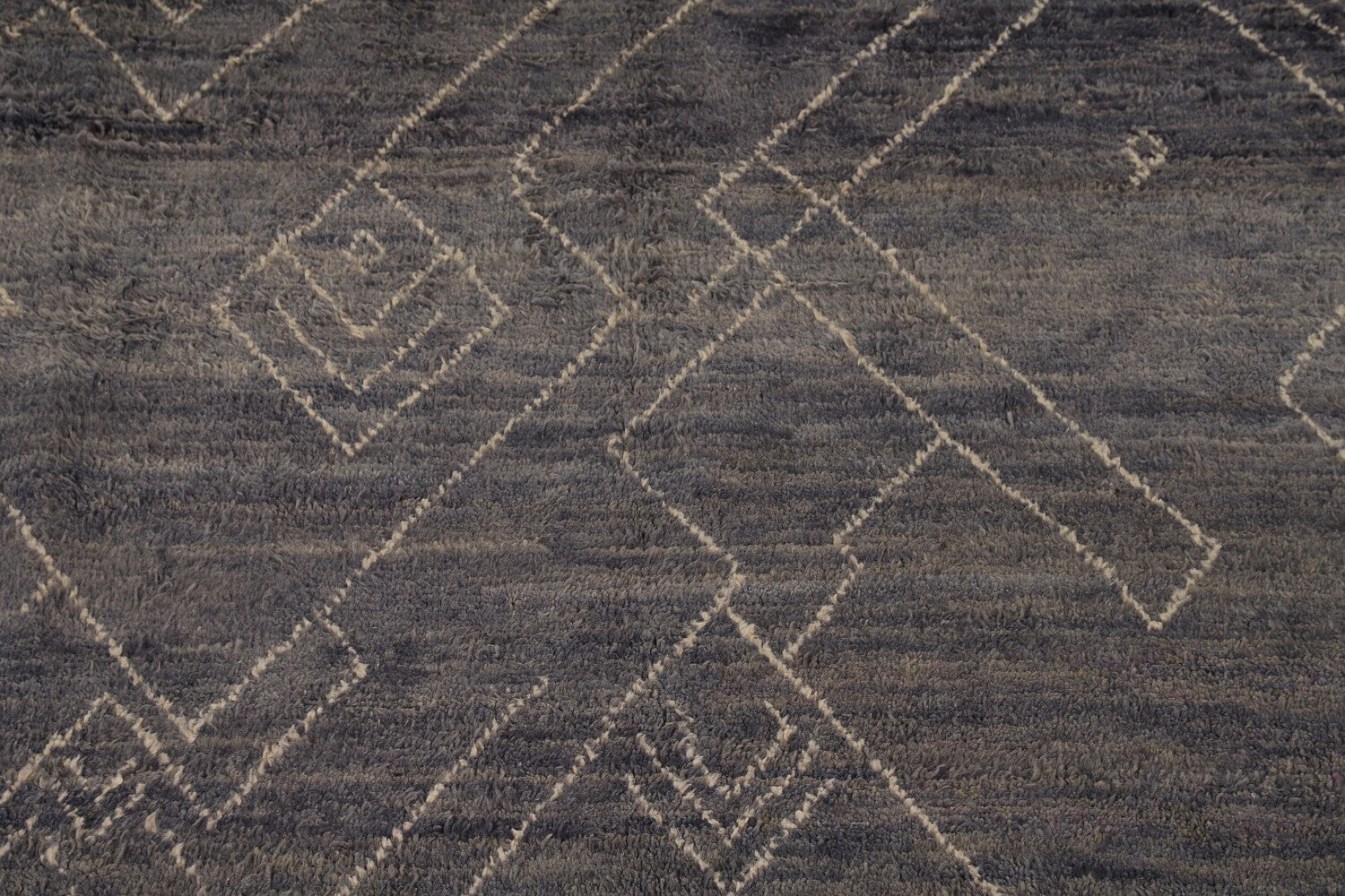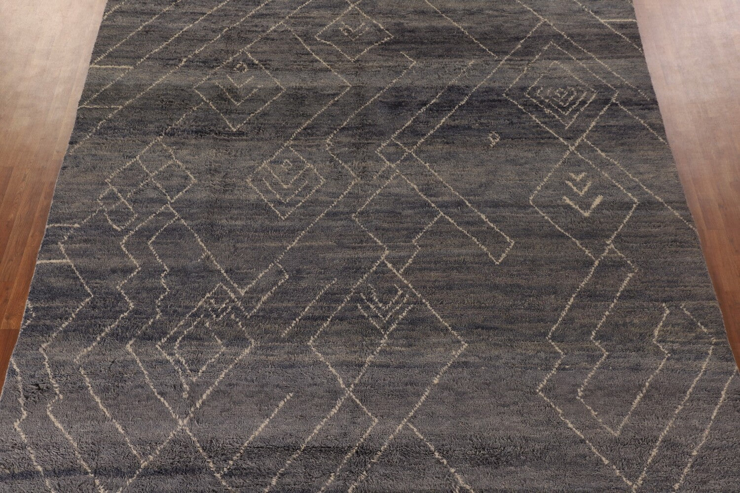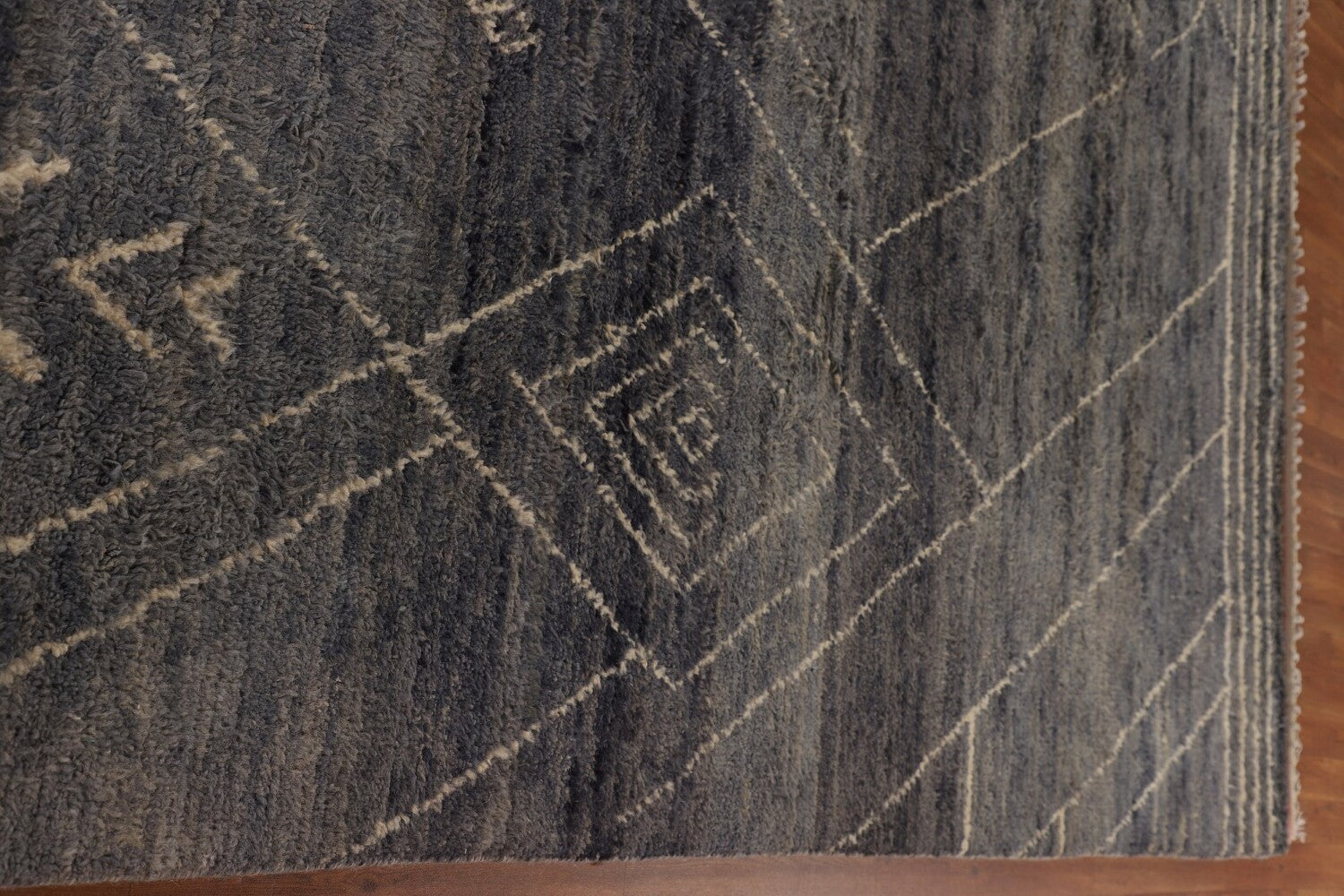 A Beautiful Genuine Pakistan Moroccan rug is Hand Knotted by skillful weavers in Pakistan with 100% Wool Material. This rug is in condition. dimensions are 14' 8'' X 9' 11'' in foot and 447 X 302 in centimeter. the primary color is Greys & Charcoal.