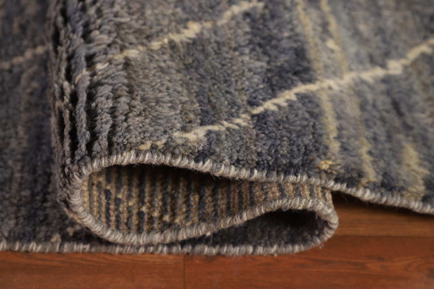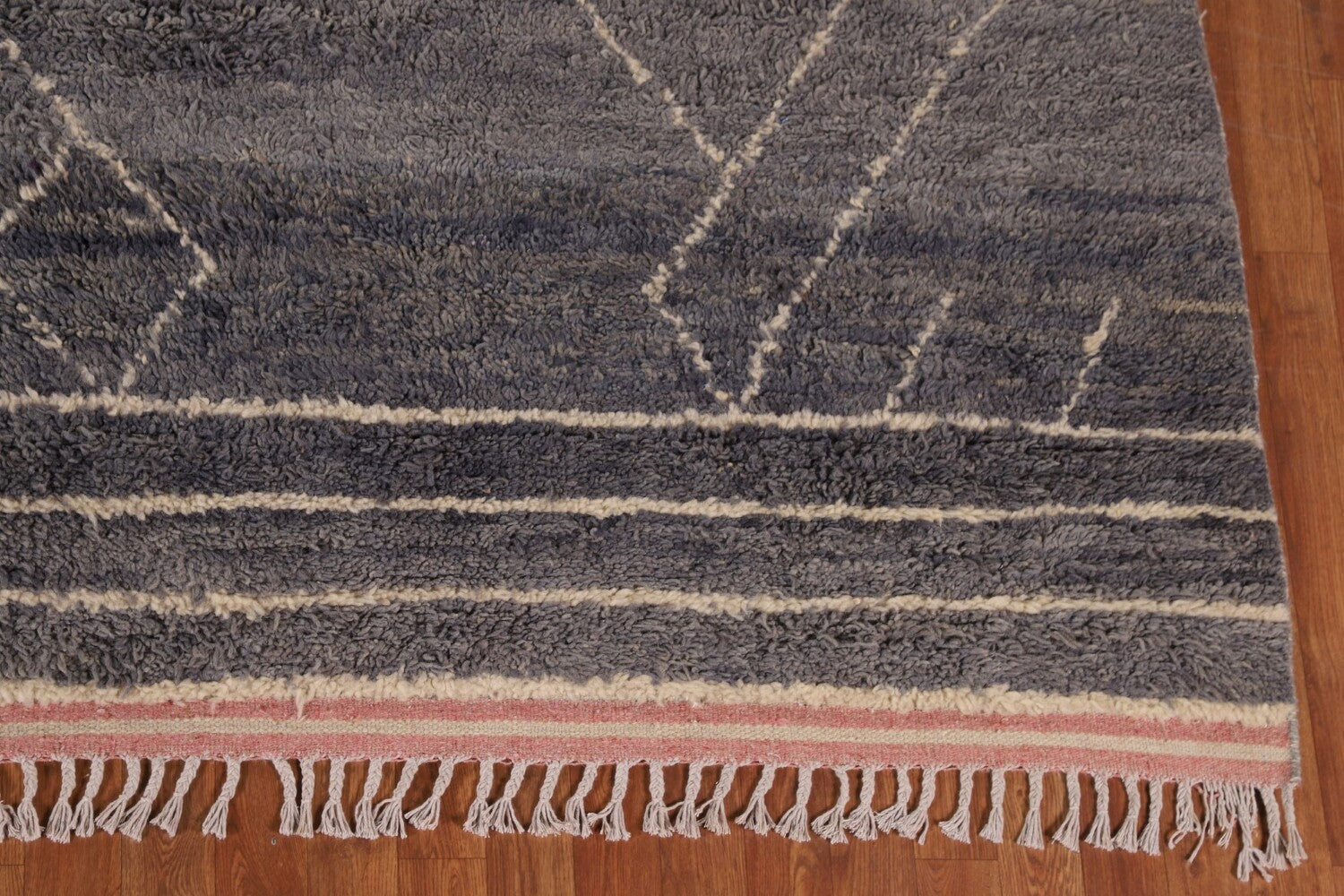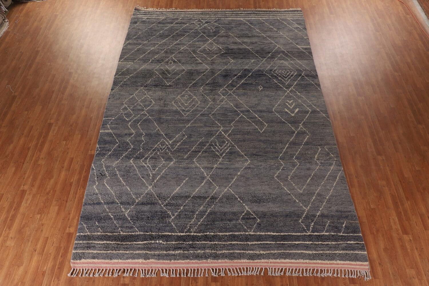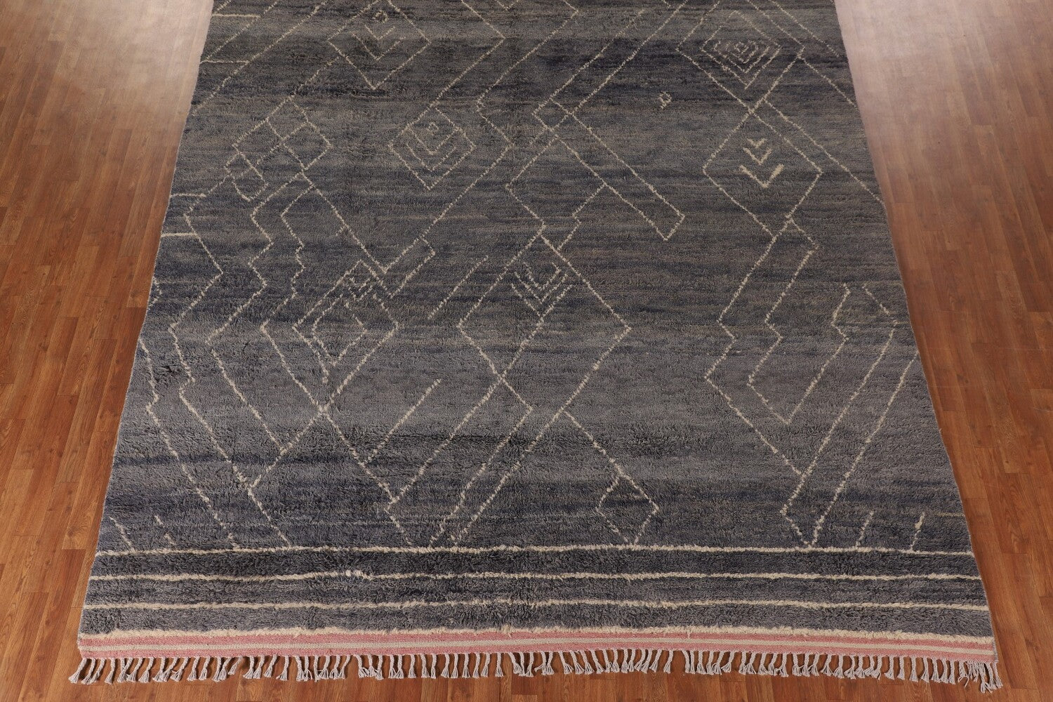 A Beautiful Genuine Pakistan Moroccan rug is Hand Knotted by skillful weavers in Pakistan with 100% Wool Material. This rug is in condition. dimensions are 14' 8'' X 9' 11'' in foot and 447 X 302 in centimeter. the primary color is Greys & Charcoal.