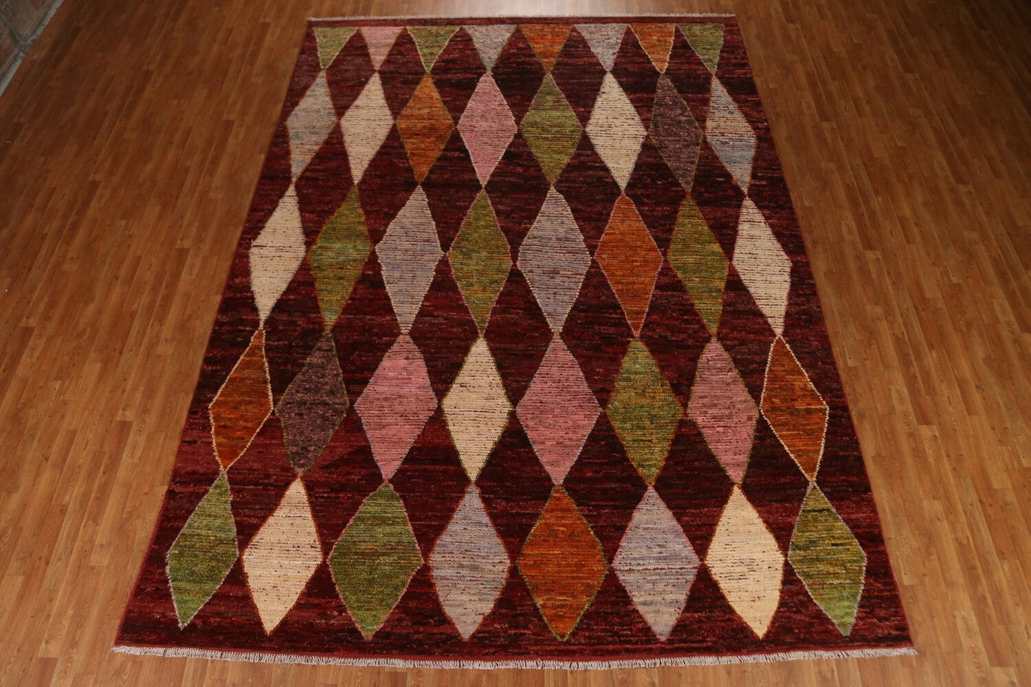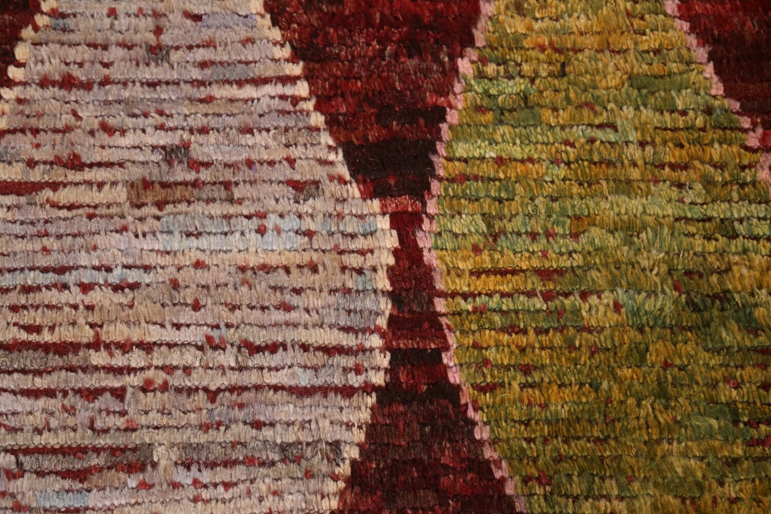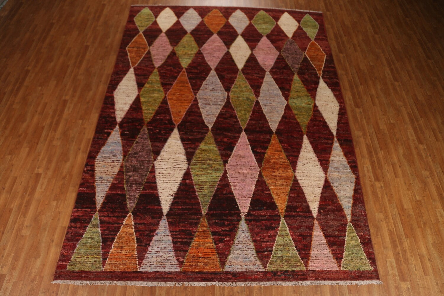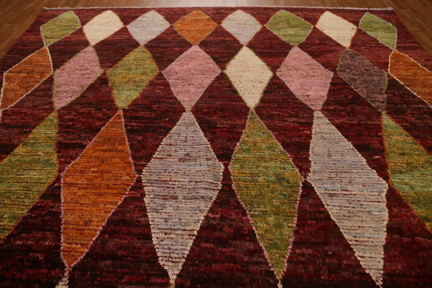 A Beautiful Genuine Pakistan Moroccan rug is Hand Knotted by skillful weavers in Pakistan with 100% Wool Material. This rug is in condition. dimensions are 13' 0'' X 9' 7'' in foot and 396 X 292 in centimeter. the primary color is Red.