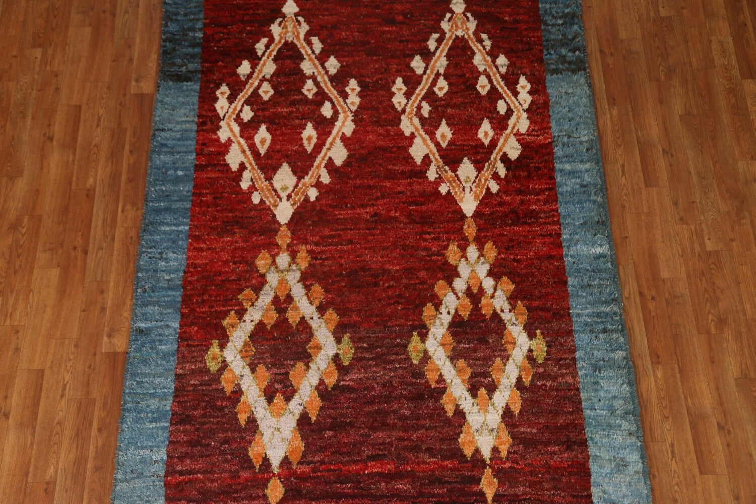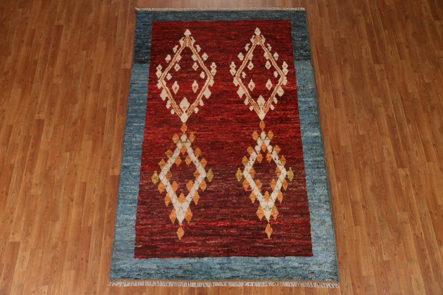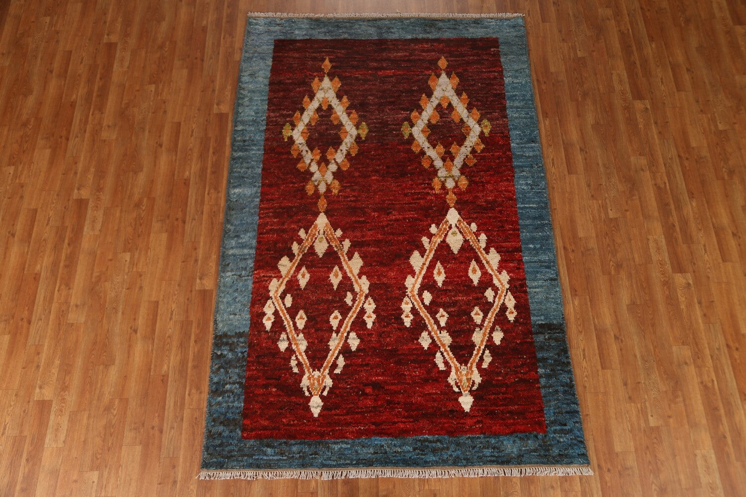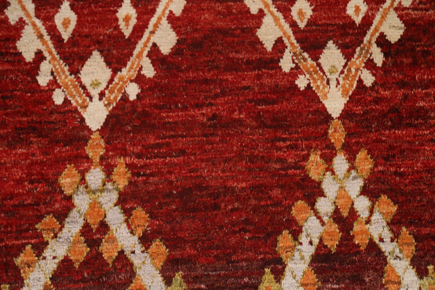 A Beautiful Genuine Pakistan Moroccan rug is Hand Knotted by skillful weavers in Pakistan with 100% Wool Material. This rug is in condition. dimensions are 8' 1'' X 5' 4'' in foot and 246 X 163 in centimeter. the primary color is Red.