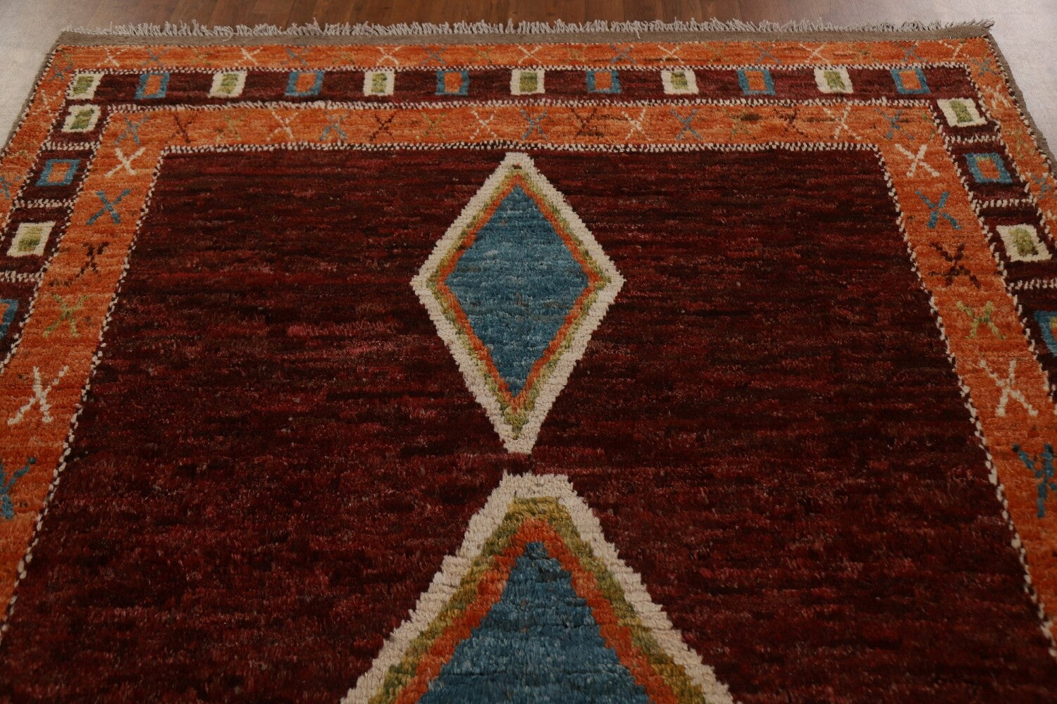 A Beautiful Genuine Pakistan Moroccan rug is Hand Knotted by skillful weavers in Pakistan with 100% Wool Material. This rug is in condition. dimensions are 10' 3'' X 6' 3'' in foot and 312 X 191 in centimeter. the primary color is Red.