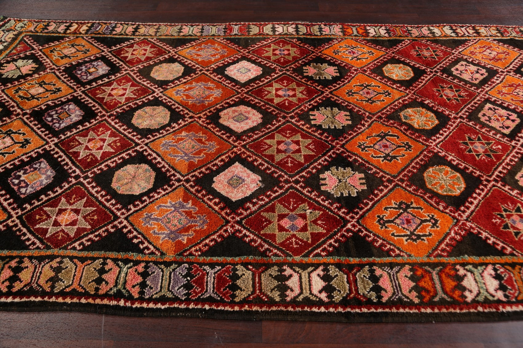 A Beautiful Genuine Morocco Moroccan rug is Hand Knotted by skillful weavers in Morocco with 100% Wool Material. This rug is in Excellent condition. dimensions are 10' 8'' X 5' 9'' in foot and 325 X 175 in centimeter. the primary color is Multi-Colored.