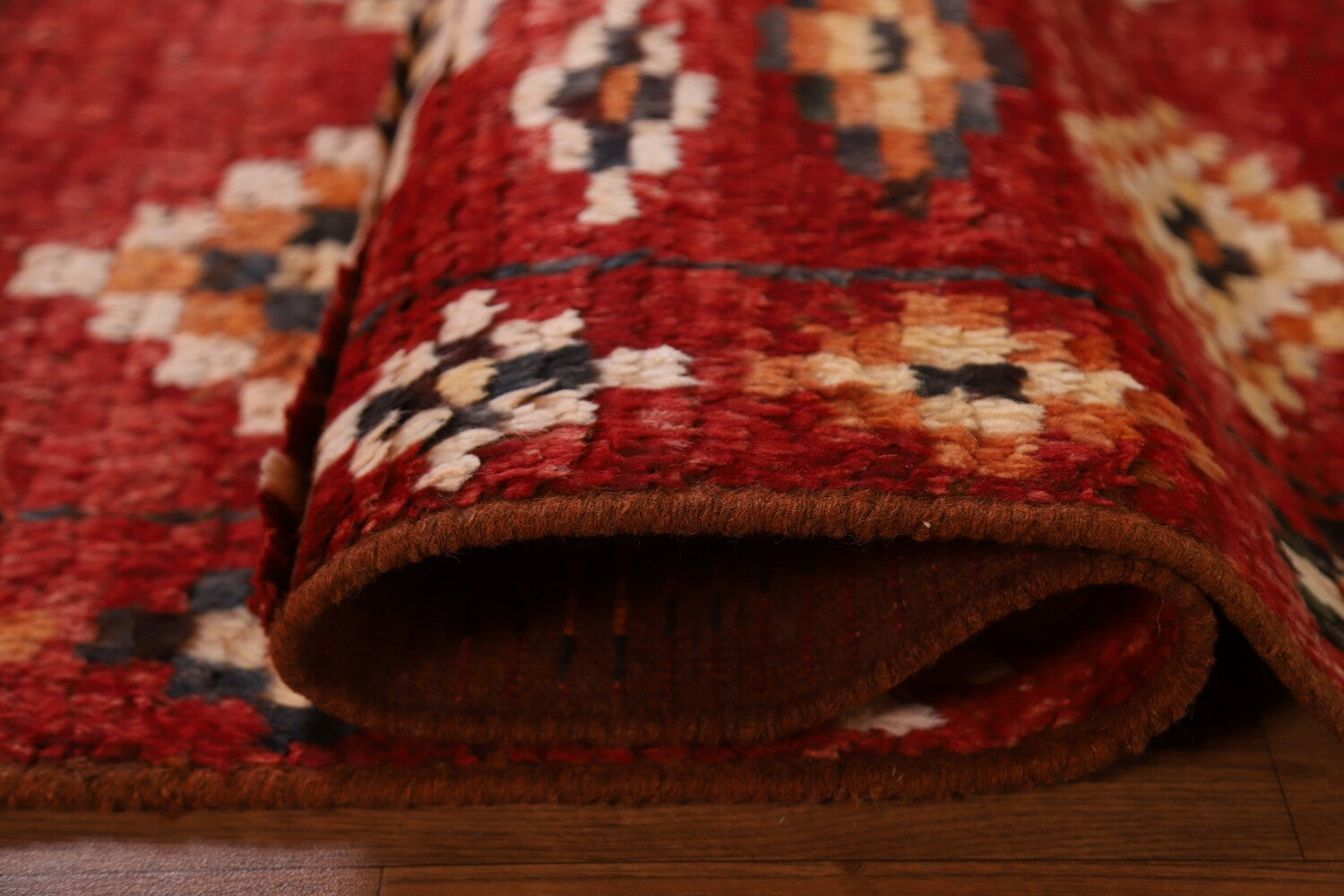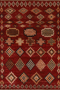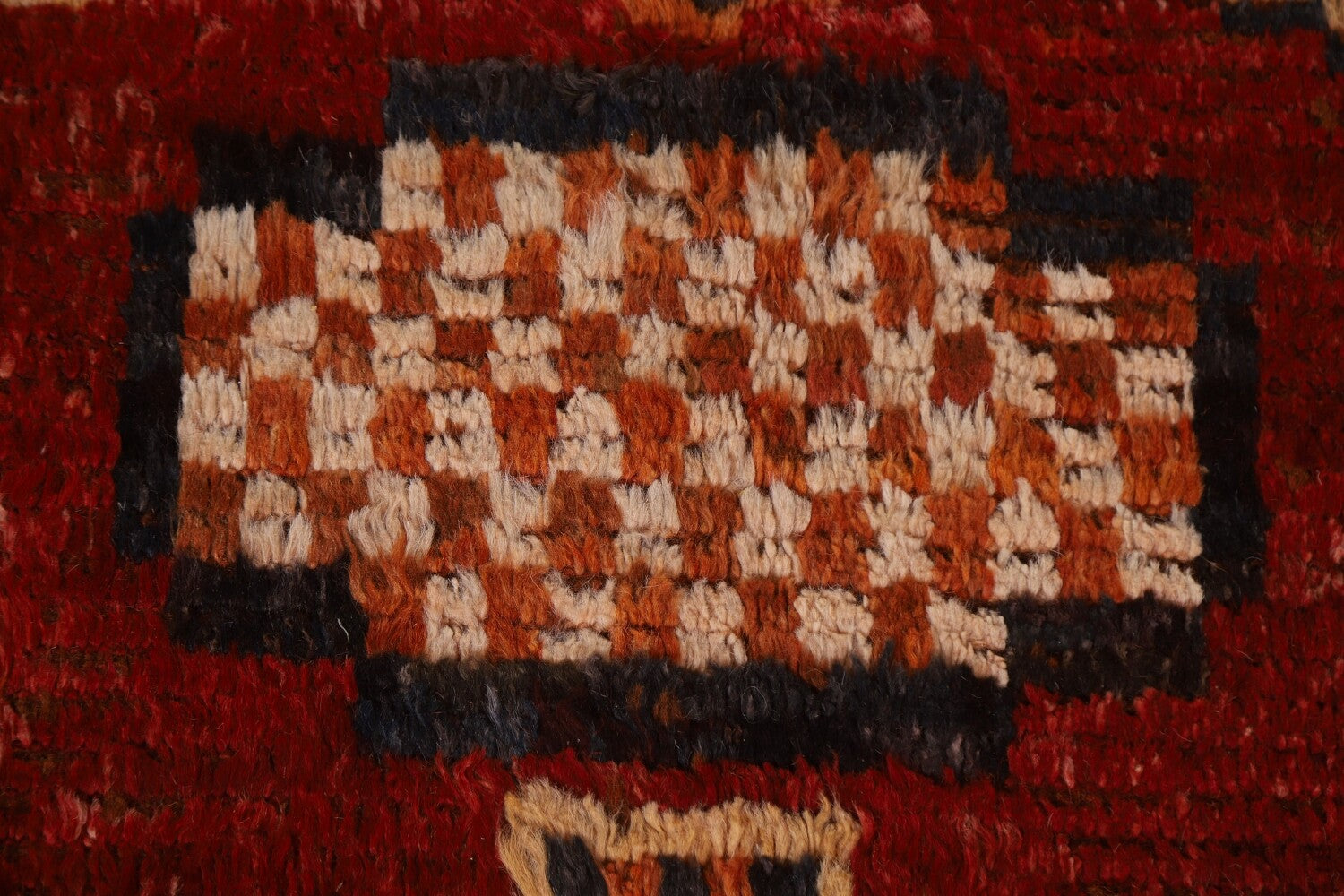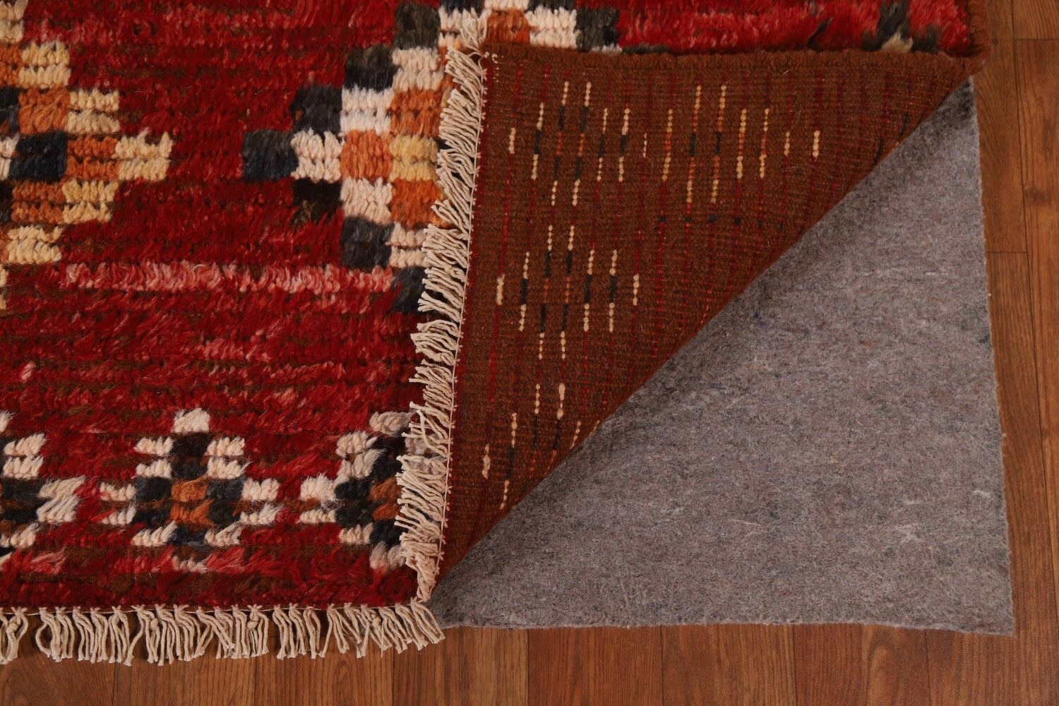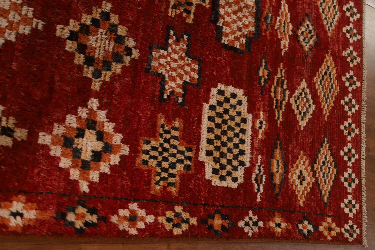 A Beautiful Genuine Pakistan Moroccan rug is Hand Knotted by skillful weavers in Pakistan with 100% Wool Material. This rug is in condition. dimensions are 7' 6'' X 5' 11'' in foot and 229 X 180 in centimeter. the primary color is Red.