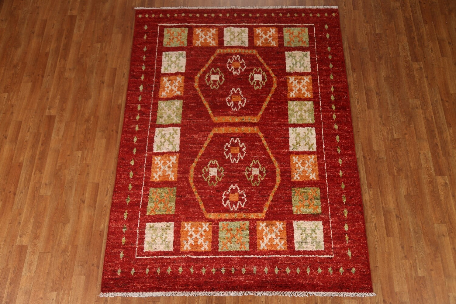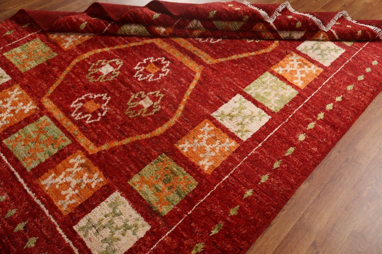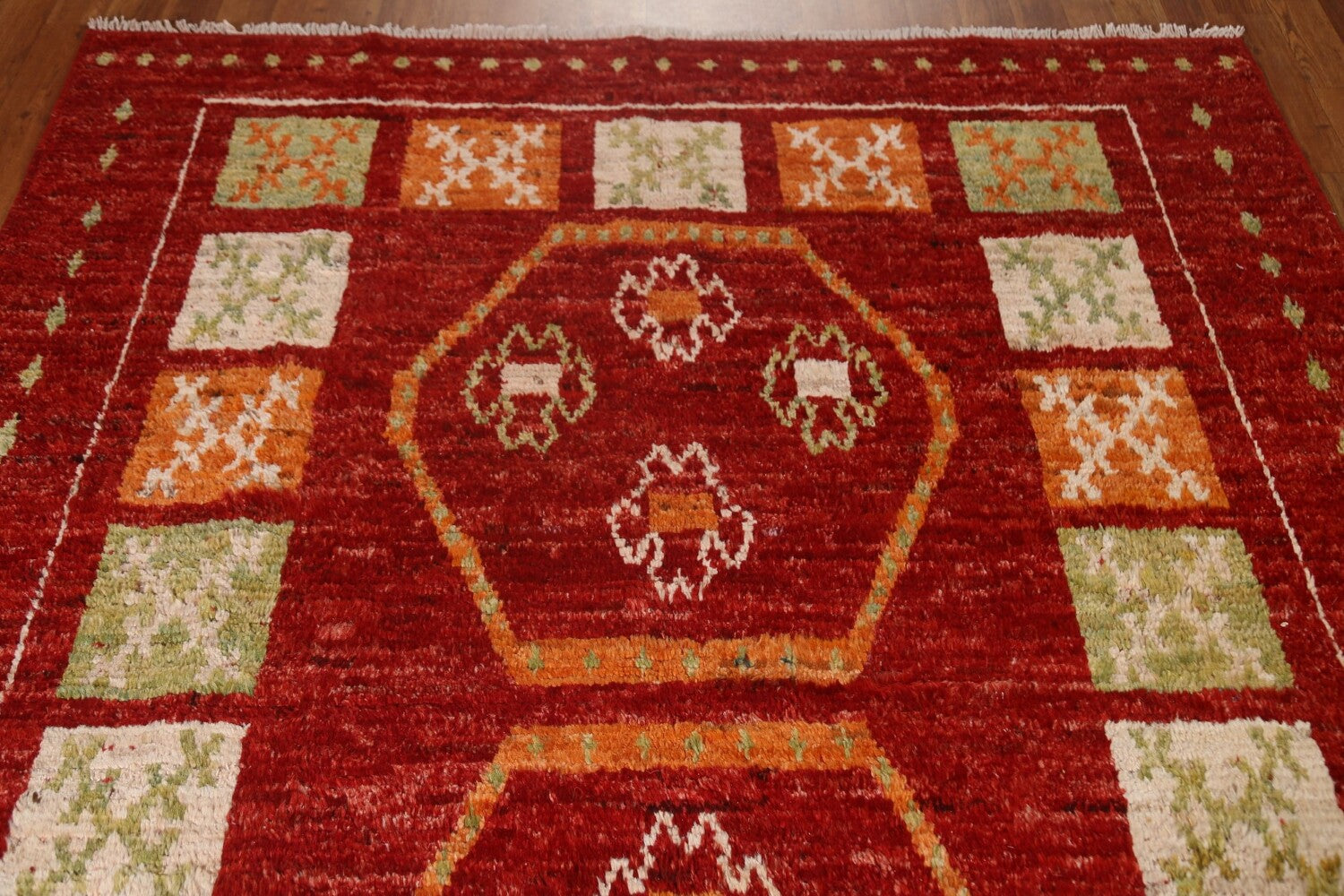 A Beautiful Genuine Pakistan Moroccan rug is Hand Knotted by skillful weavers in Pakistan with 100% Wool Material. This rug is in condition. dimensions are 7' 9'' X 5' 9'' in foot and 236 X 175 in centimeter. the primary color is Red.