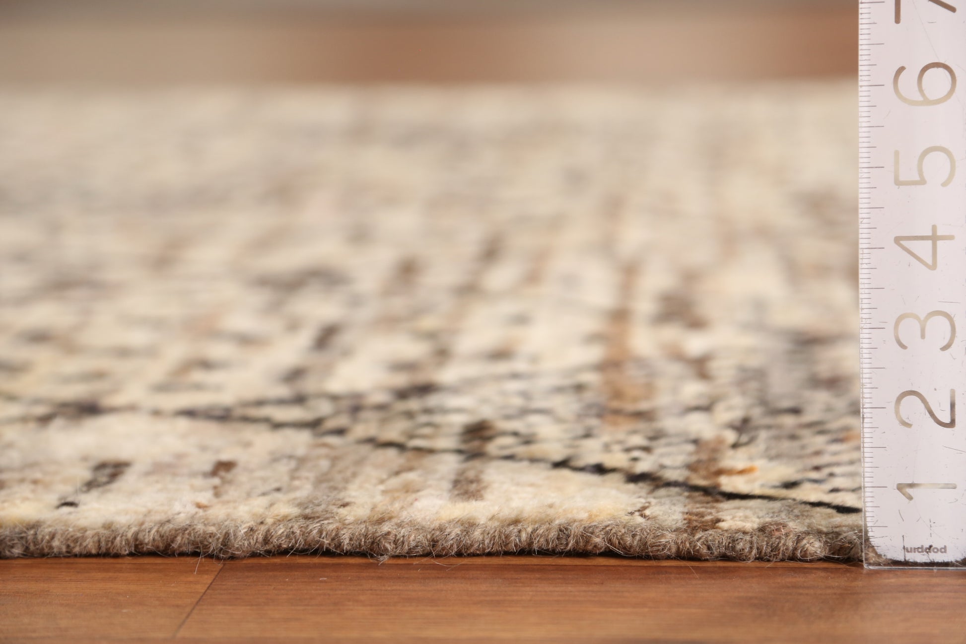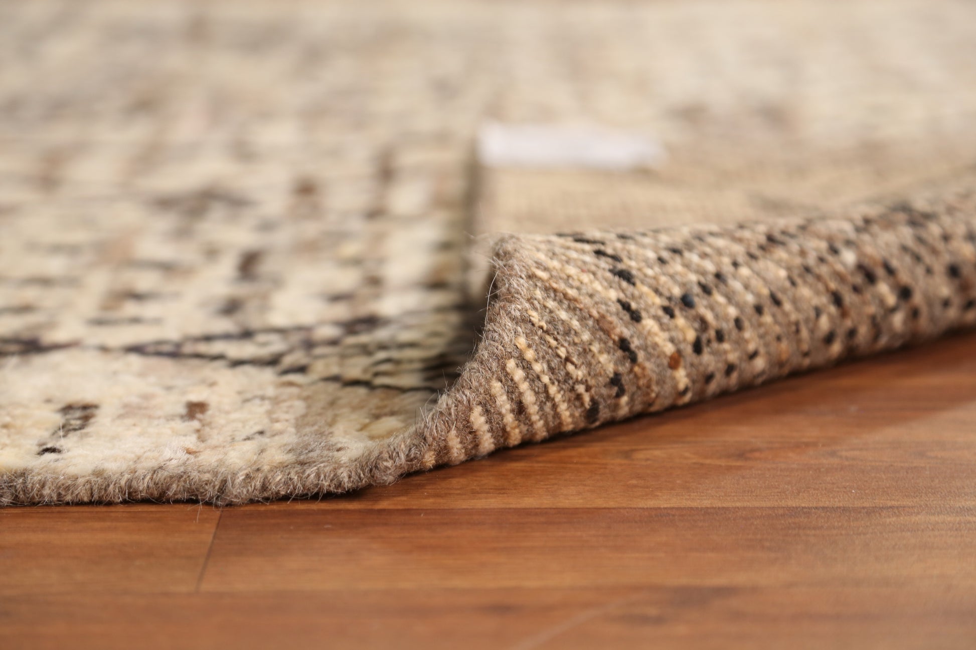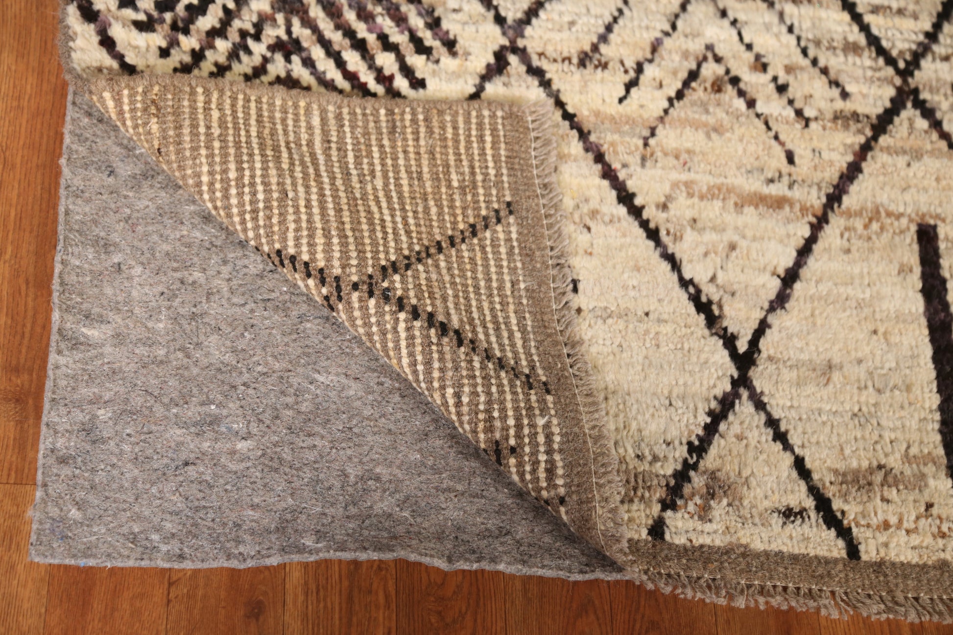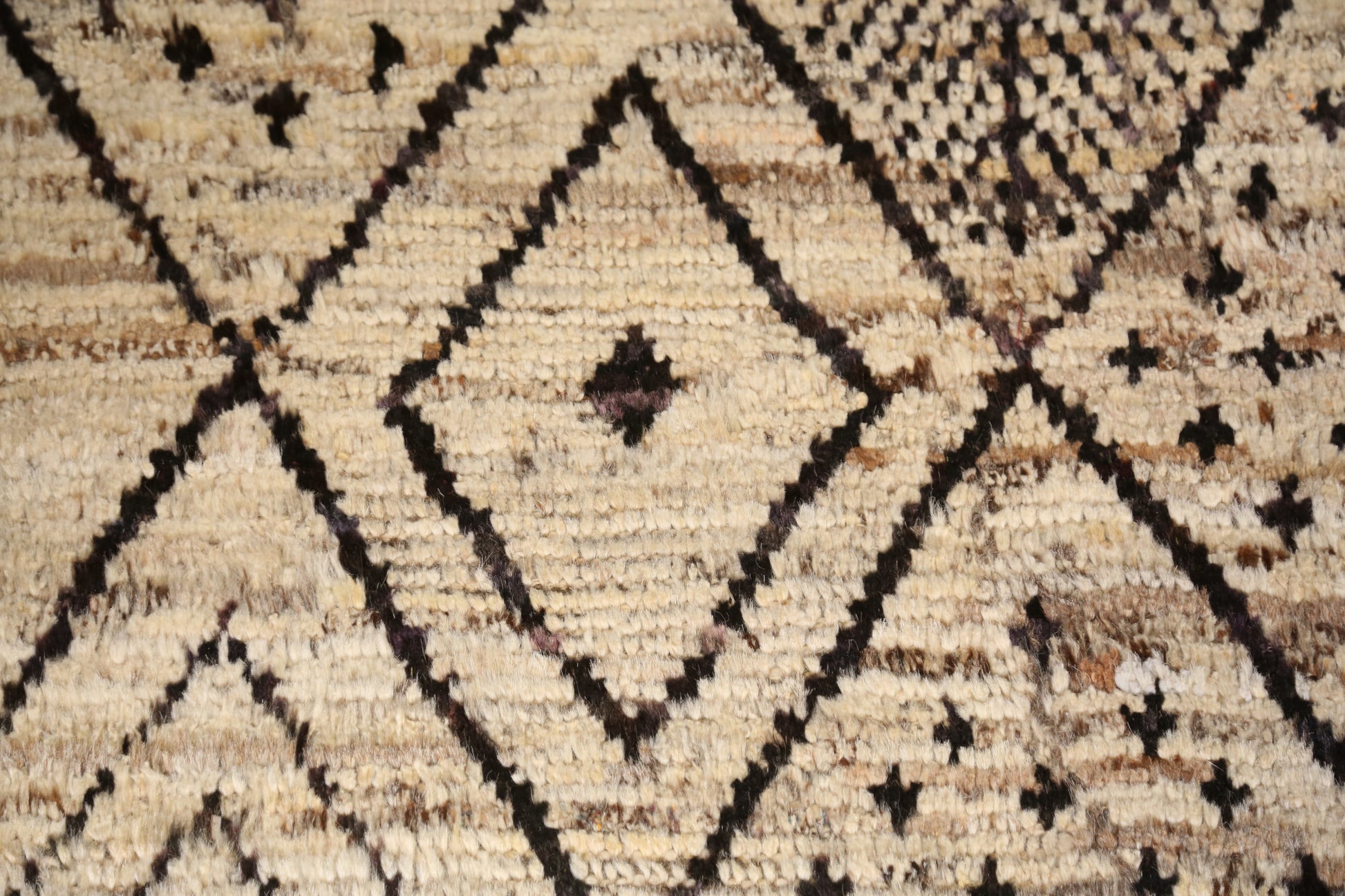 A Beautiful Genuine Pakistan Moroccan rug is Hand Knotted by skillful weavers in Pakistan with 100% Wool Material. This rug is in New, First Quality condition. dimensions are 7' 7'' X 6' 1'' in foot and 231 X 185 in centimeter. the primary color is Beige & Ivories.