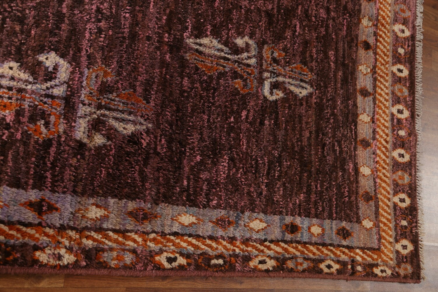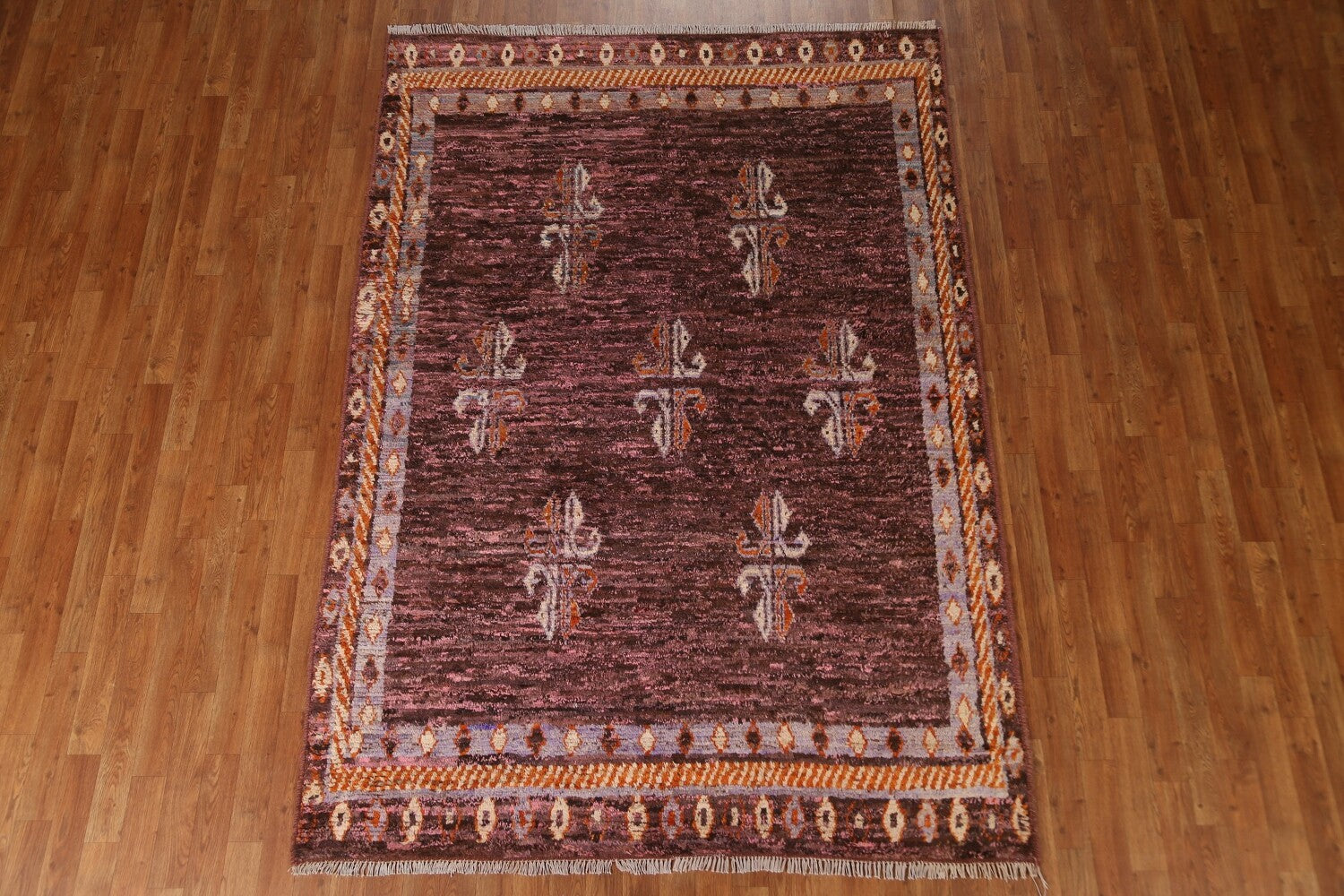 A Beautiful Genuine Pakistan Moroccan rug is Hand Knotted by skillful weavers in Pakistan with 100% Wool Material. This rug is in condition. dimensions are 8' 1'' X 5' 8'' in foot and 246 X 173 in centimeter. the primary color is Pink.
