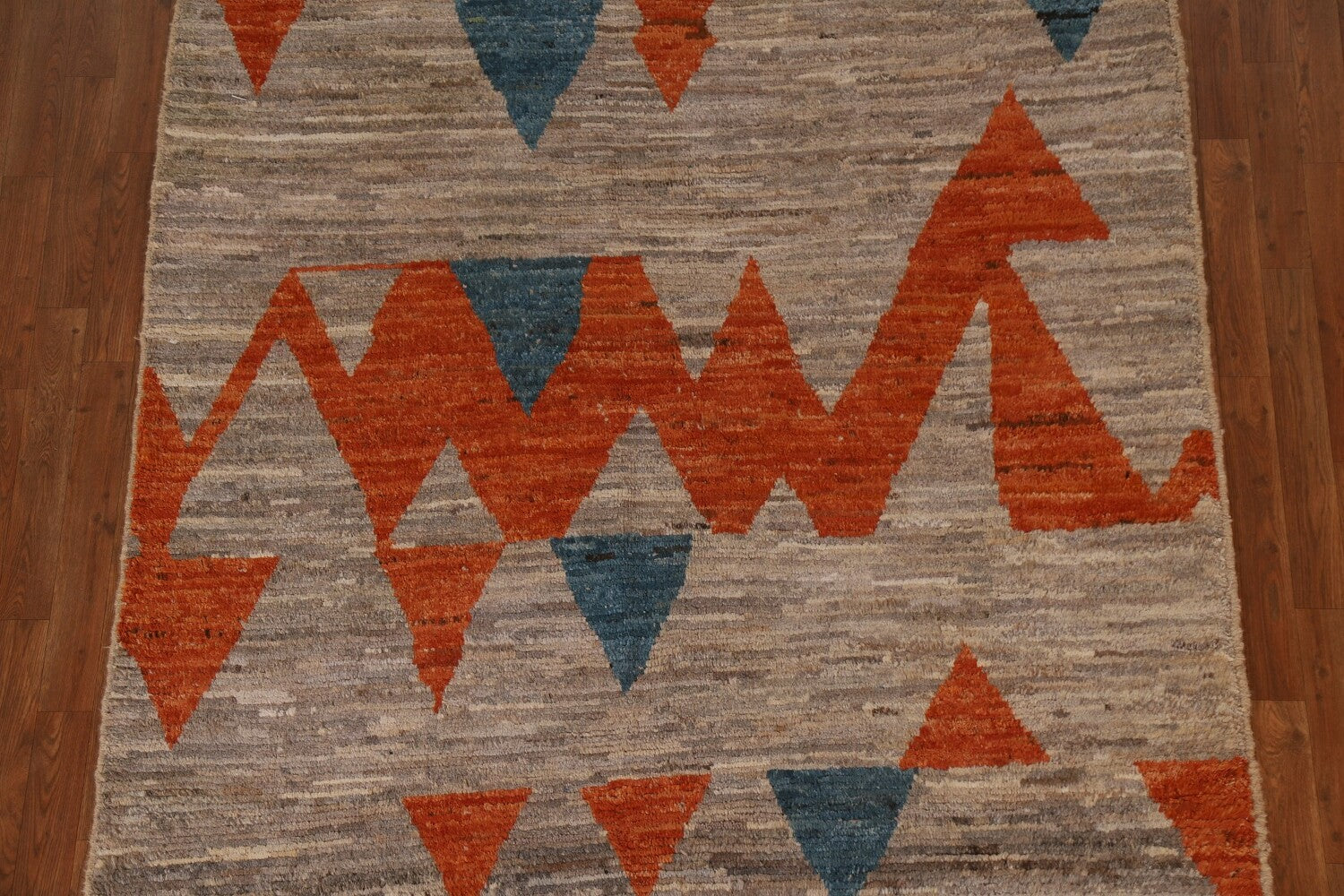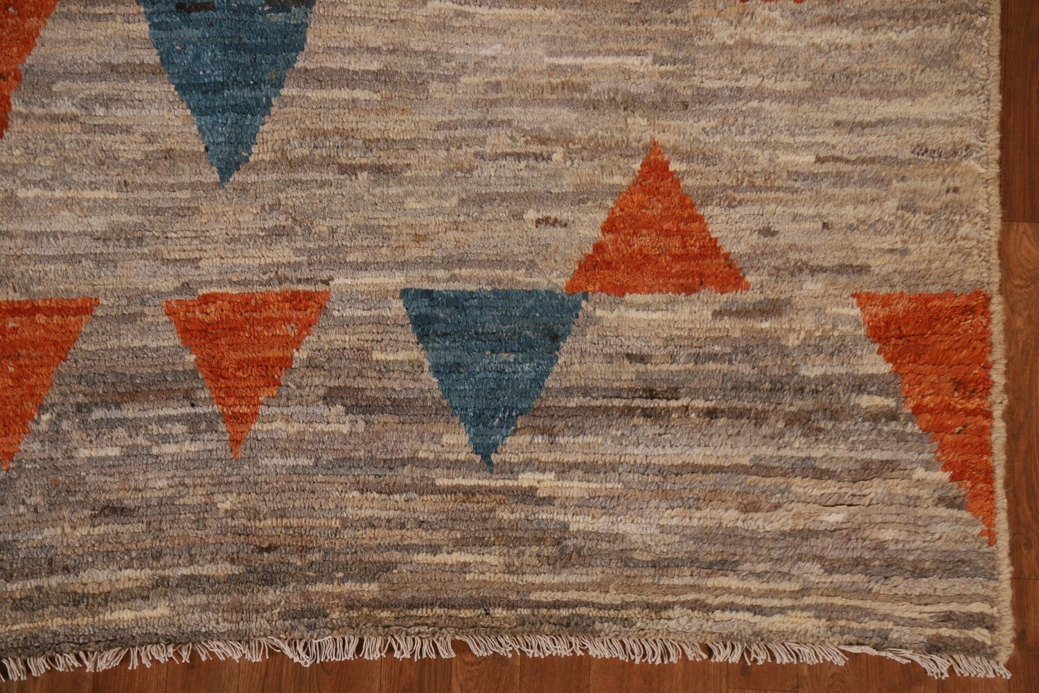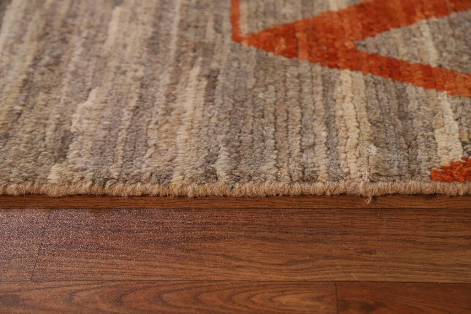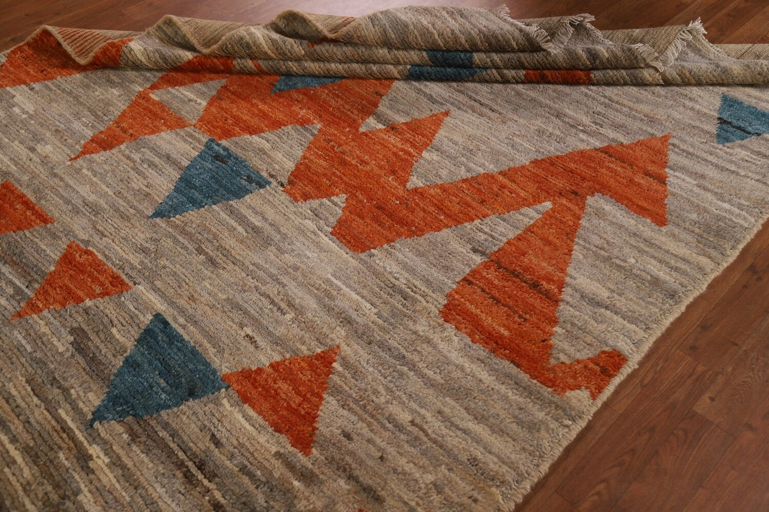 A Beautiful Genuine Pakistan Moroccan rug is Hand Knotted by skillful weavers in Pakistan with 100% Wool Material. This rug is in New, First Quality condition. dimensions are 7' 6'' X 5' 10'' in foot and 229 X 178 in centimeter. the primary color is Beige & Ivories.