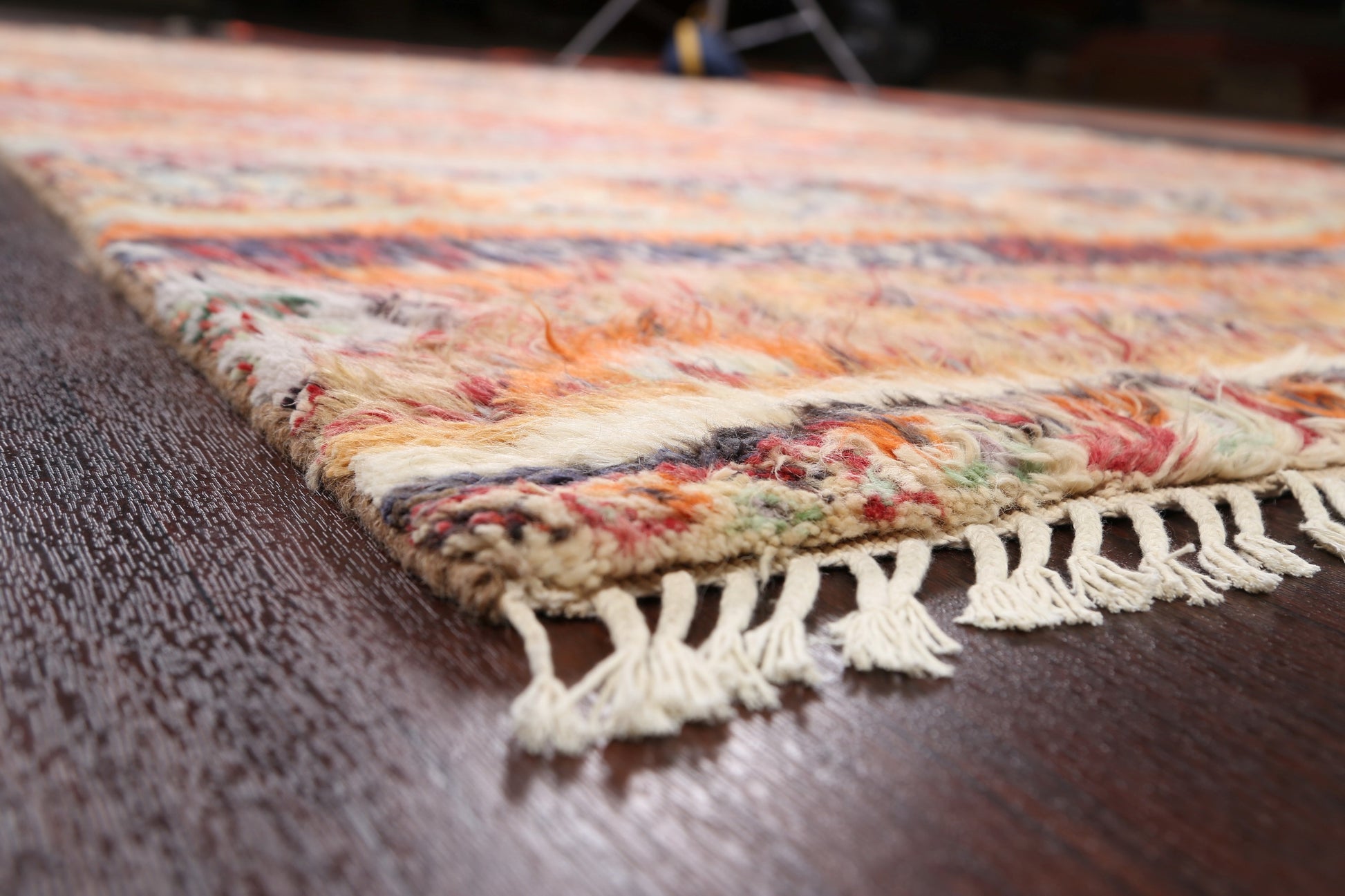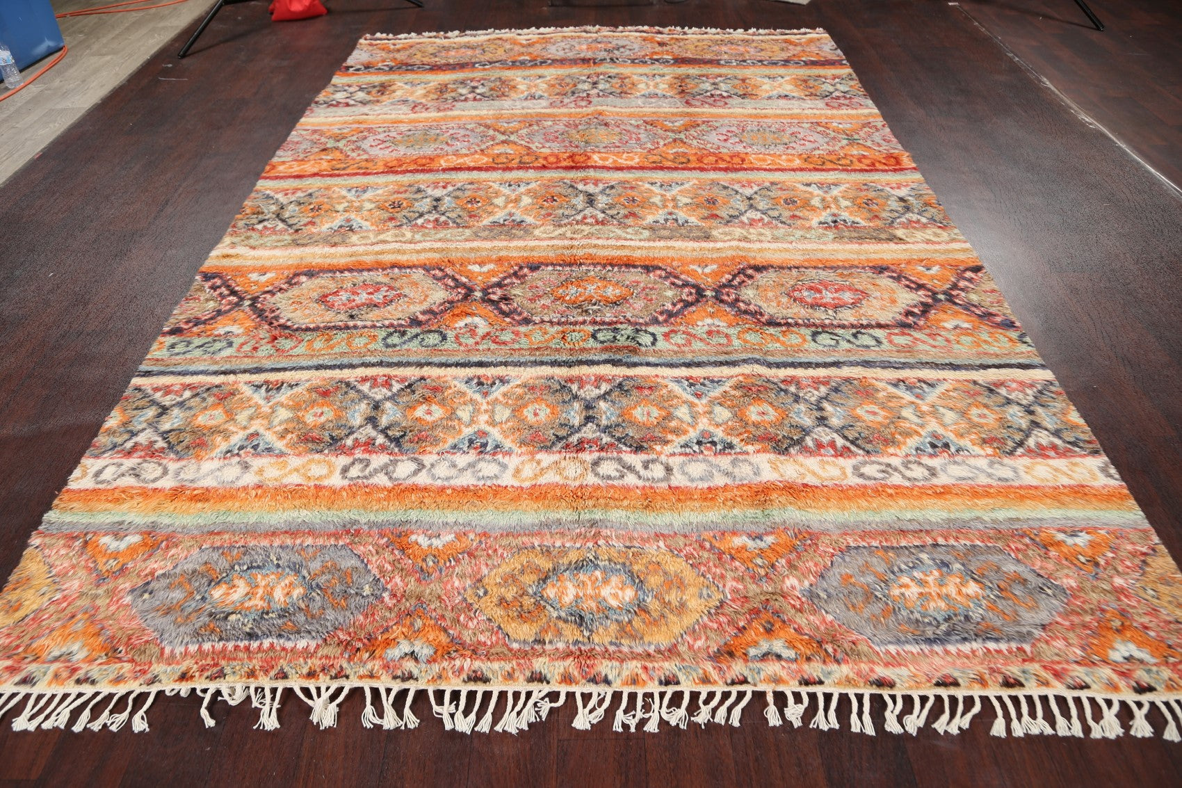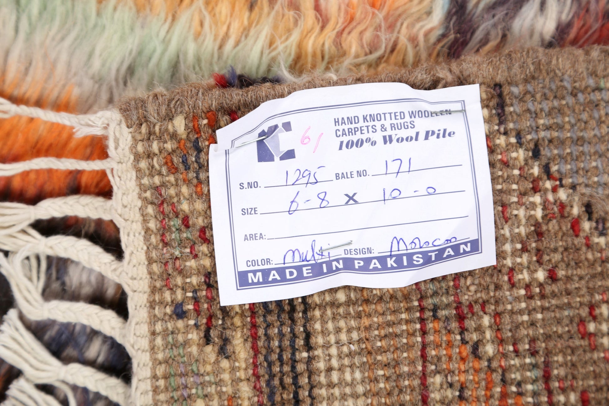 A Beautiful Genuine Pakistan Moroccan rug is Hand Knotted by skillful weavers in Pakistan with 100% Wool Material. This rug is in New, First Quality condition. dimensions are 10' 0'' X 6' 7'' in foot and 305 X 201 in centimeter. the primary color is Multi-Colored.