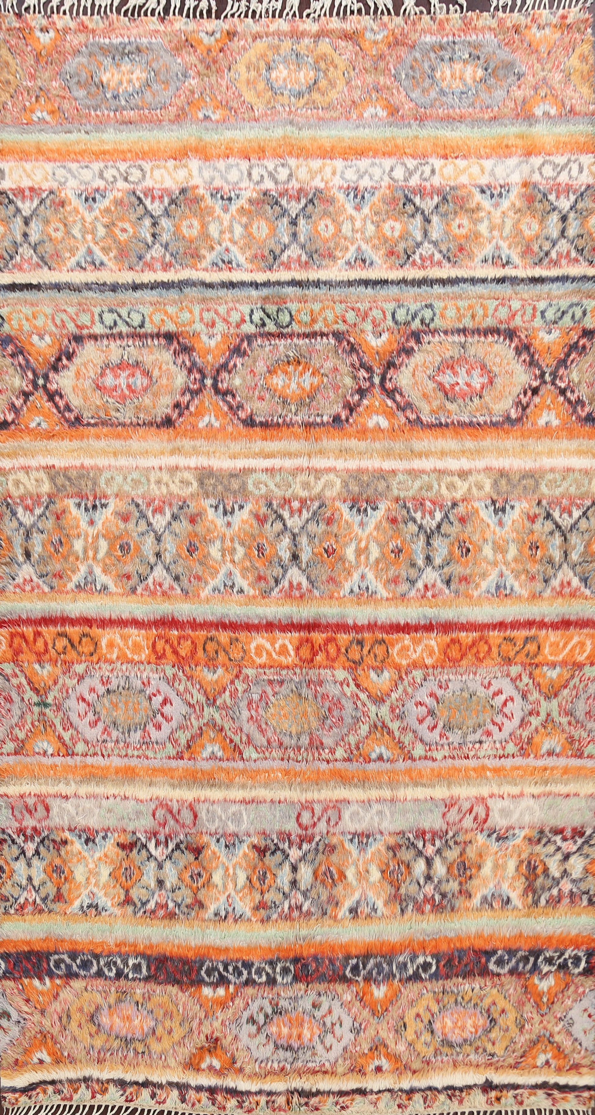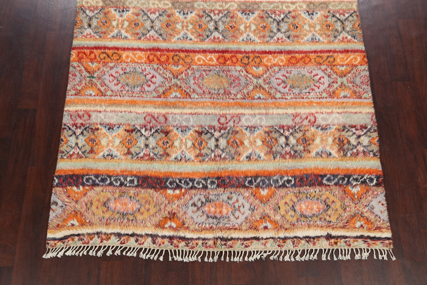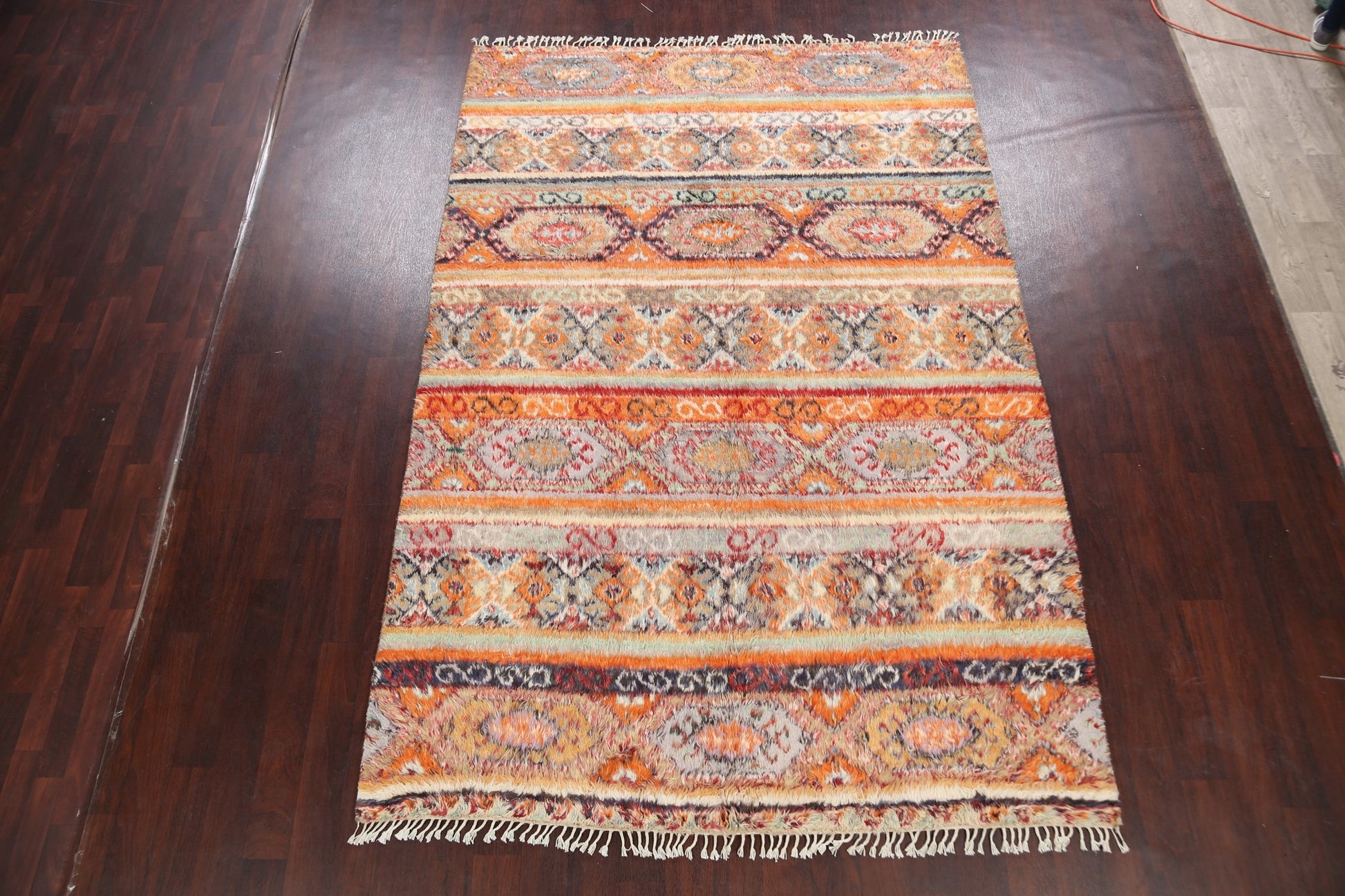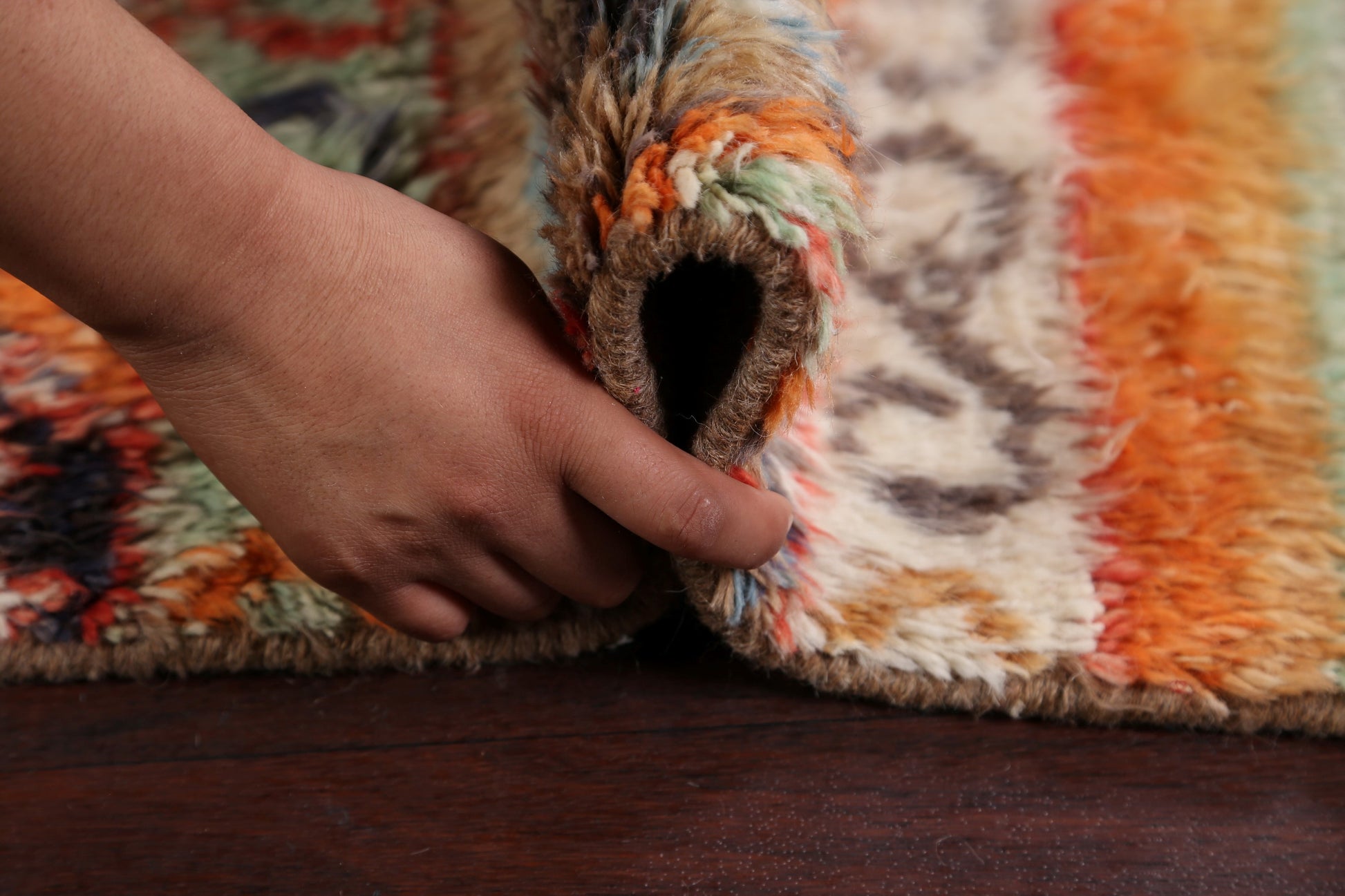 A Beautiful Genuine Pakistan Moroccan rug is Hand Knotted by skillful weavers in Pakistan with 100% Wool Material. This rug is in New, First Quality condition. dimensions are 10' 0'' X 6' 7'' in foot and 305 X 201 in centimeter. the primary color is Multi-Colored.