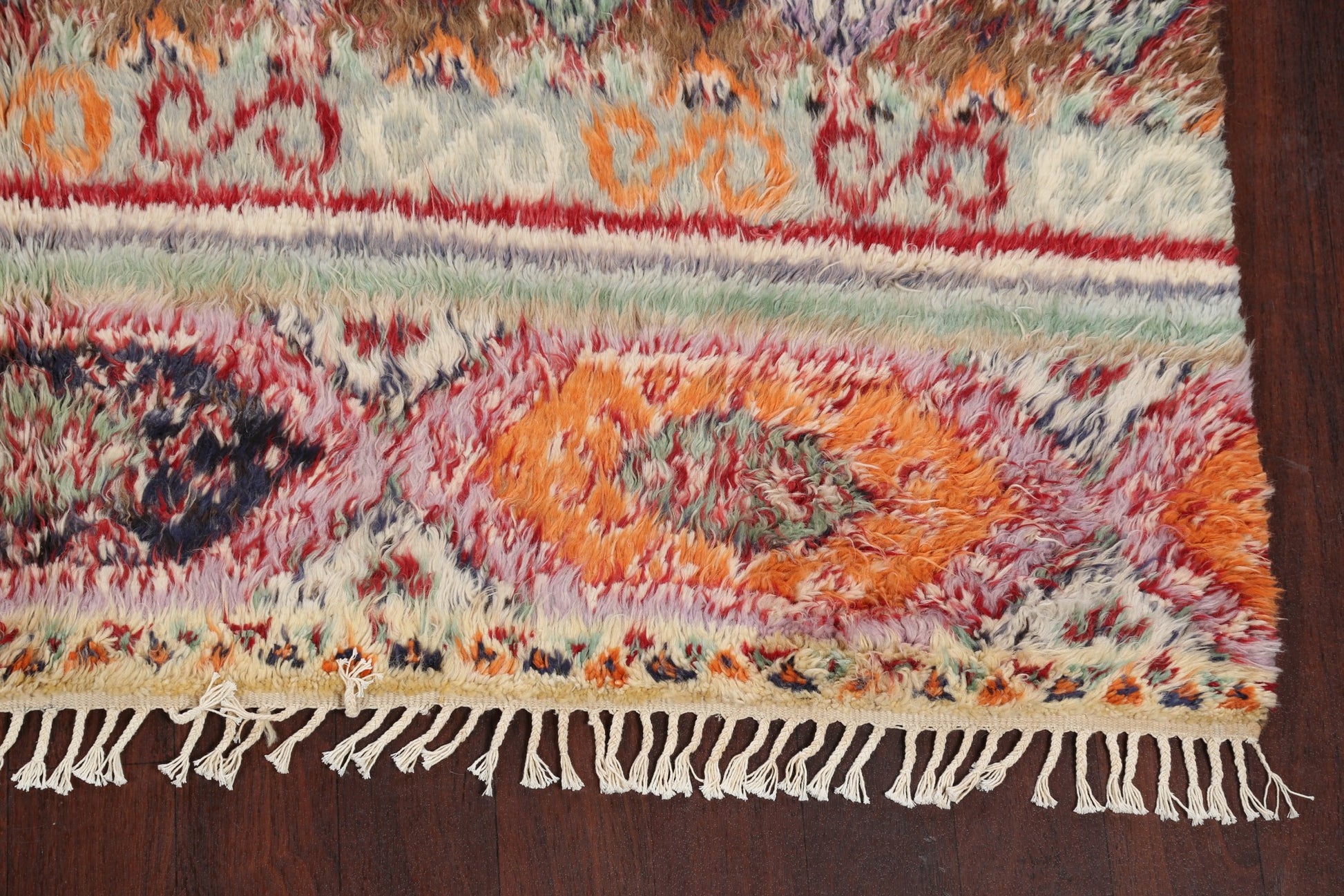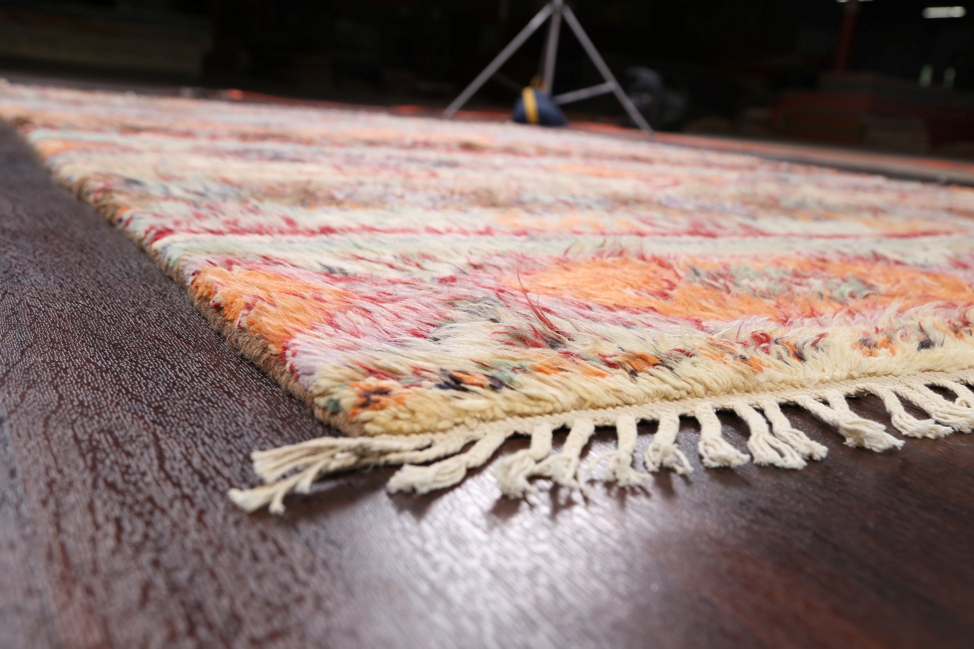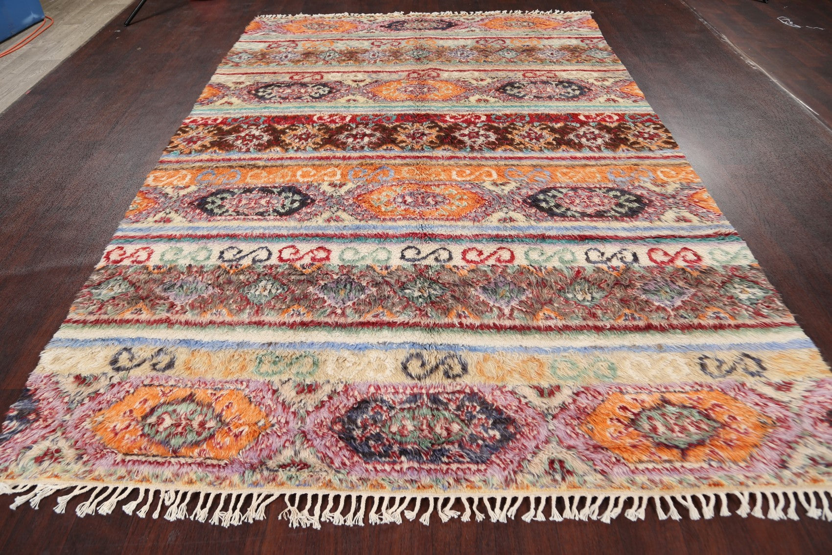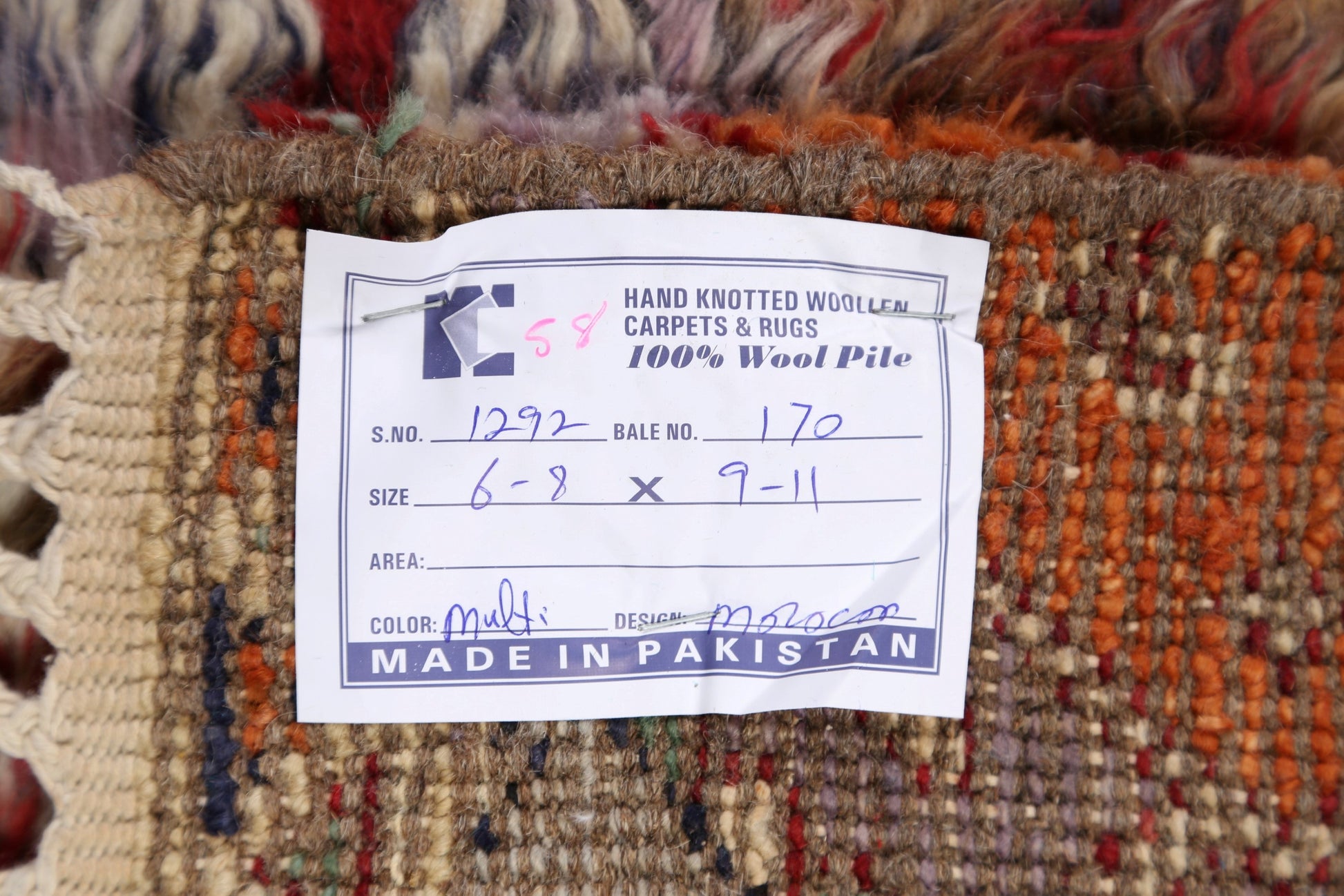 A Beautiful Genuine Pakistan Moroccan rug is Hand Knotted by skillful weavers in Pakistan with 100% Wool Material. This rug is in New, First Quality condition. dimensions are 9' 9'' X 6' 7'' in foot and 297 X 201 in centimeter. the primary color is Multi-Colored.