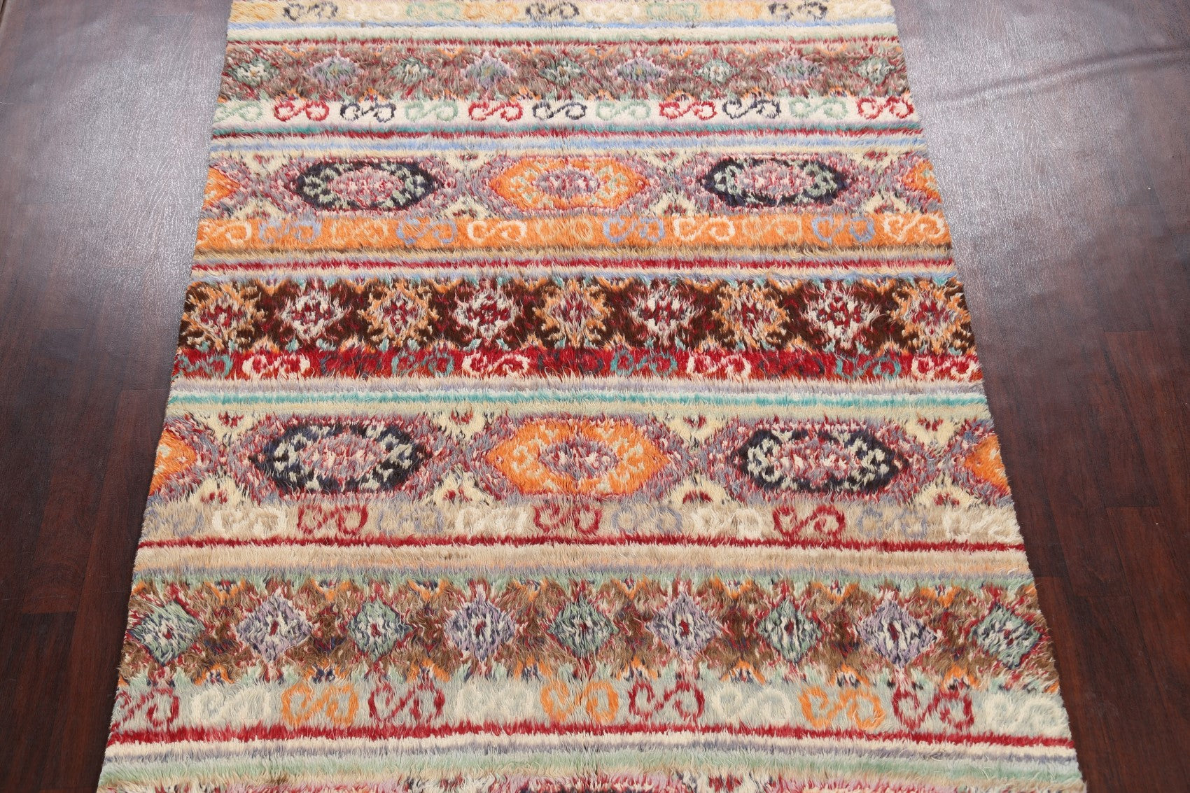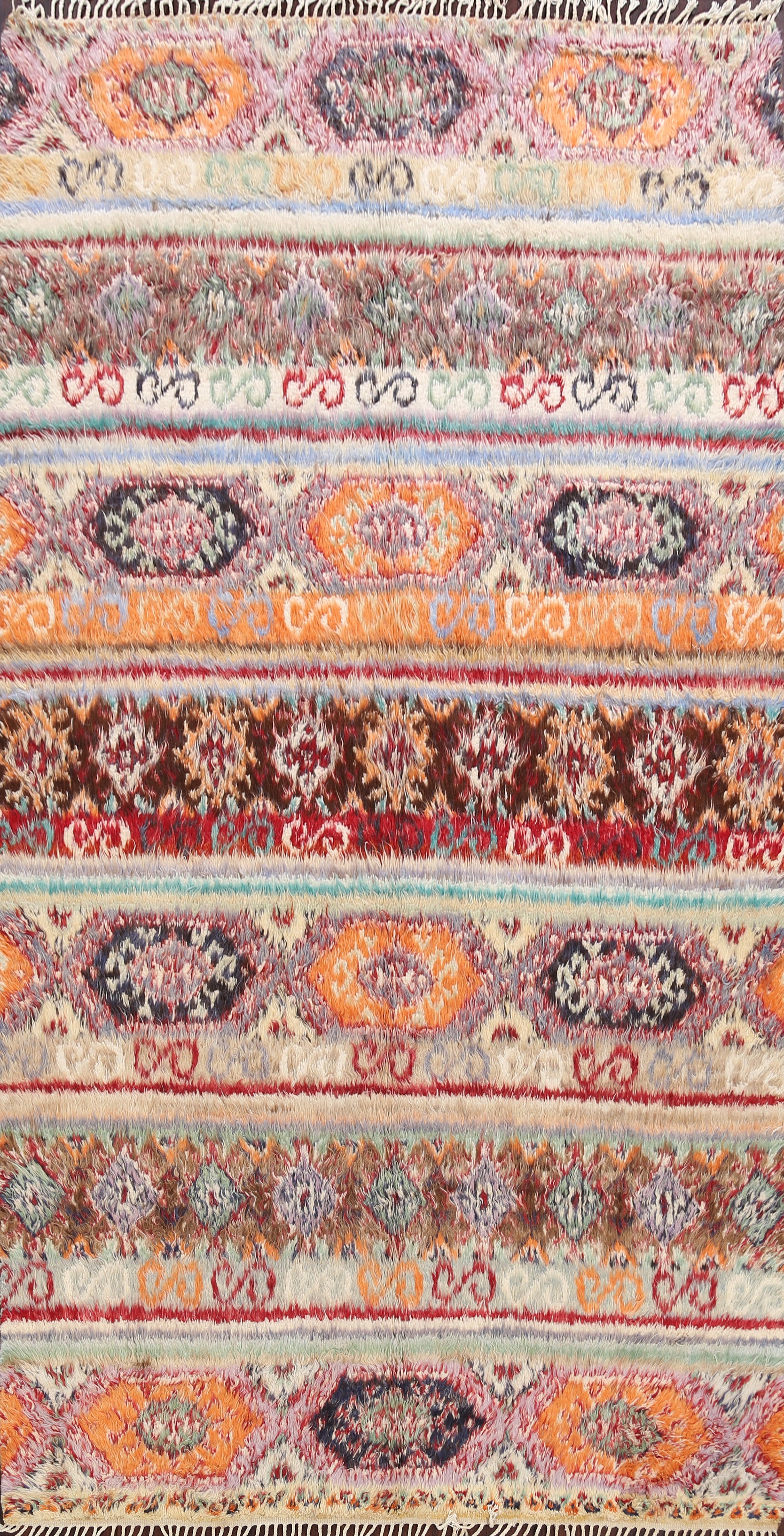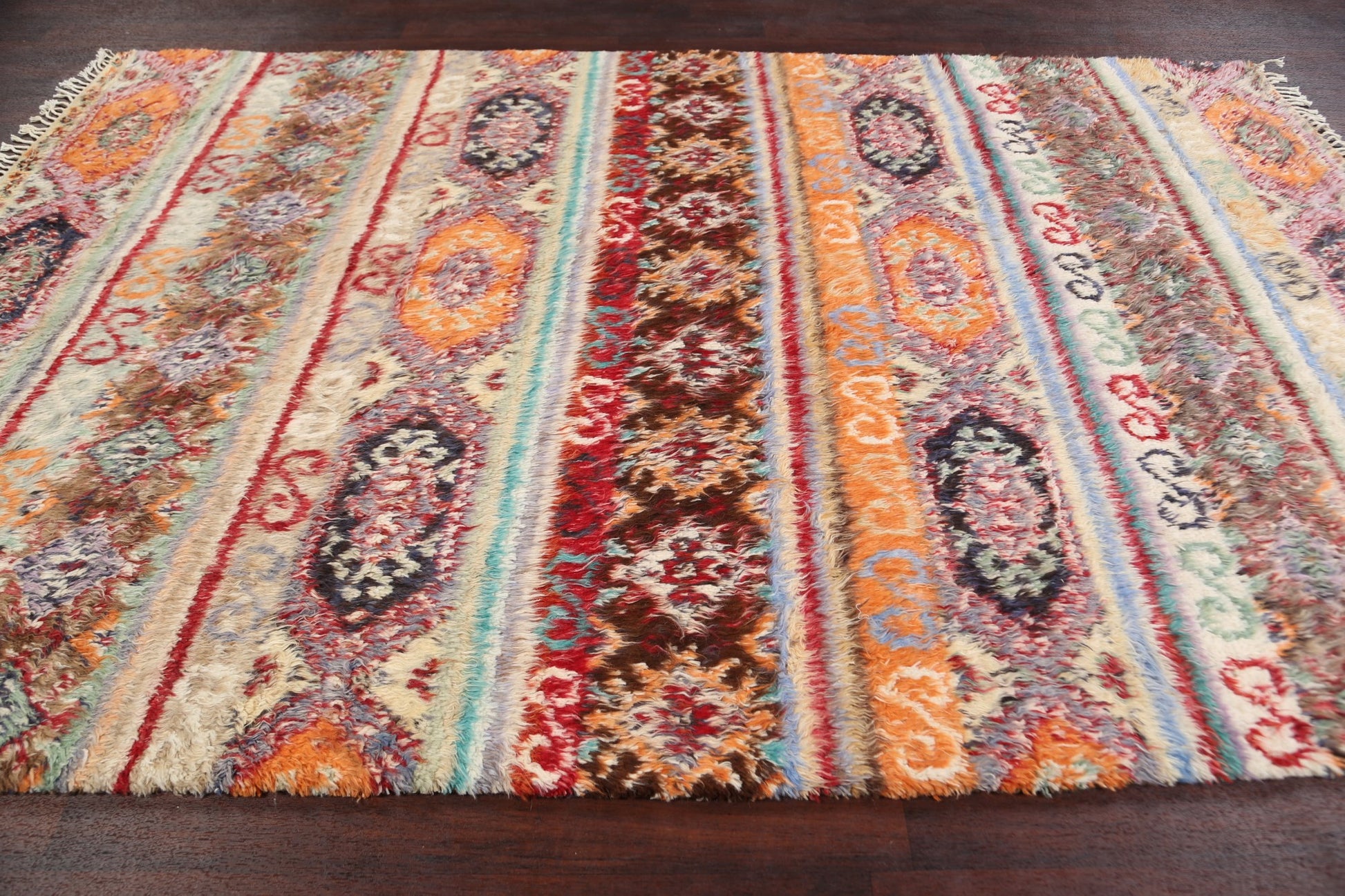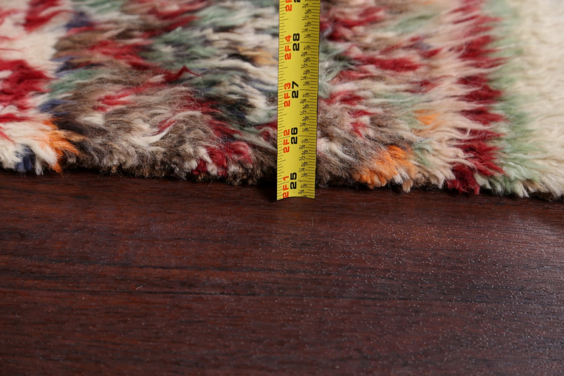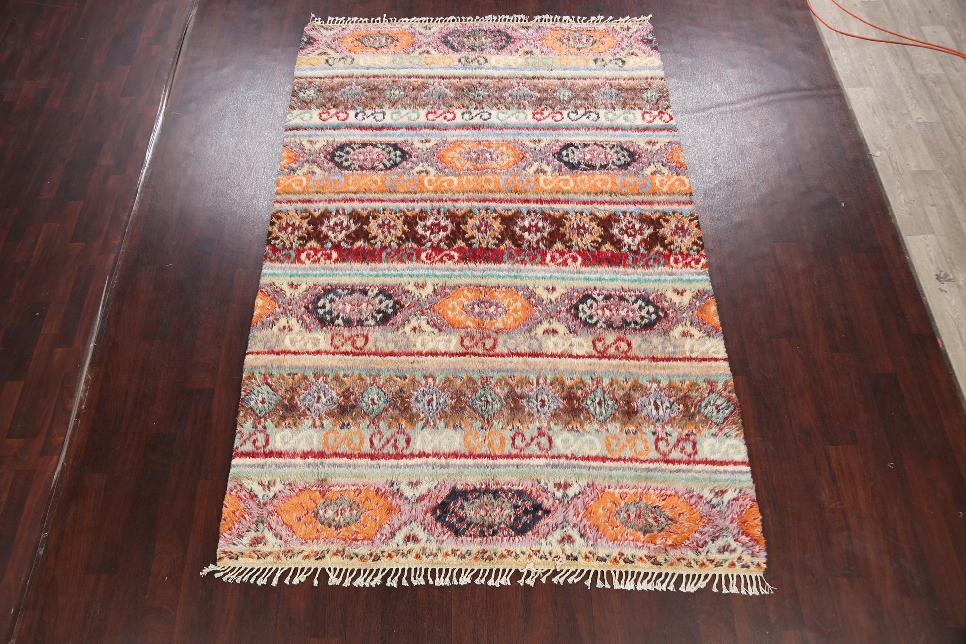 A Beautiful Genuine Pakistan Moroccan rug is Hand Knotted by skillful weavers in Pakistan with 100% Wool Material. This rug is in New, First Quality condition. dimensions are 9' 9'' X 6' 7'' in foot and 297 X 201 in centimeter. the primary color is Multi-Colored.