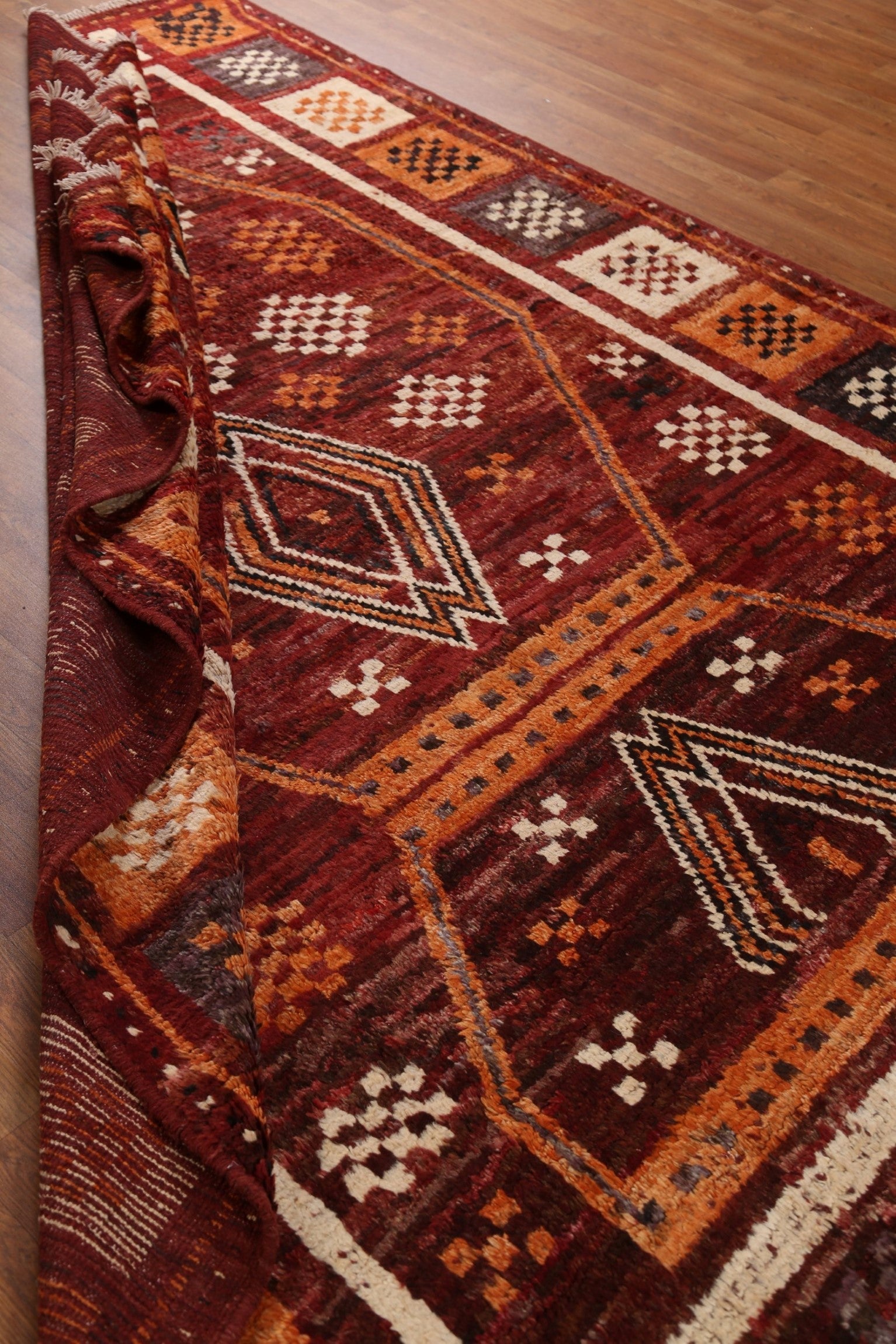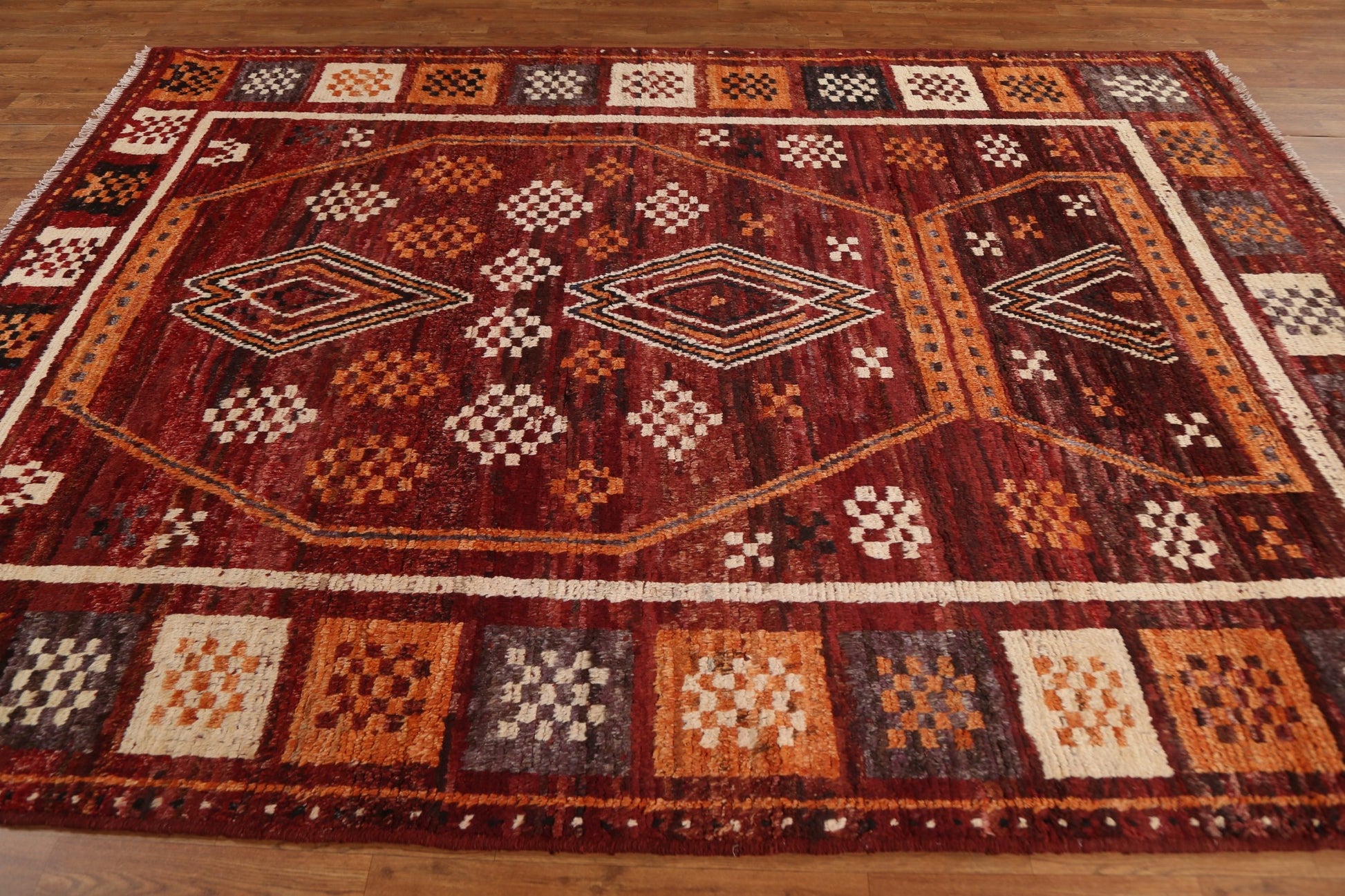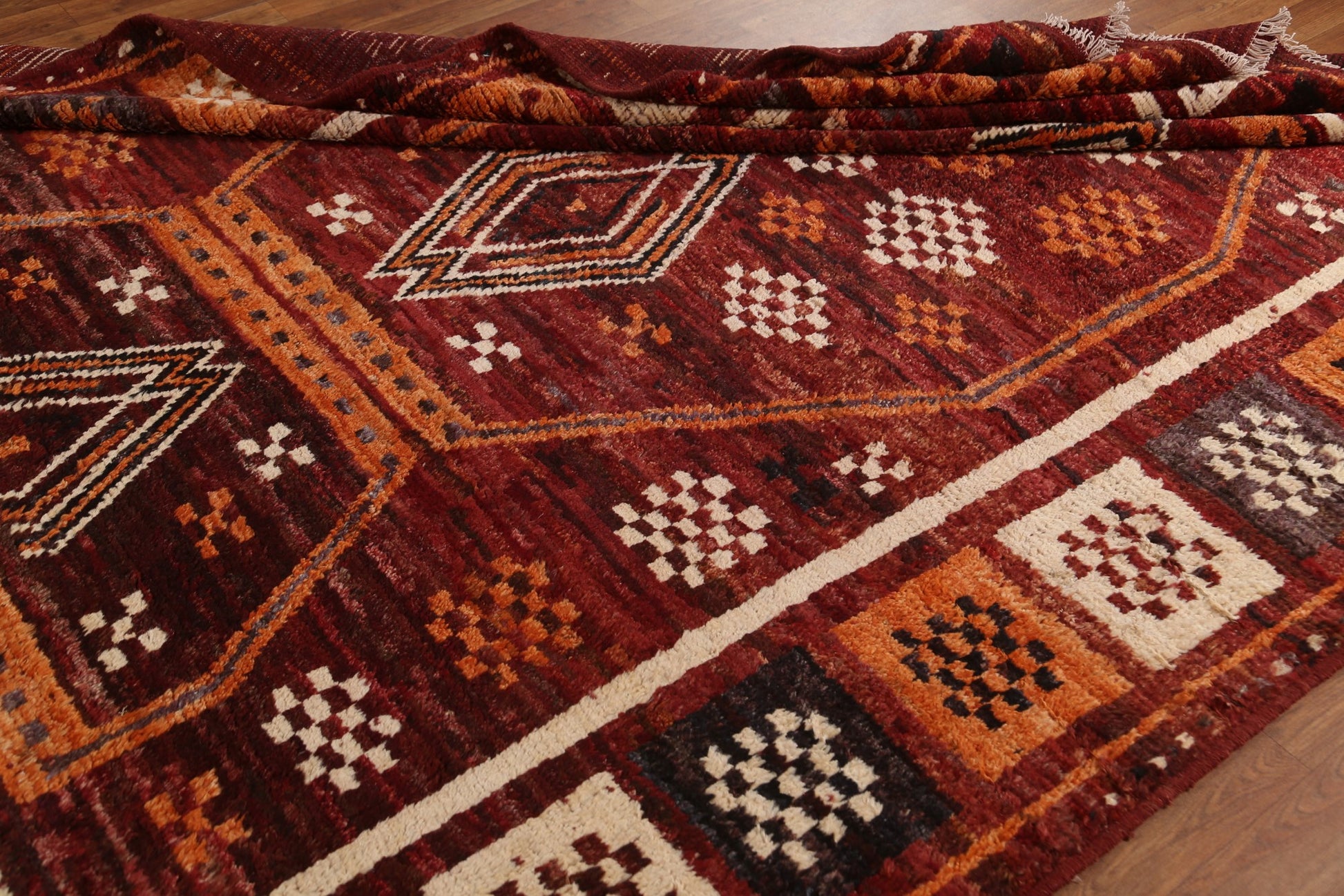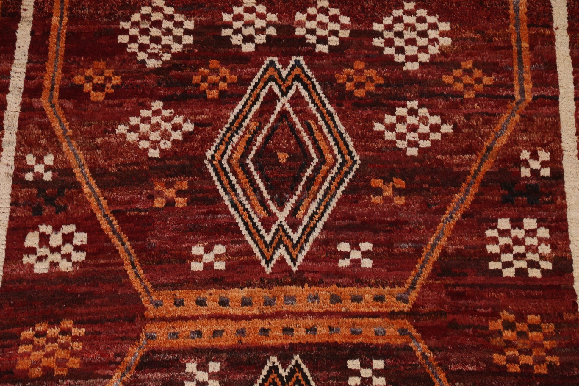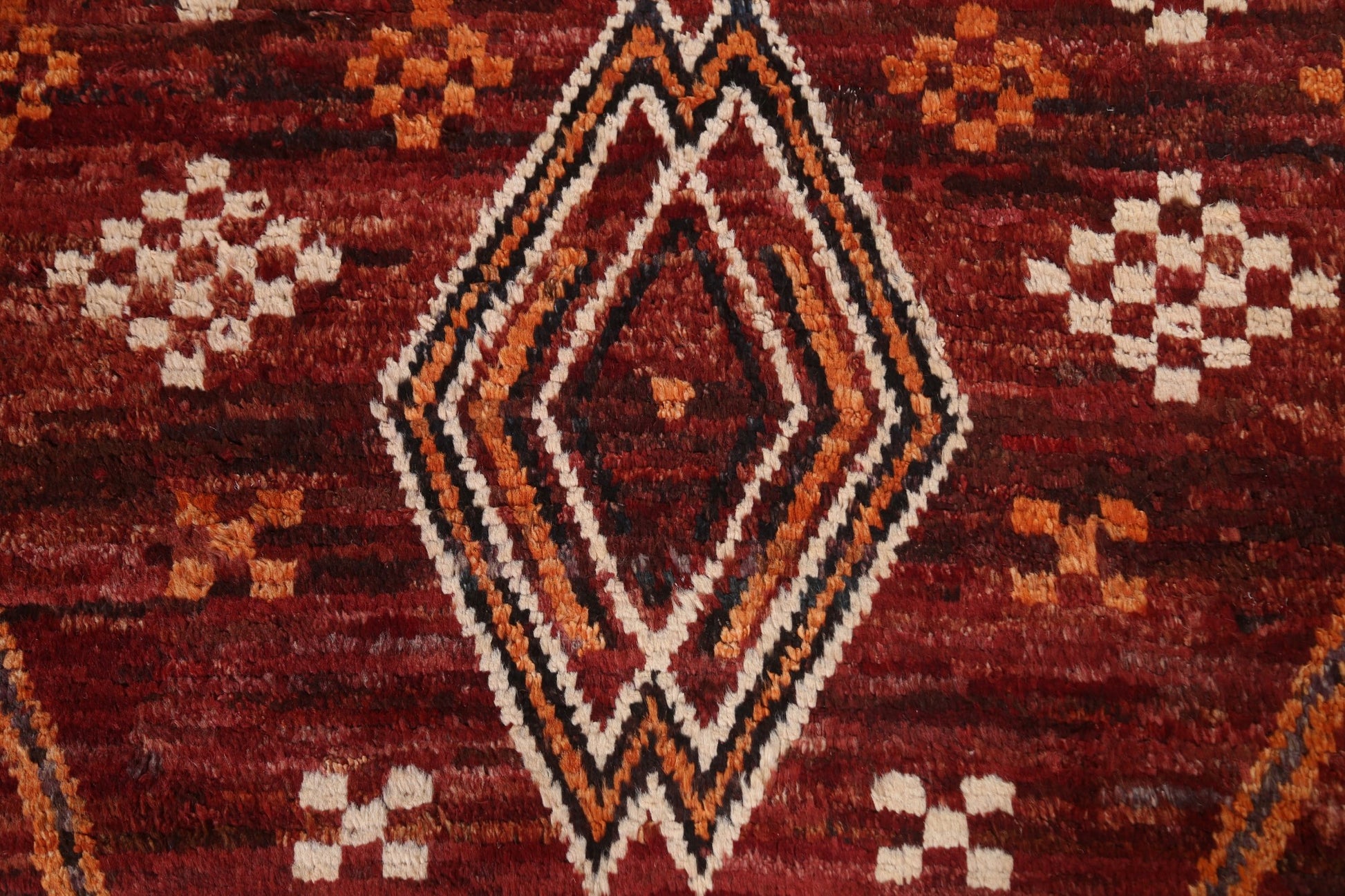 A Beautiful Genuine Pakistan Moroccan rug is Hand Knotted by skillful weavers in Pakistan with 100% Wool Material. This rug is in condition. dimensions are 9' 6'' X 7' 0'' in foot and 290 X 213 in centimeter. the primary color is Red.