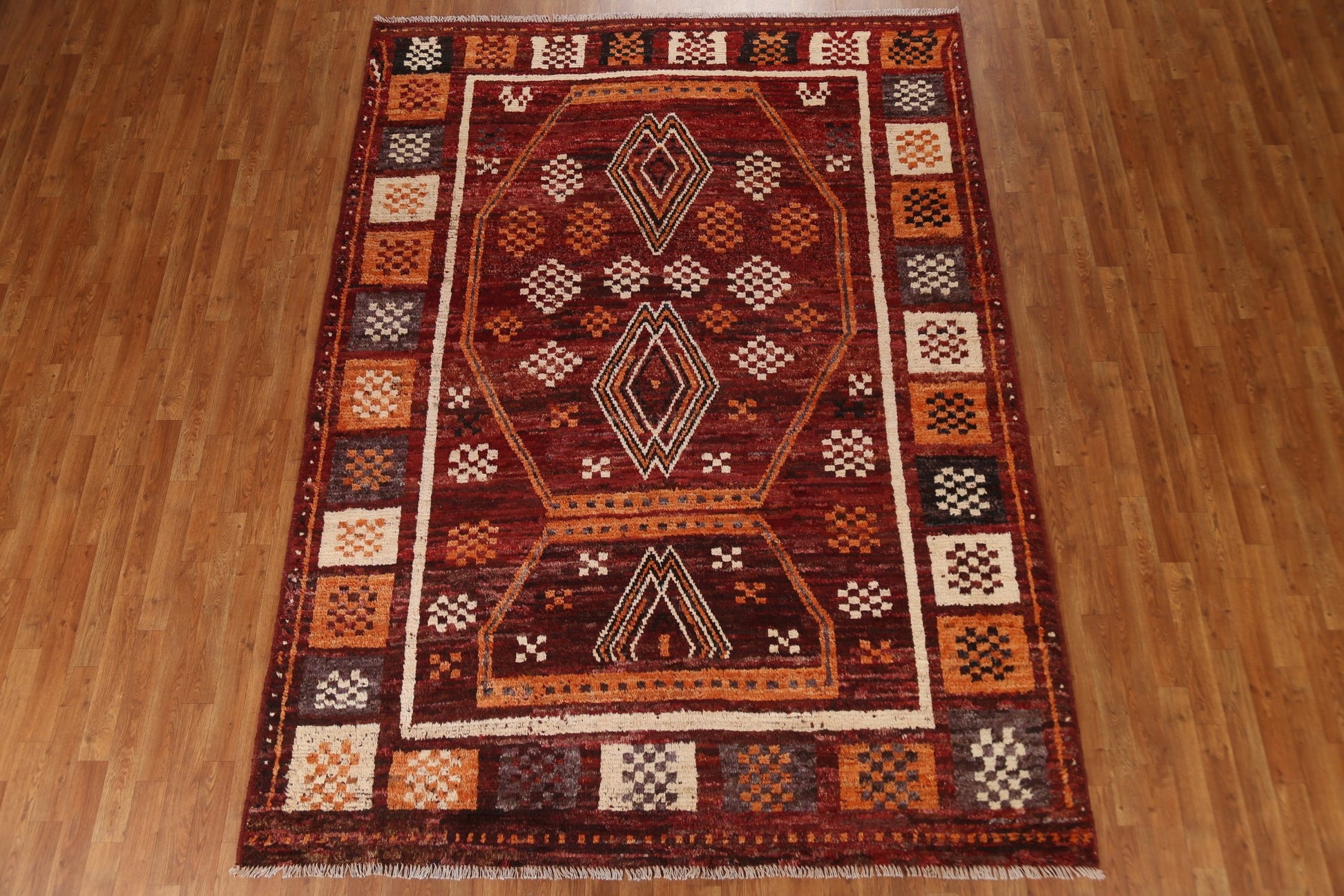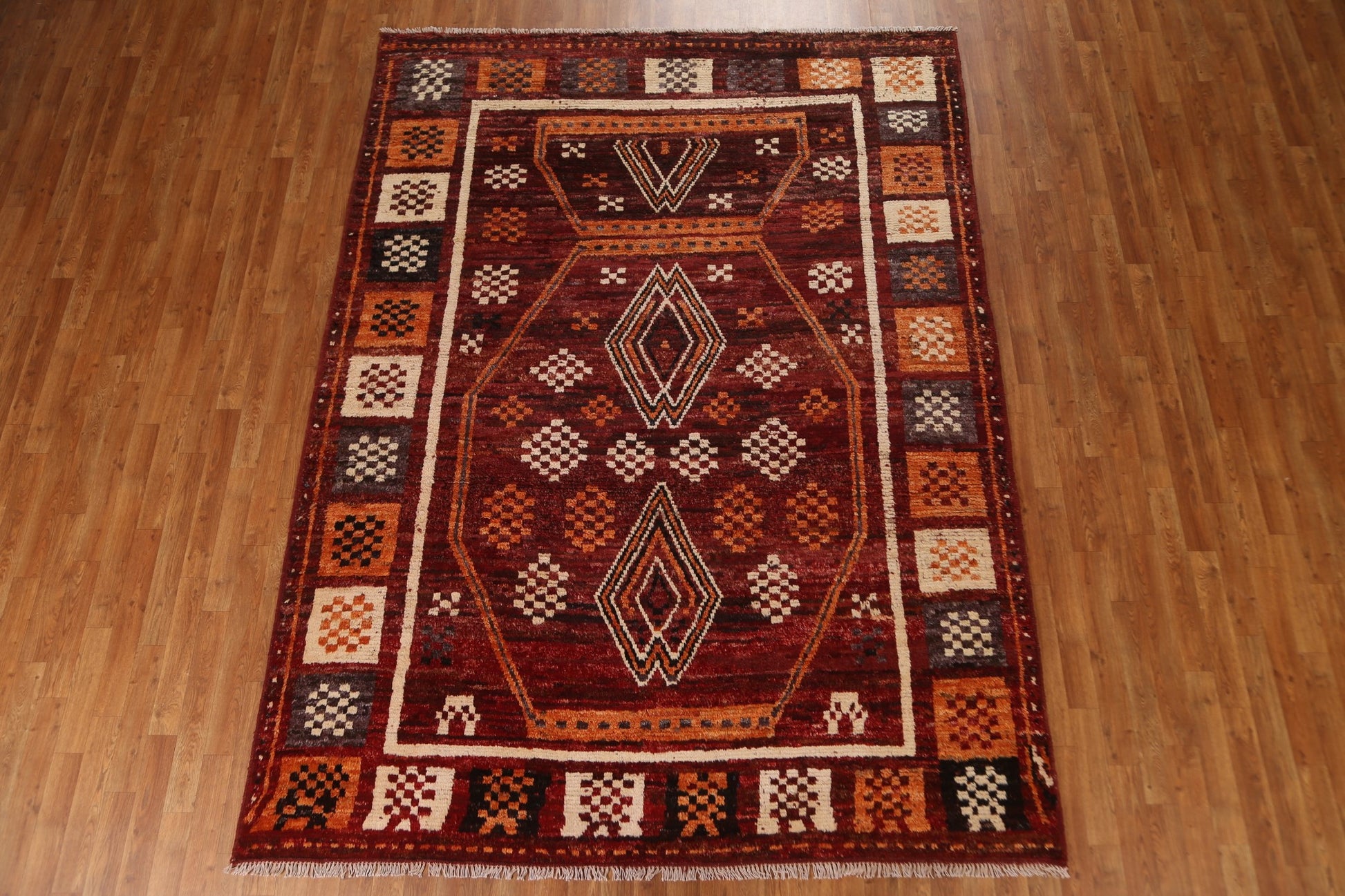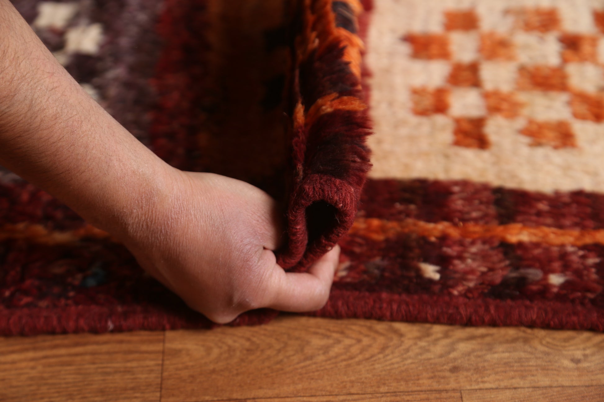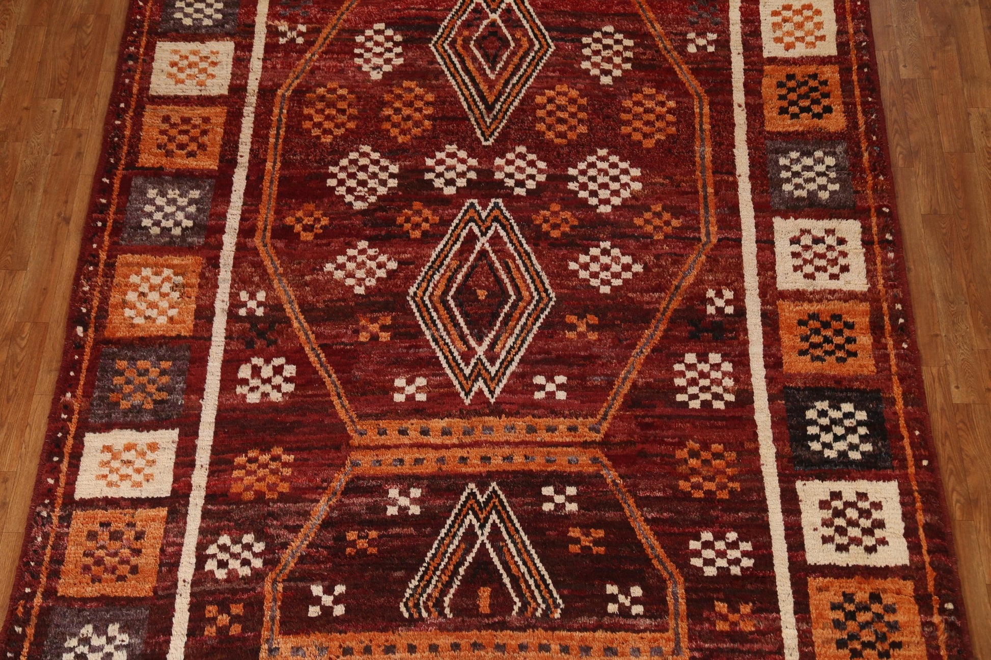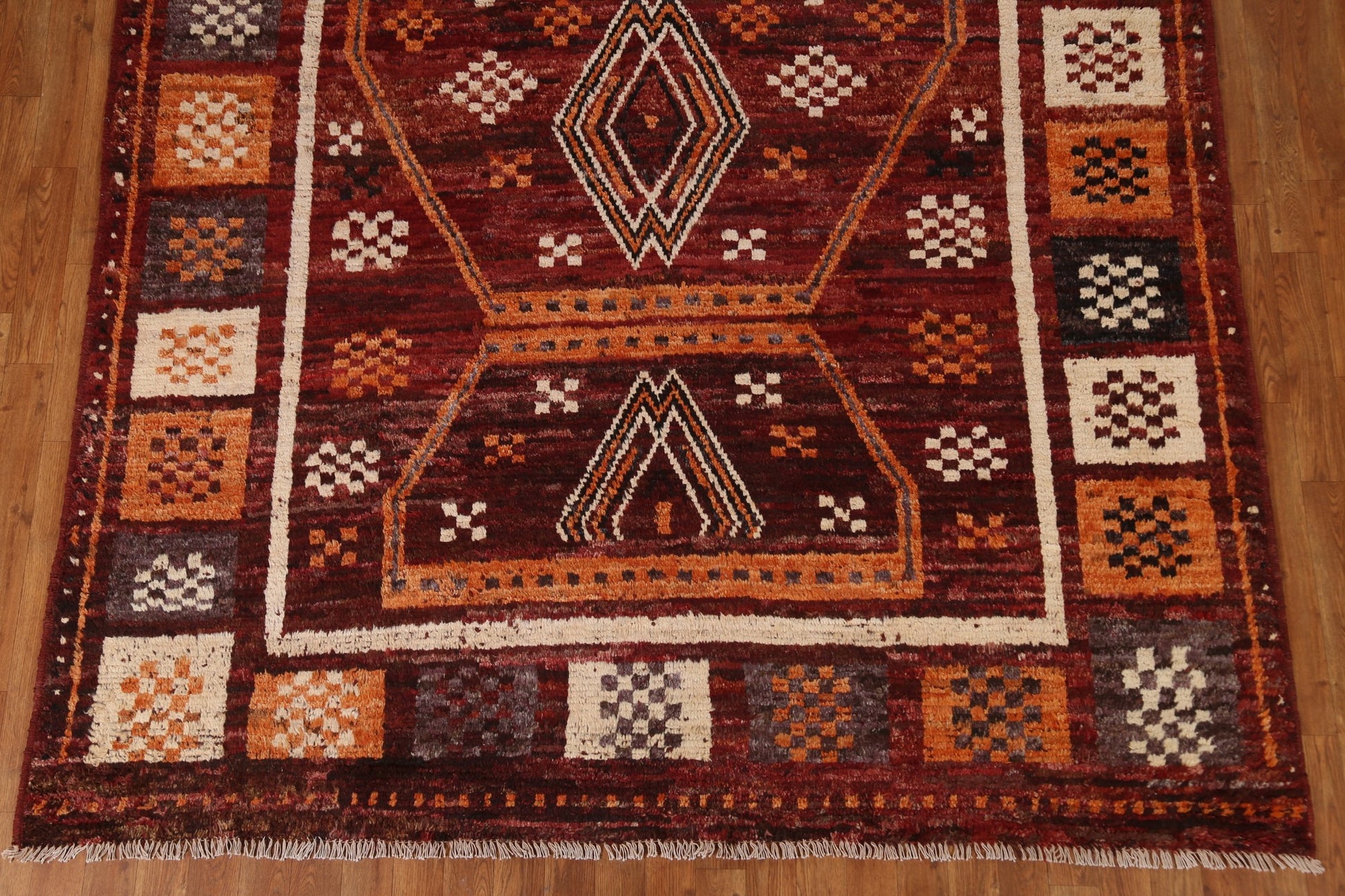 A Beautiful Genuine Pakistan Moroccan rug is Hand Knotted by skillful weavers in Pakistan with 100% Wool Material. This rug is in condition. dimensions are 9' 6'' X 7' 0'' in foot and 290 X 213 in centimeter. the primary color is Red.
