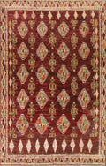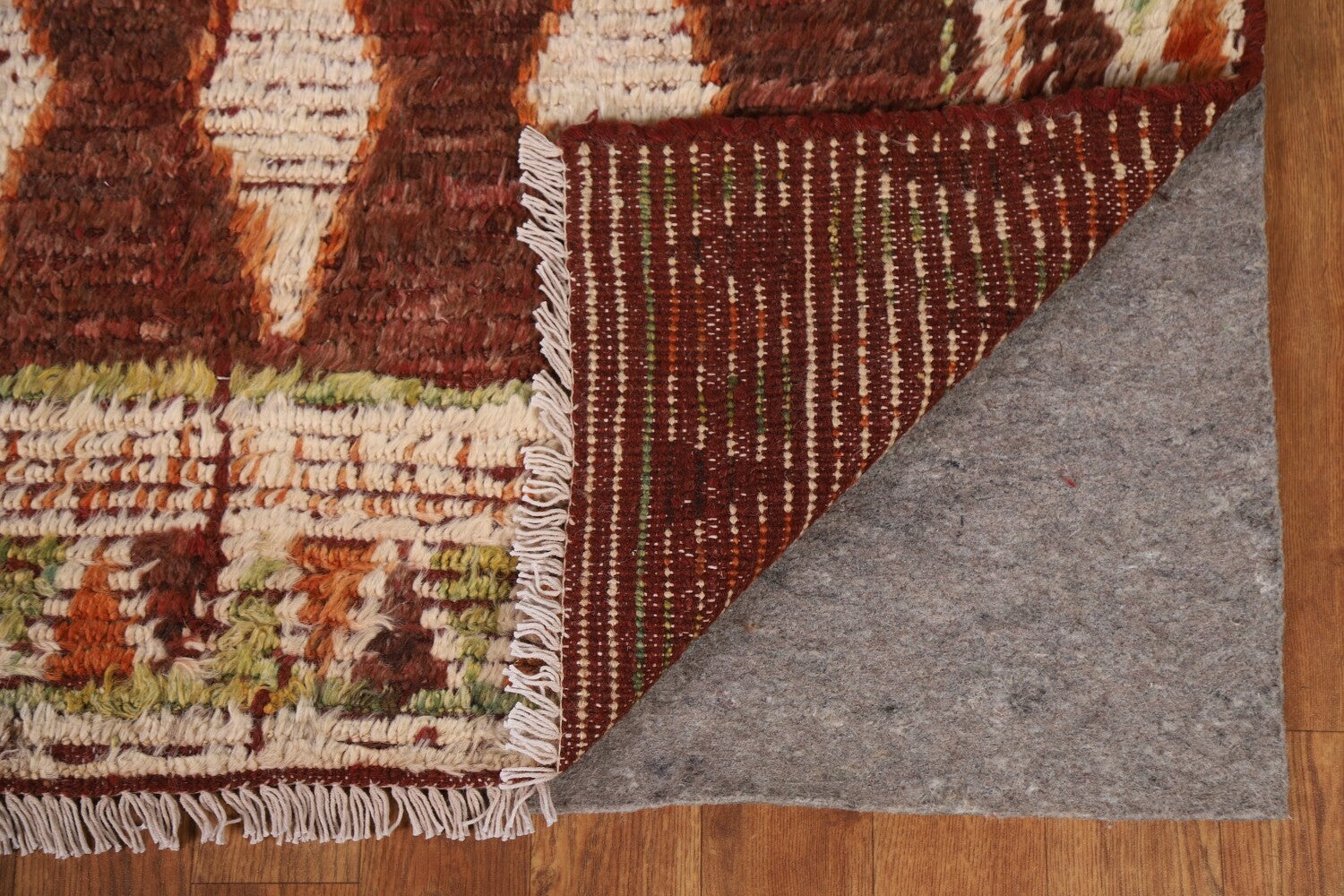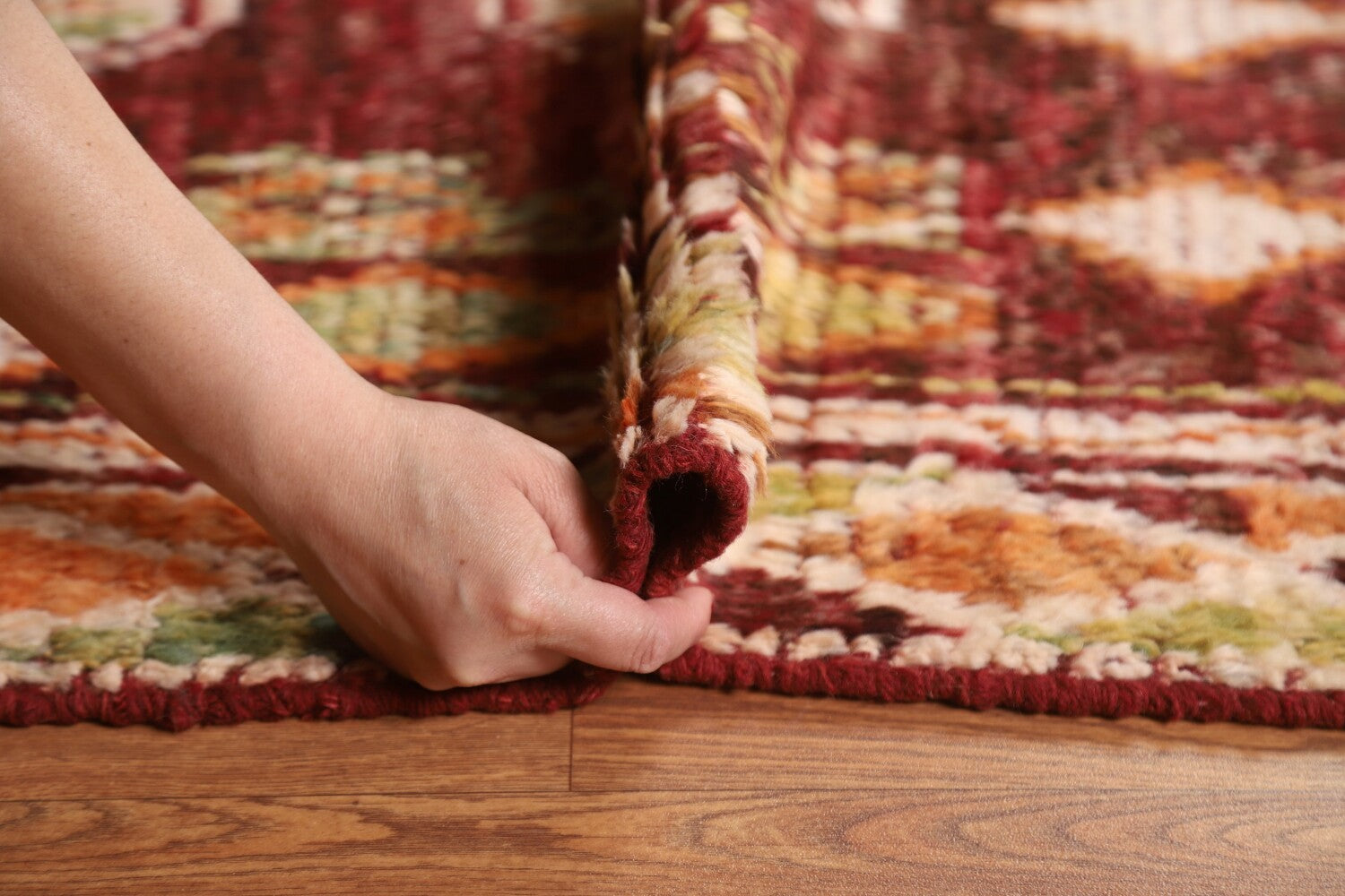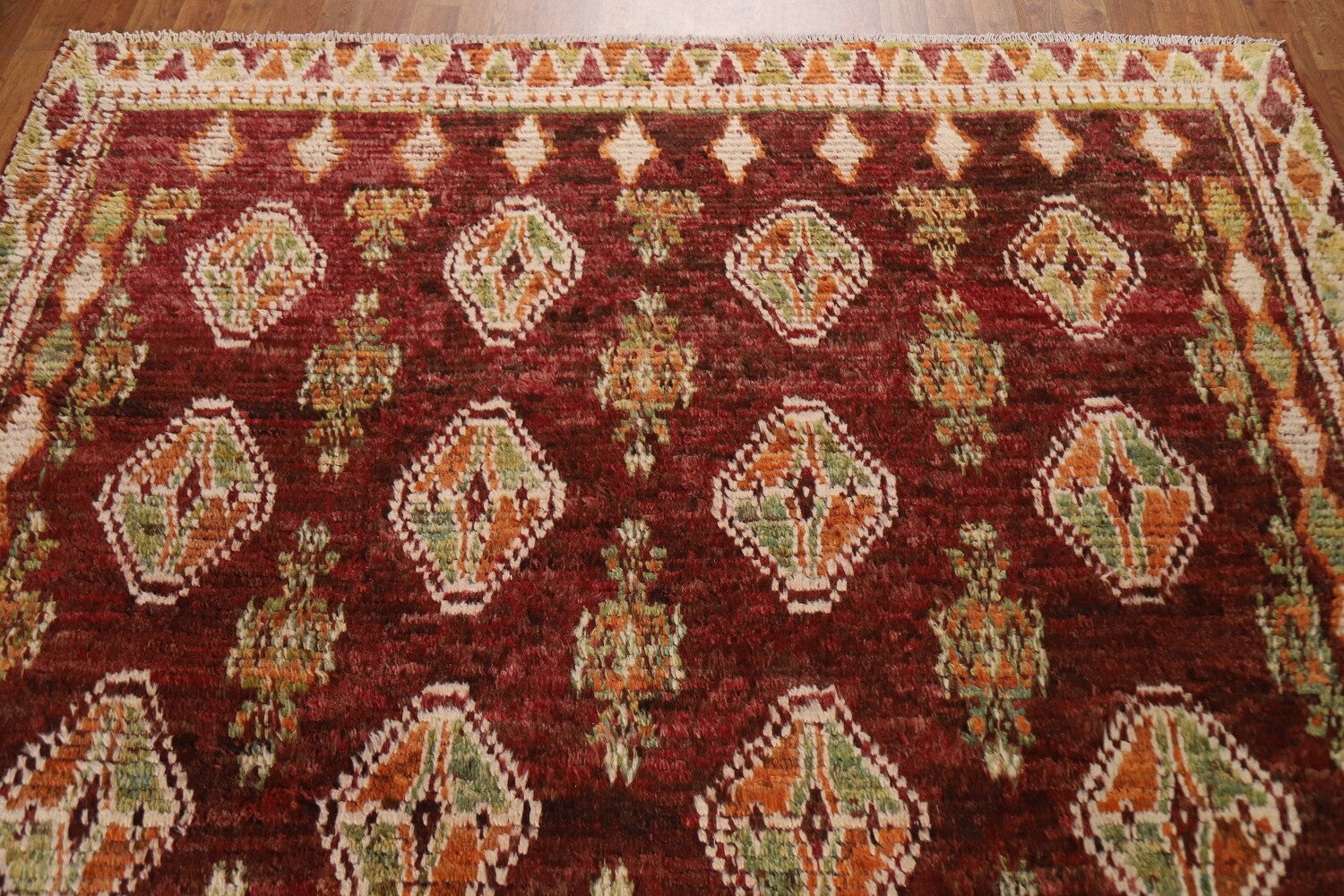 A Beautiful Genuine Pakistan Moroccan rug is Hand Knotted by skillful weavers in Pakistan with 100% Wool Material. This rug is in condition. dimensions are 9' 9'' X 6' 11'' in foot and 297 X 211 in centimeter. the primary color is Red.