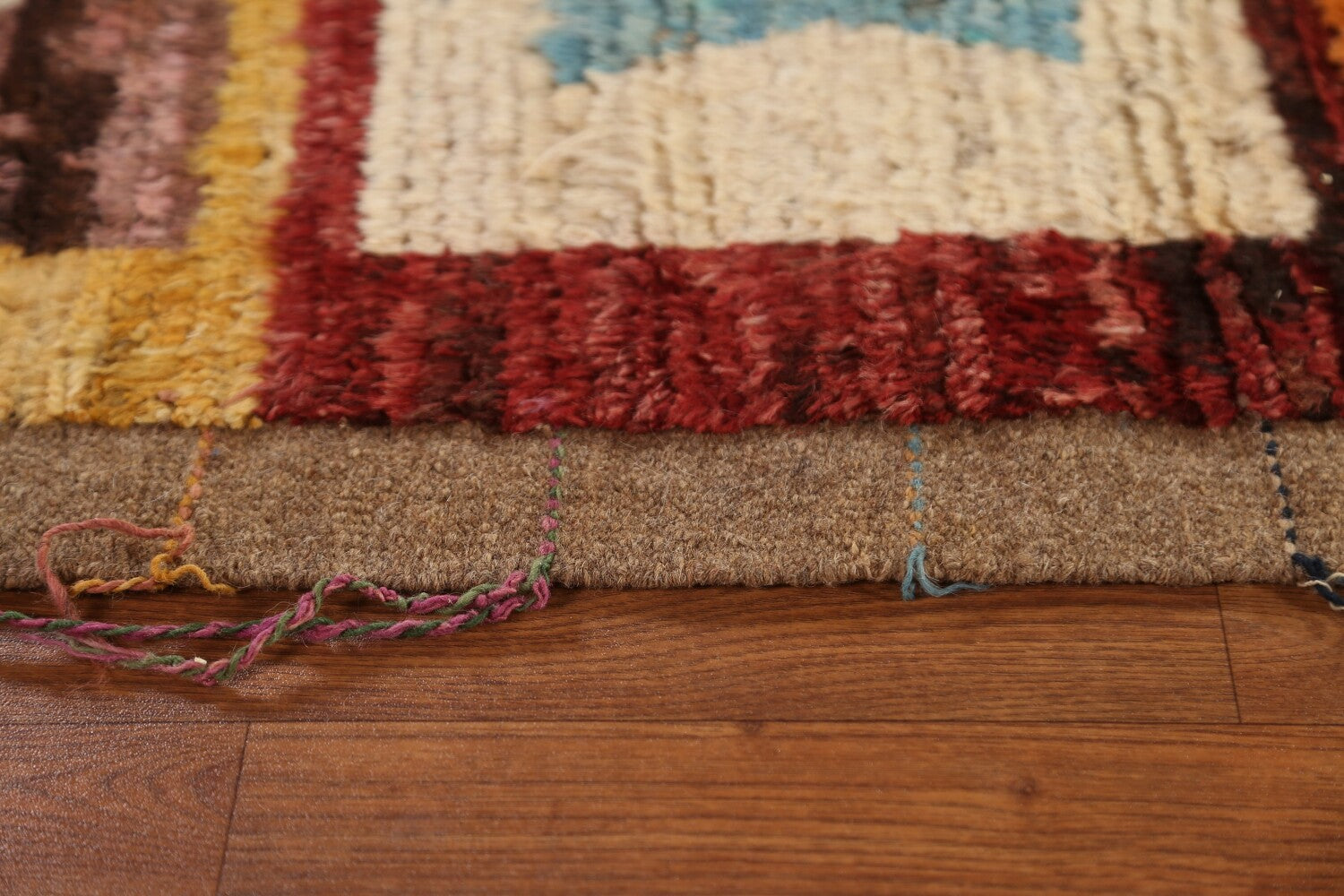 A Beautiful Genuine Pakistan Moroccan rug is Hand Knotted by skillful weavers in Pakistan with 100% Wool Material. This rug is in condition. dimensions are 9' 11'' X 6' 9'' in foot and 302 X 206 in centimeter. the primary color is Multi-Colored.