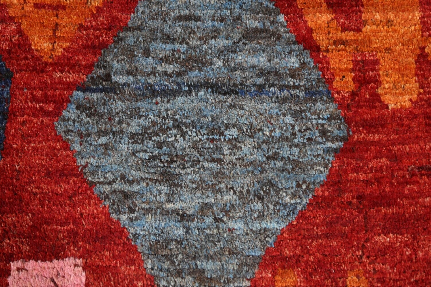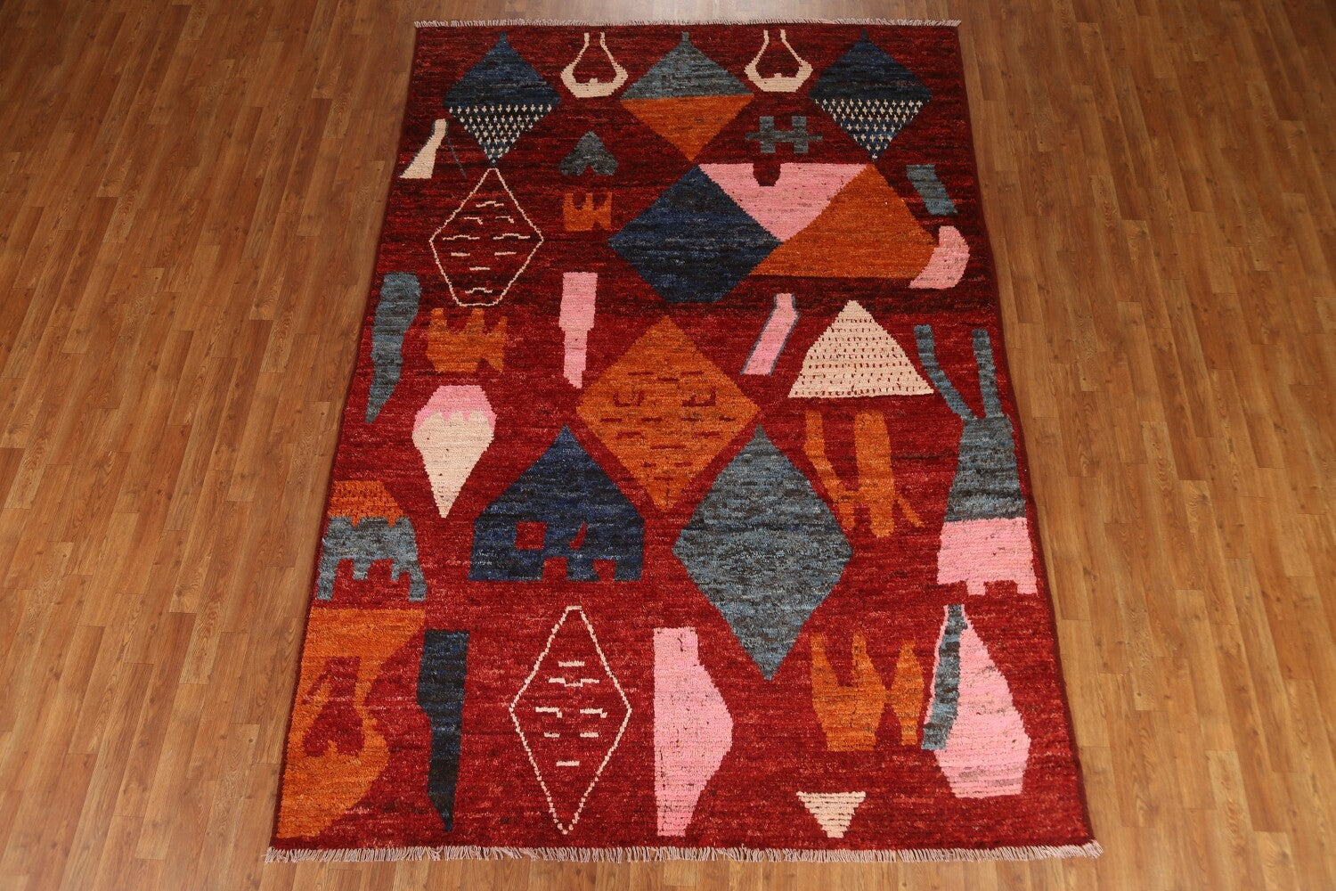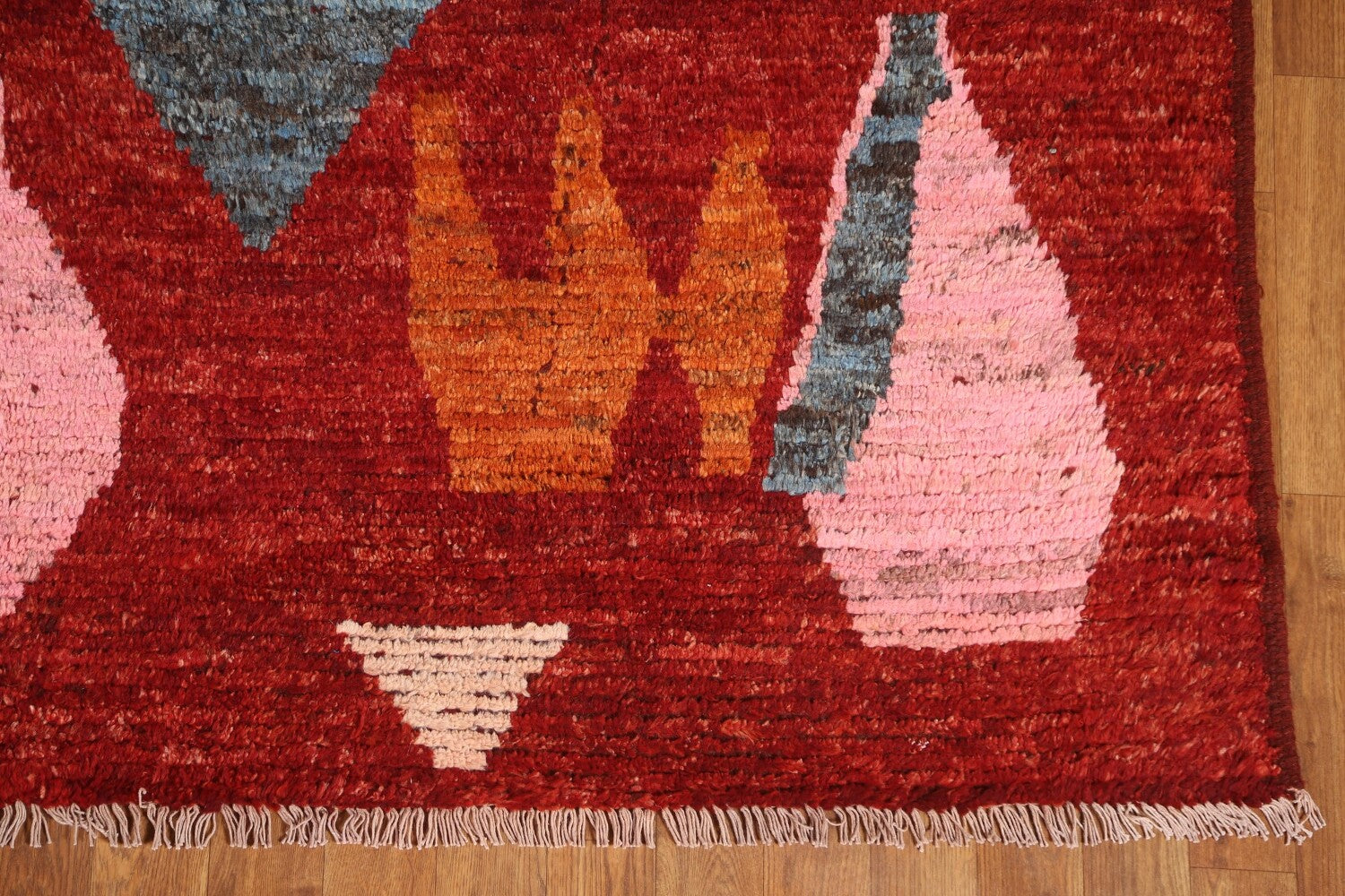 A Beautiful Genuine Pakistan Moroccan rug is Hand Knotted by skillful weavers in Pakistan with 100% Wool Material. This rug is in condition. dimensions are 9' 10'' X 6' 10'' in foot and 300 X 208 in centimeter. the primary color is Red.