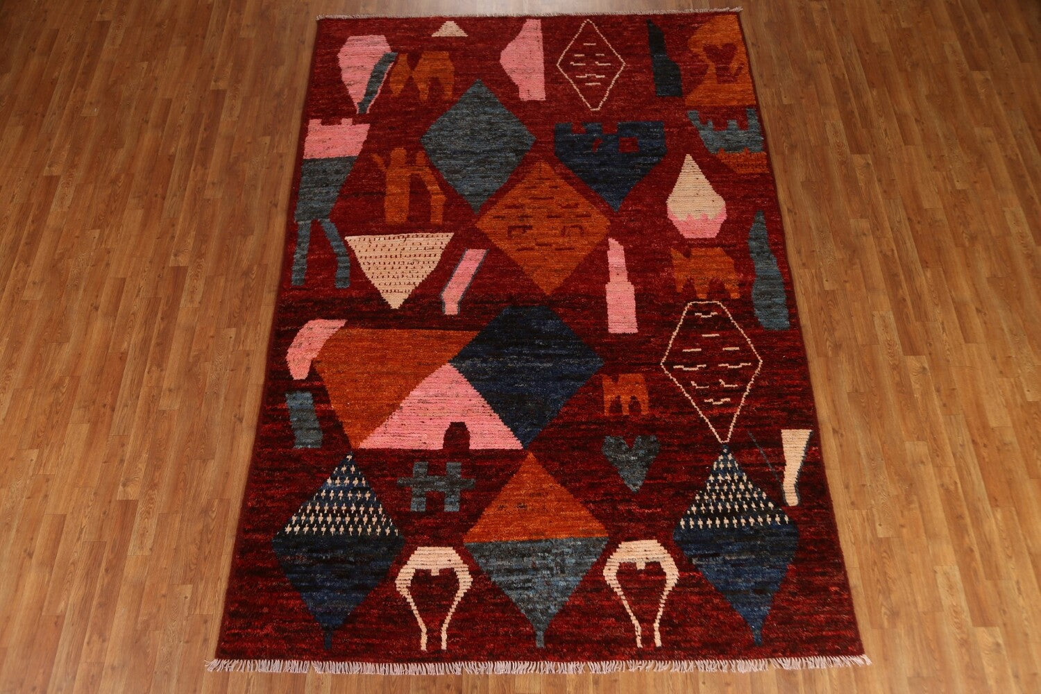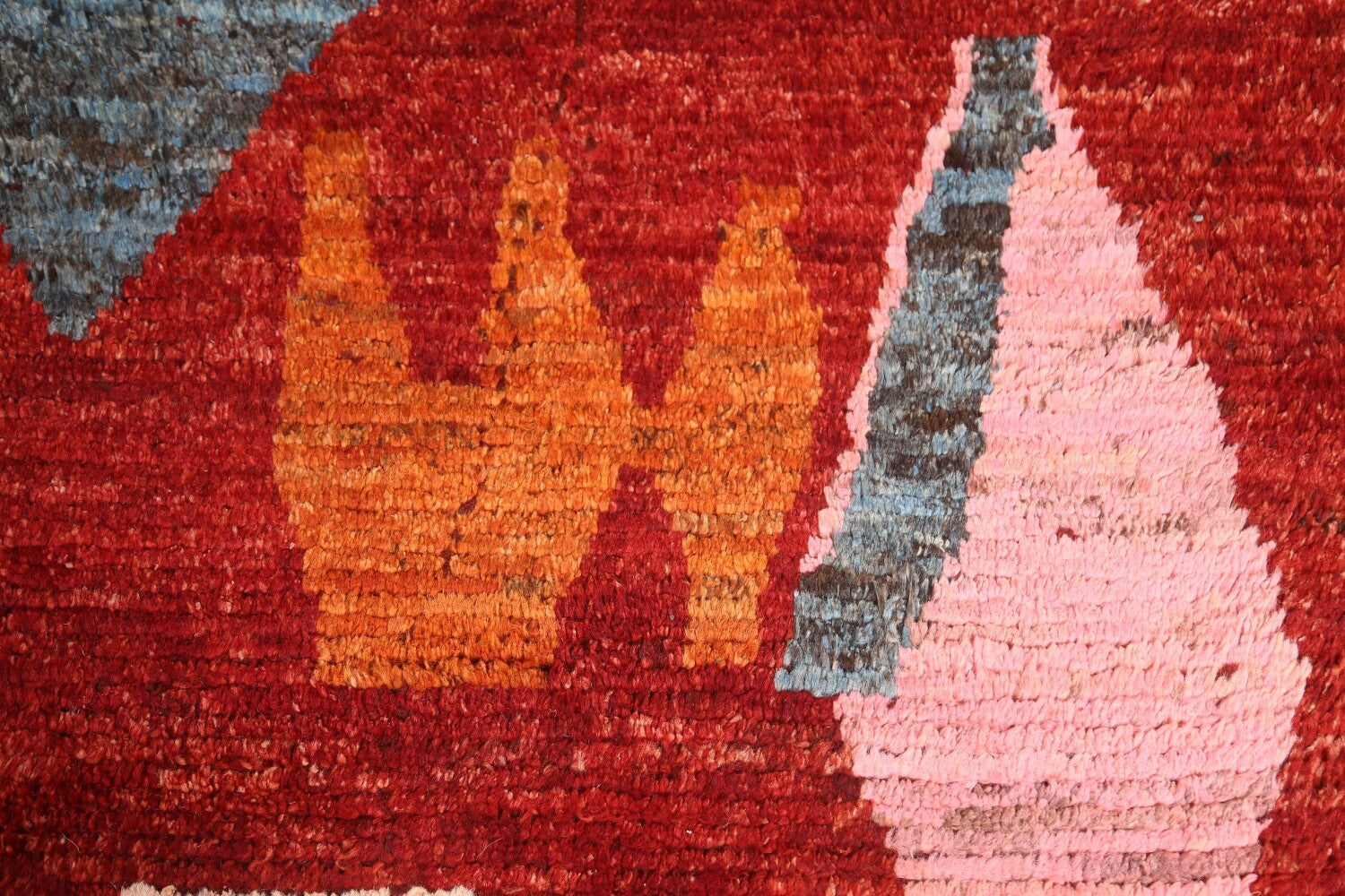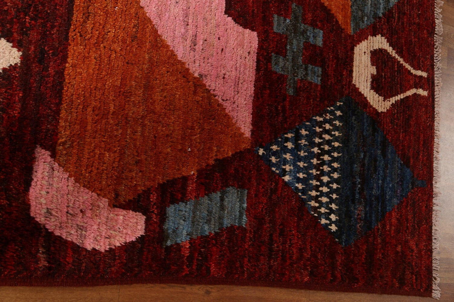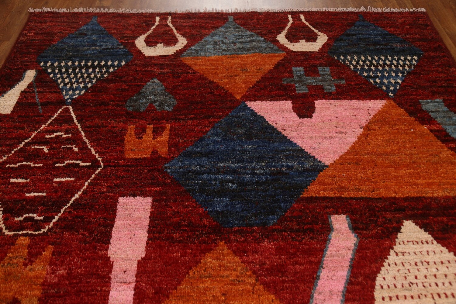 A Beautiful Genuine Pakistan Moroccan rug is Hand Knotted by skillful weavers in Pakistan with 100% Wool Material. This rug is in condition. dimensions are 9' 10'' X 6' 10'' in foot and 300 X 208 in centimeter. the primary color is Red.