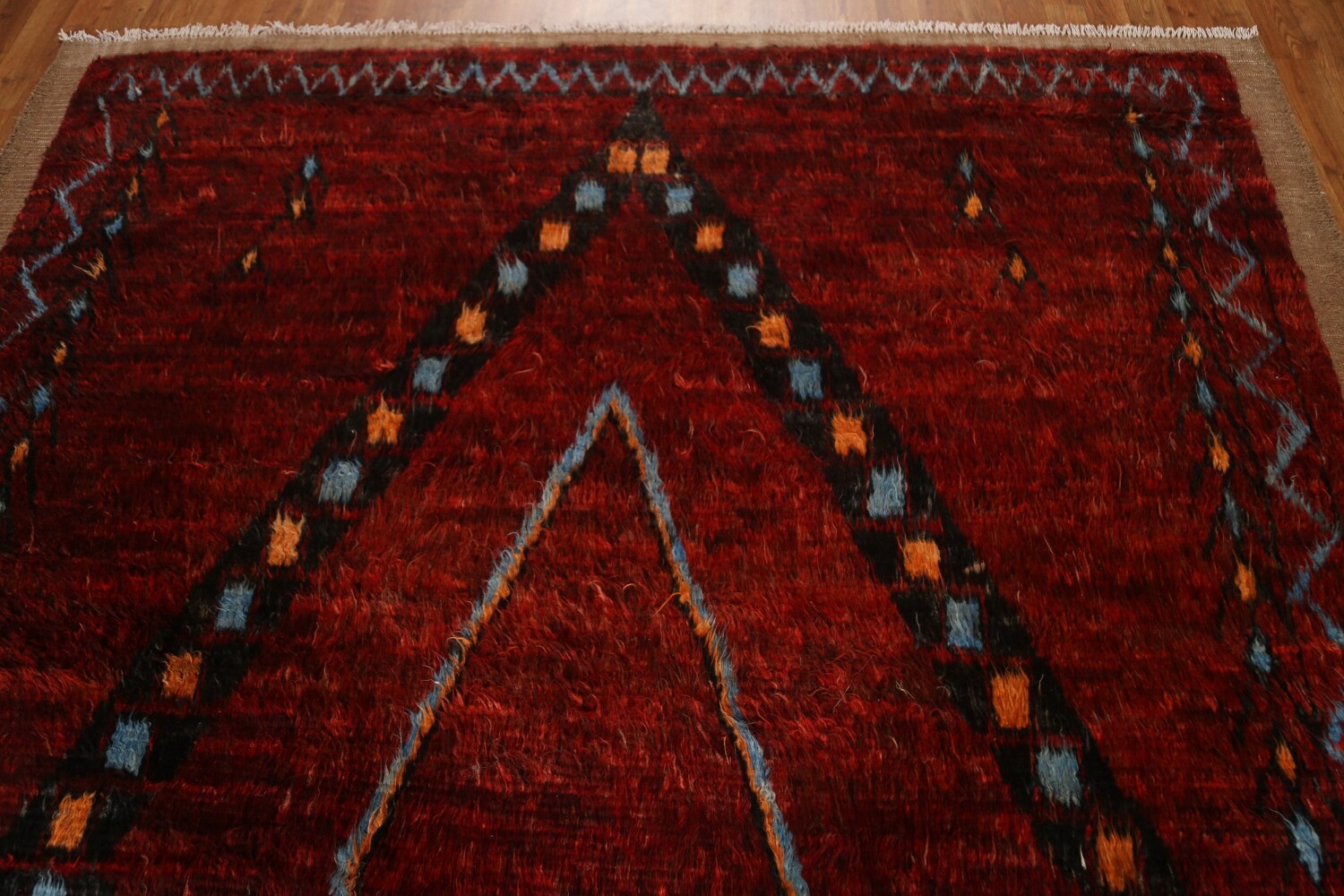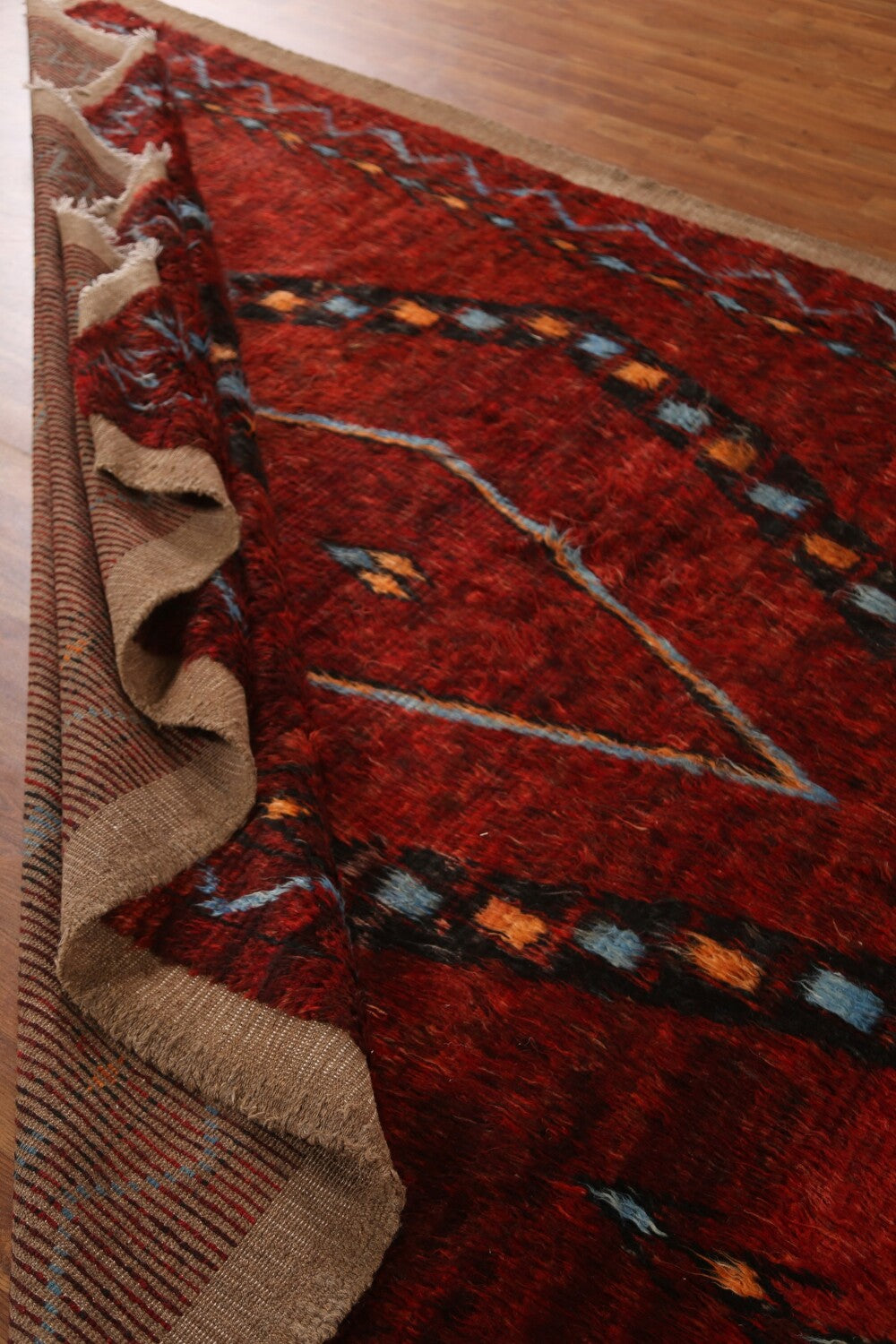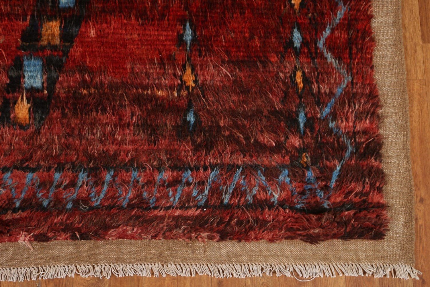 A Beautiful Genuine Pakistan Moroccan rug is Hand Knotted by skillful weavers in Pakistan with 100% Wool Material. This rug is in condition. dimensions are 10' 2'' X 7' 5'' in foot and 310 X 226 in centimeter. the primary color is Red.