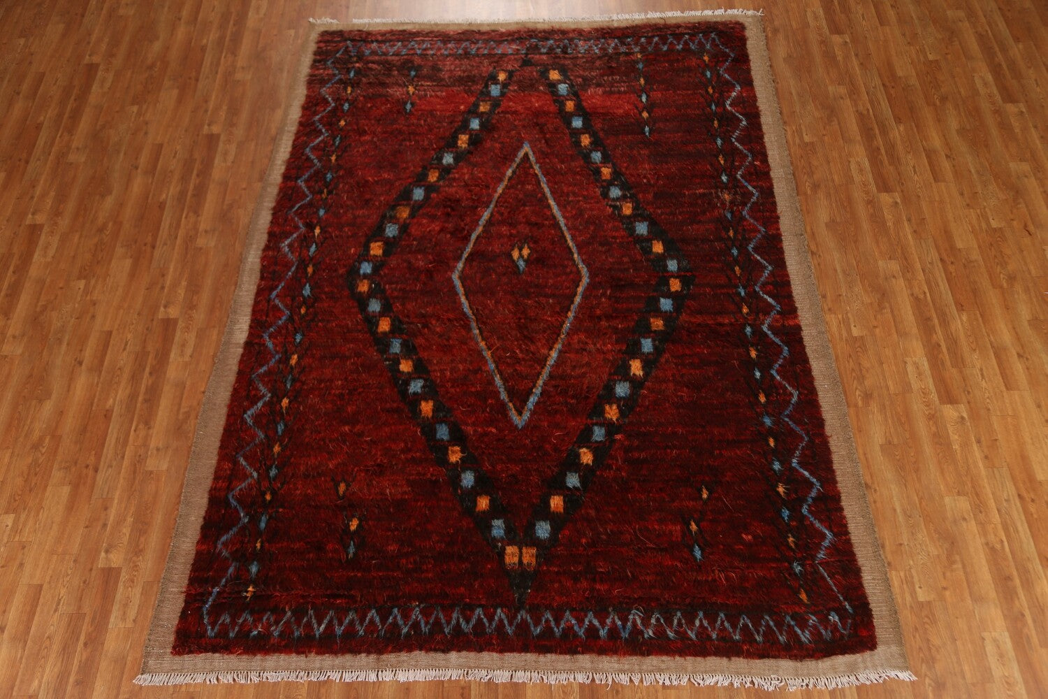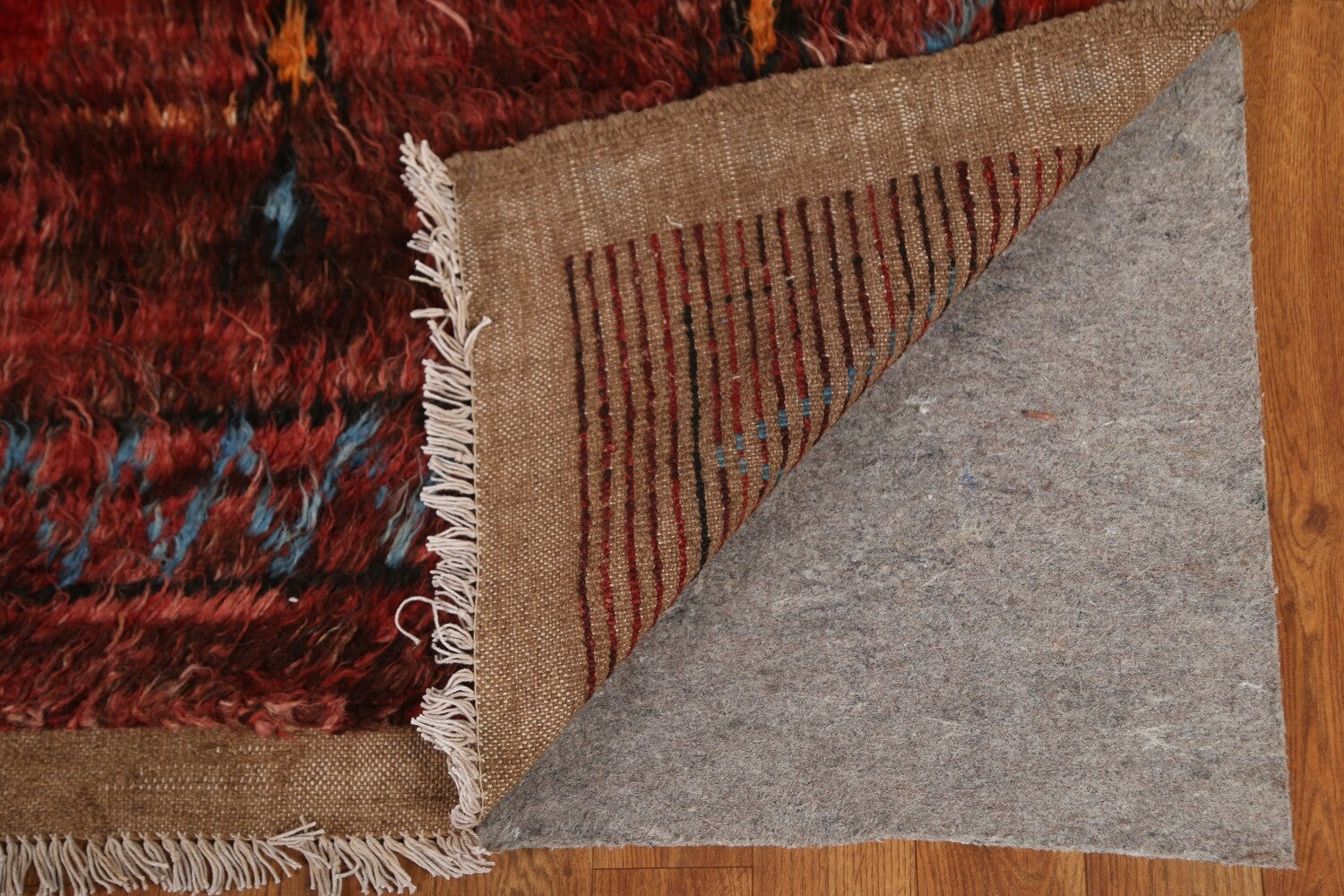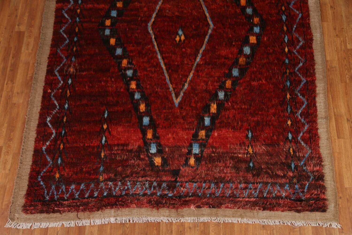 A Beautiful Genuine Pakistan Moroccan rug is Hand Knotted by skillful weavers in Pakistan with 100% Wool Material. This rug is in condition. dimensions are 10' 2'' X 7' 5'' in foot and 310 X 226 in centimeter. the primary color is Red.