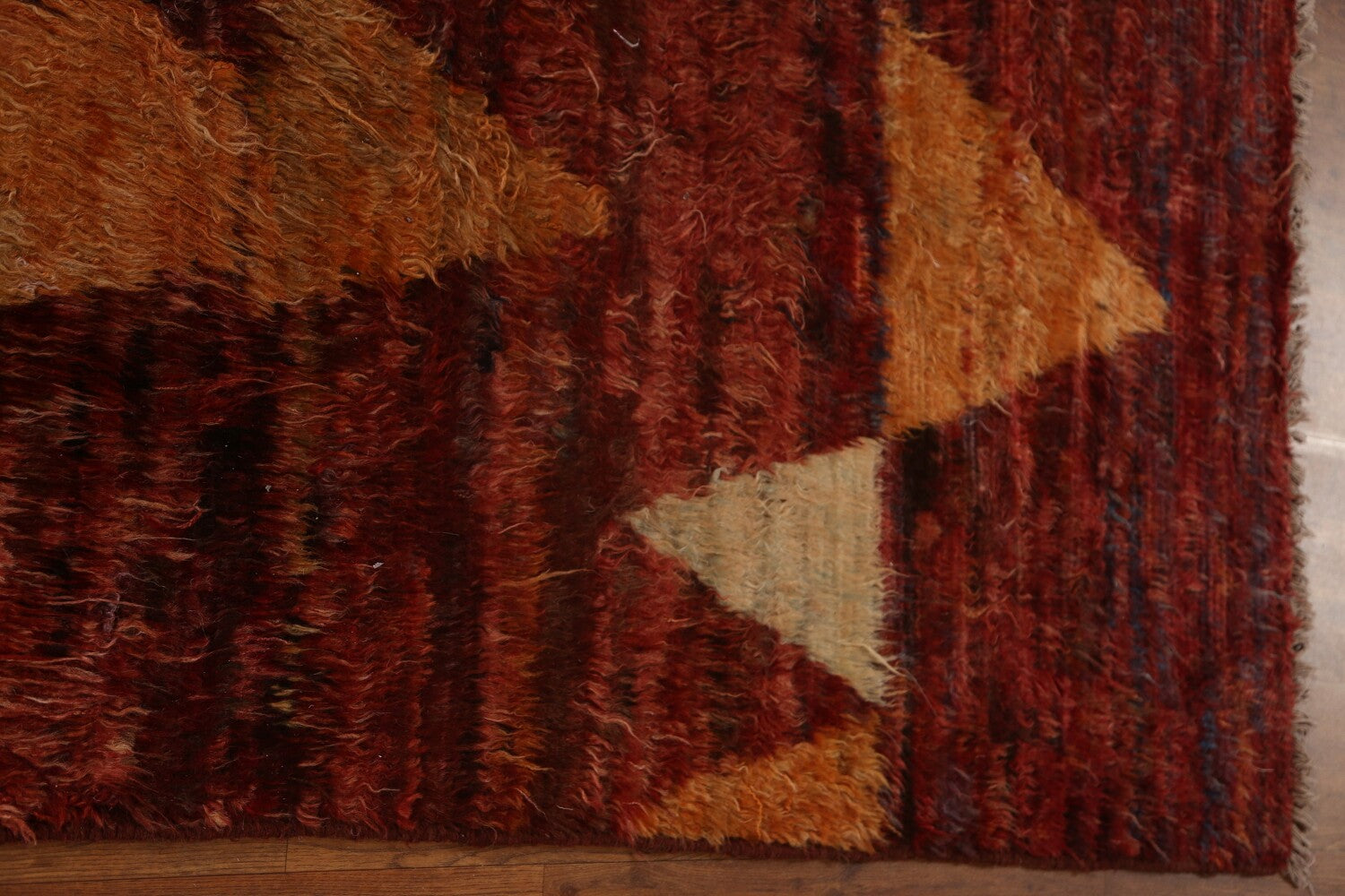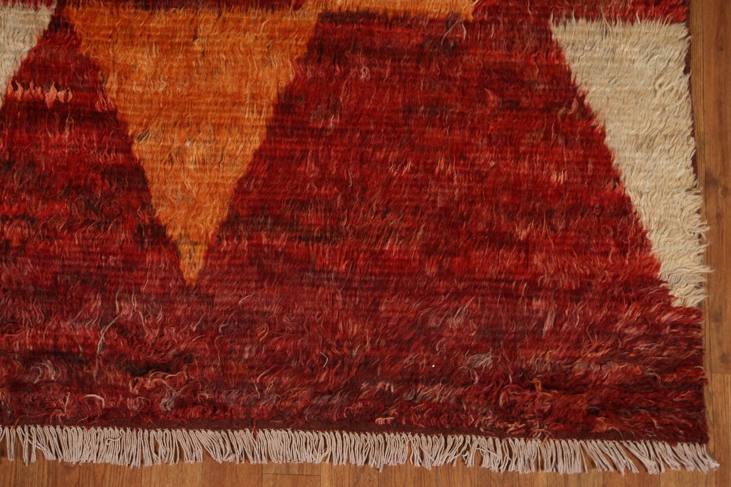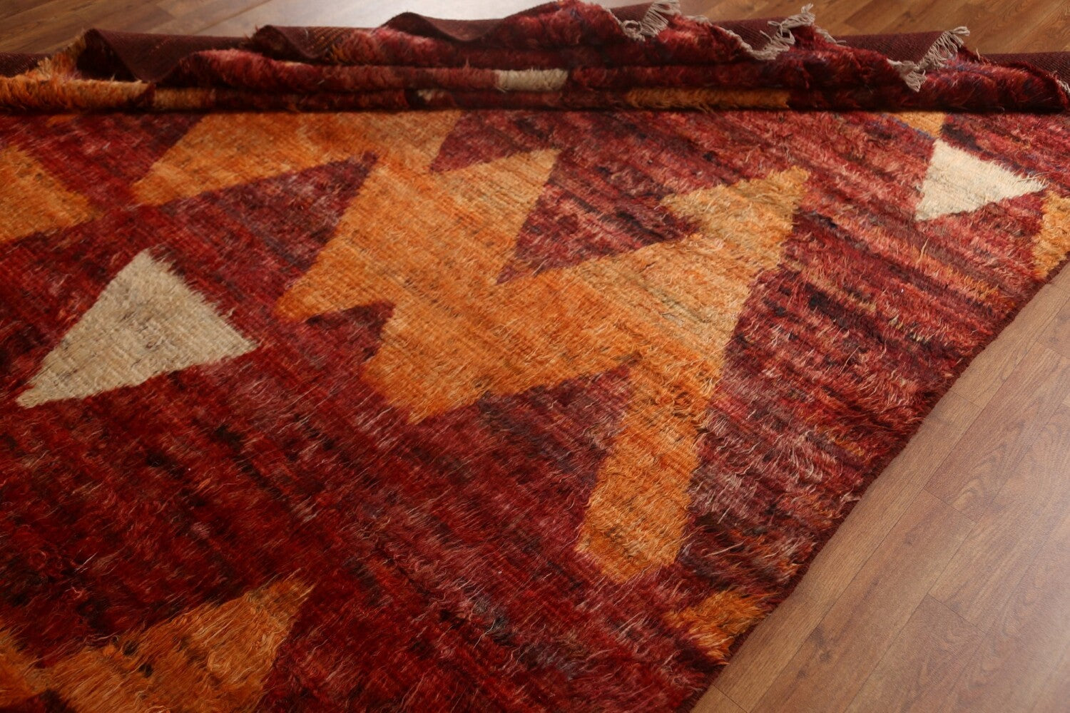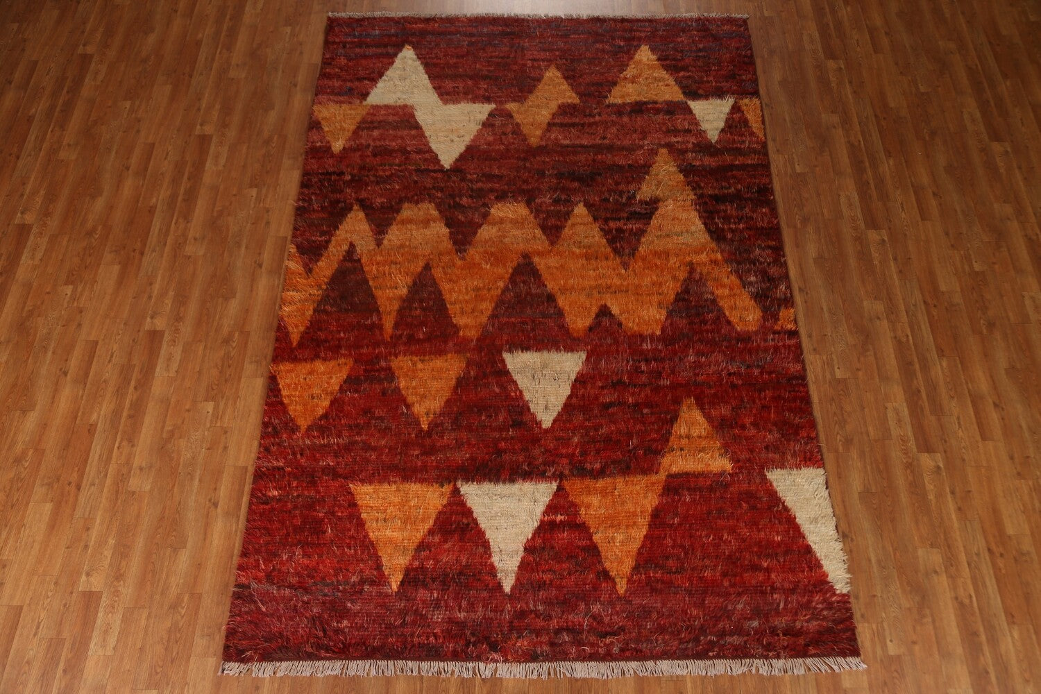 A Beautiful Genuine Pakistan Moroccan rug is Hand Knotted by skillful weavers in Pakistan with 100% Wool Material. This rug is in condition. dimensions are 9' 8'' X 6' 7'' in foot and 295 X 201 in centimeter. the primary color is Red.