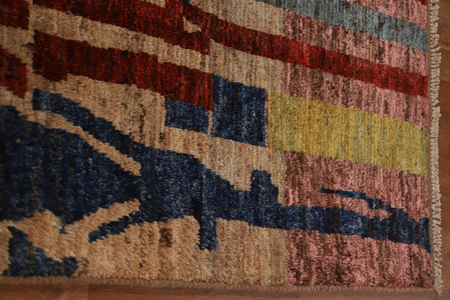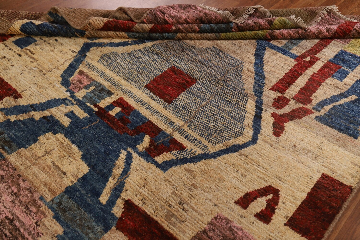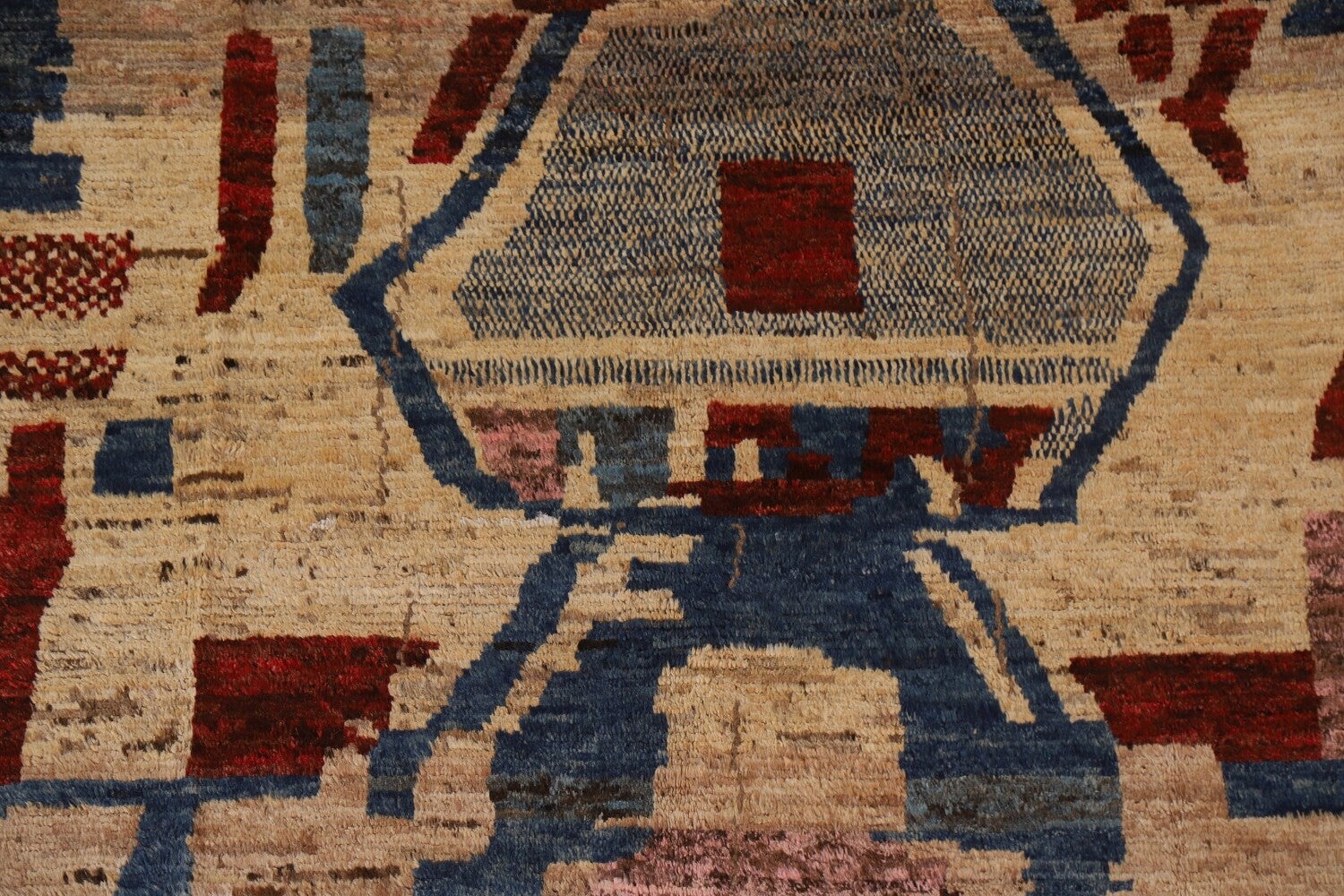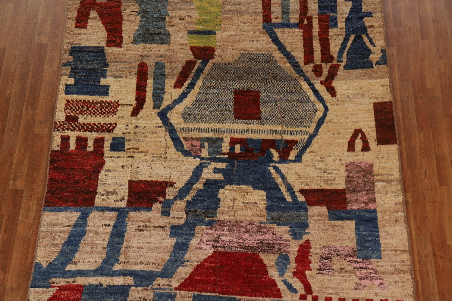 A Beautiful Genuine Pakistan Moroccan rug is Hand Knotted by skillful weavers in Pakistan with 100% Wool Material. This rug is in condition. dimensions are 9' 6'' X 6' 9'' in foot and 290 X 206 in centimeter. the primary color is Beige & Ivories.