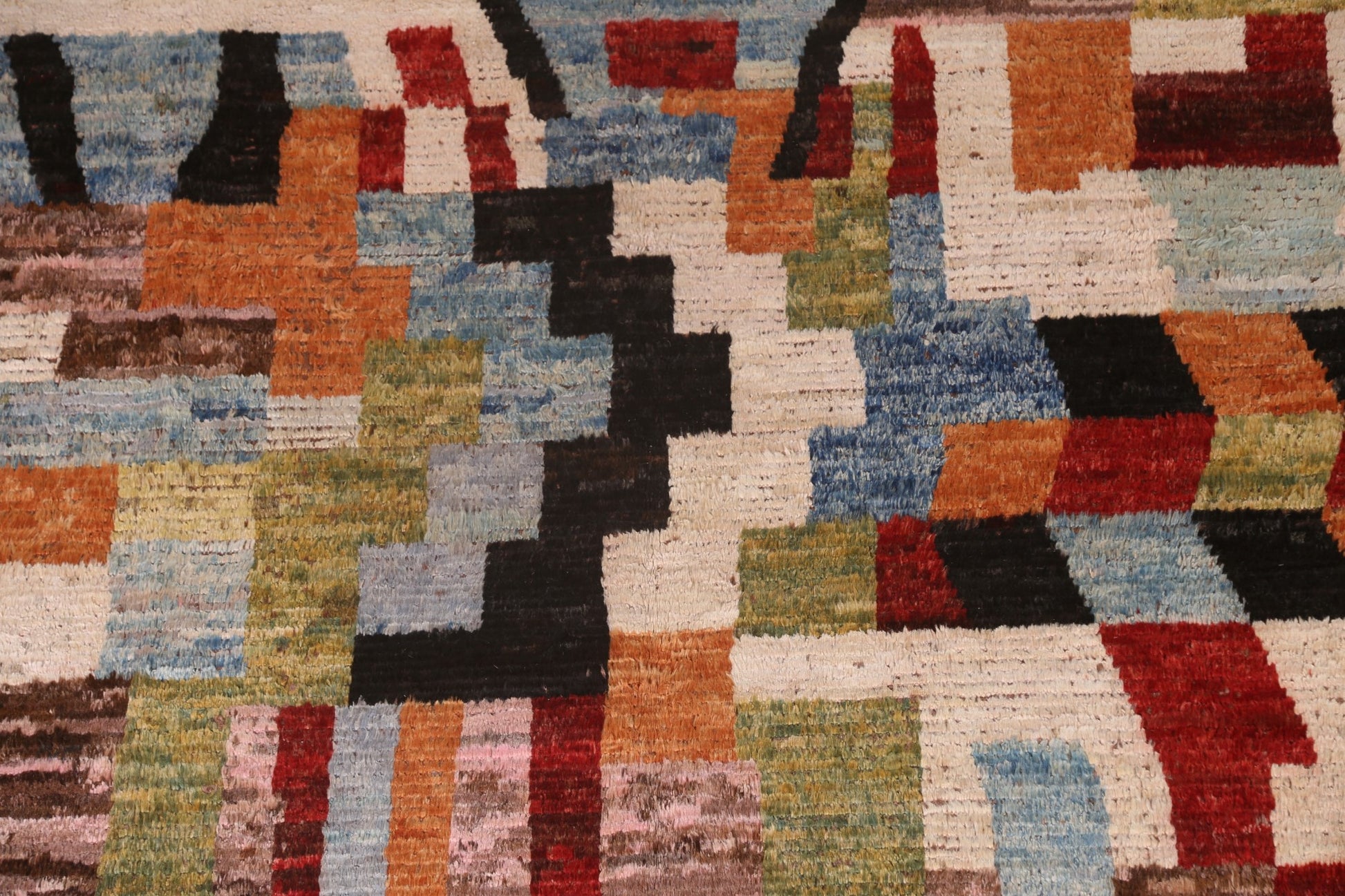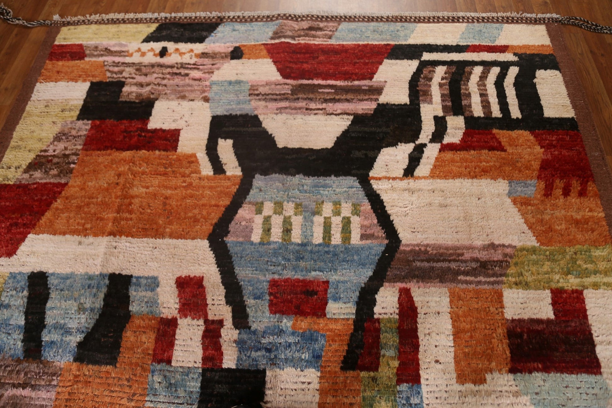 A Beautiful Genuine Pakistan Moroccan rug is Hand Knotted by skillful weavers in Pakistan with 100% Wool Material. This rug is in New, First Quality condition. dimensions are 9' 7'' X 6' 11'' in foot and 292 X 211 in centimeter. the primary color is Multi-Colored.