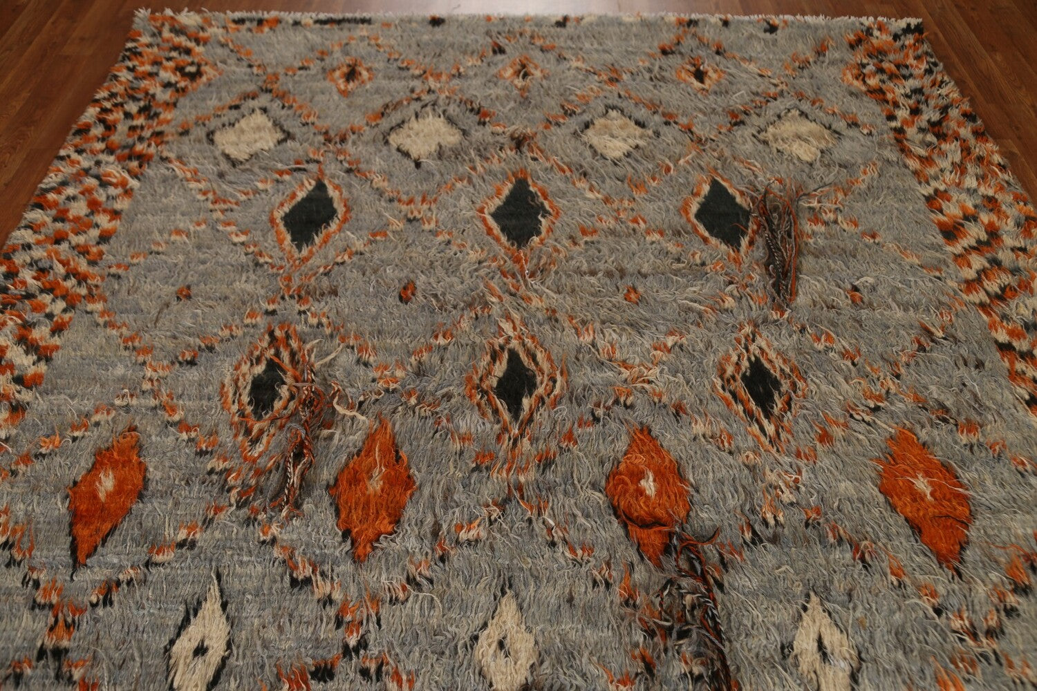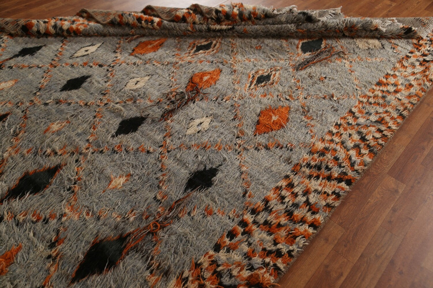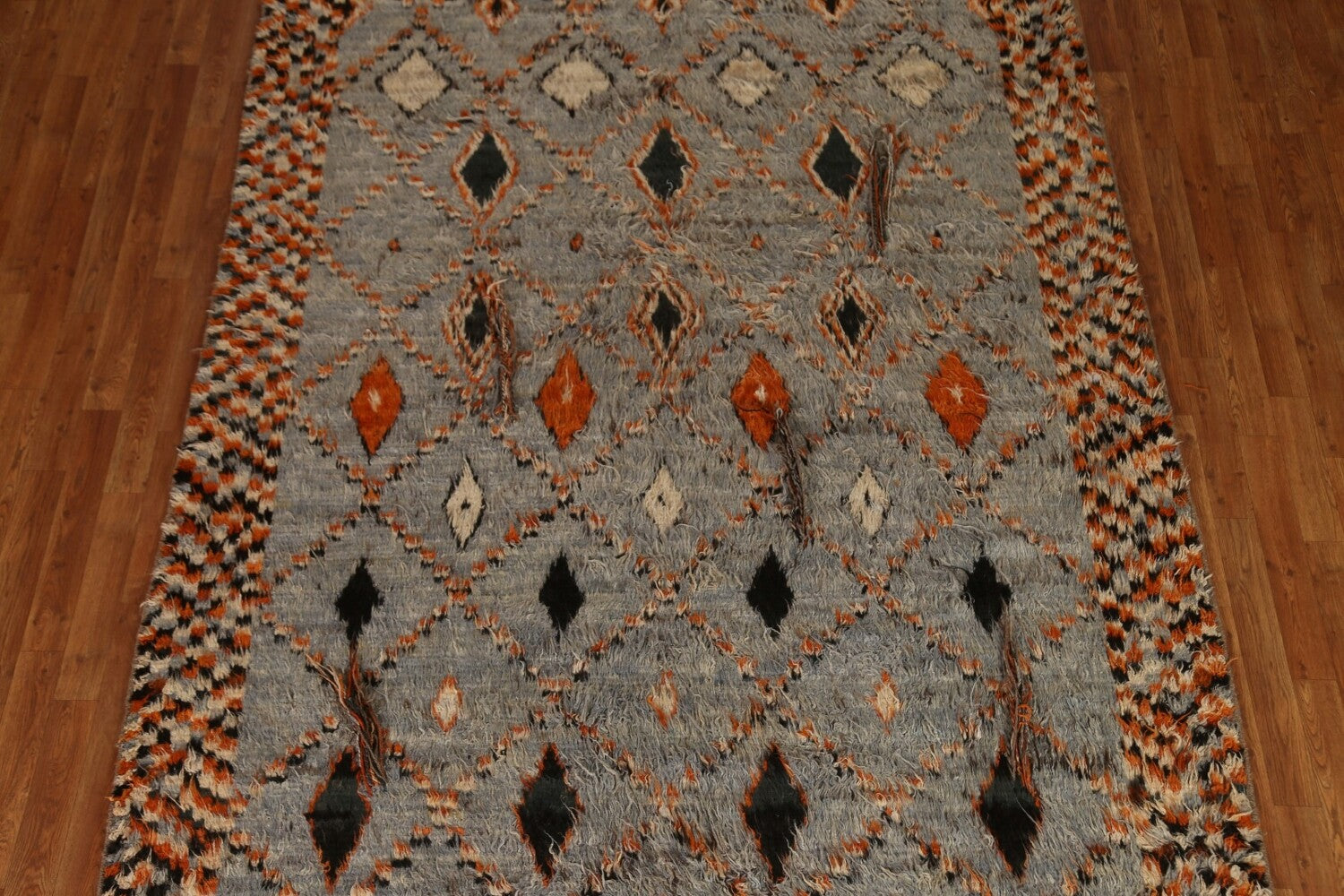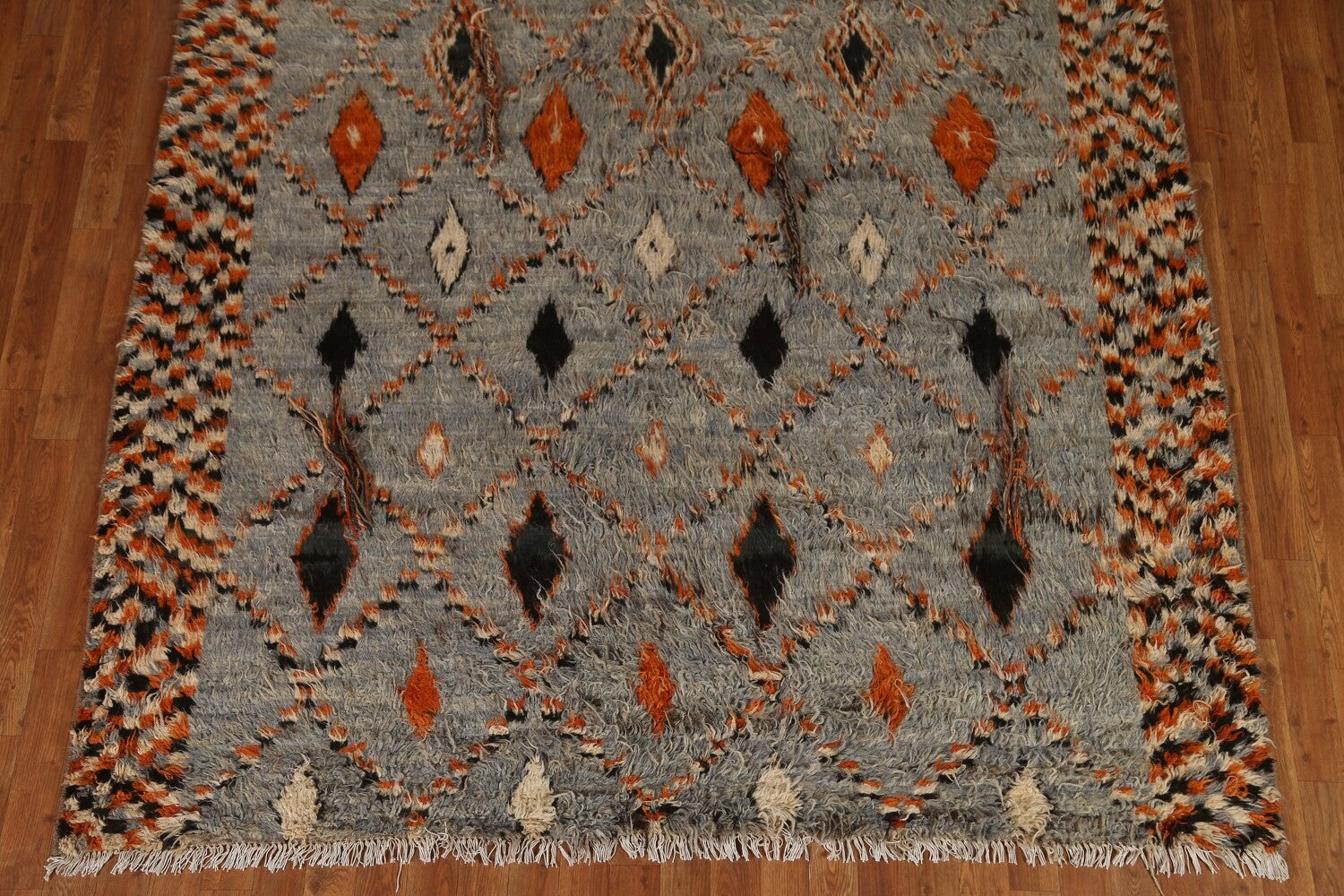 A Beautiful Genuine Pakistan Moroccan rug is Hand Knotted by skillful weavers in Pakistan with 100% Wool Material. This rug is in condition. dimensions are 9' 5'' X 6' 9'' in foot and 287 X 206 in centimeter. the primary color is Greys & Charcoal.