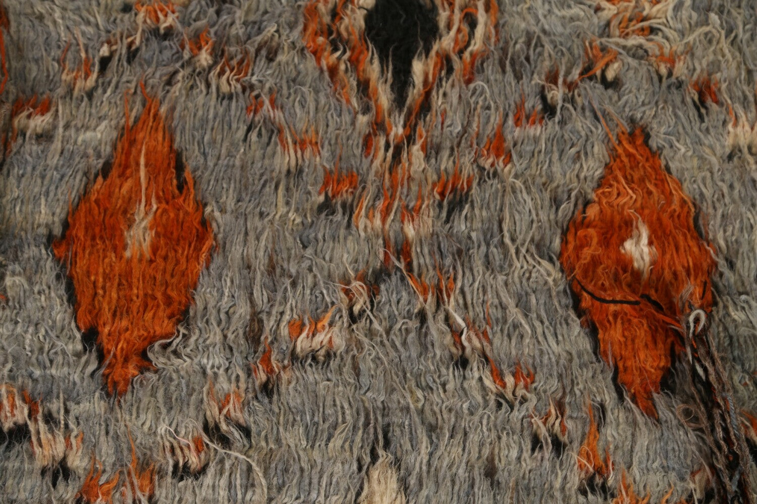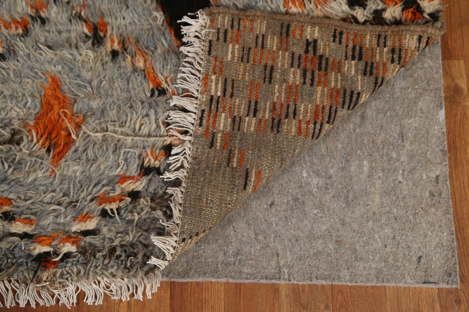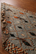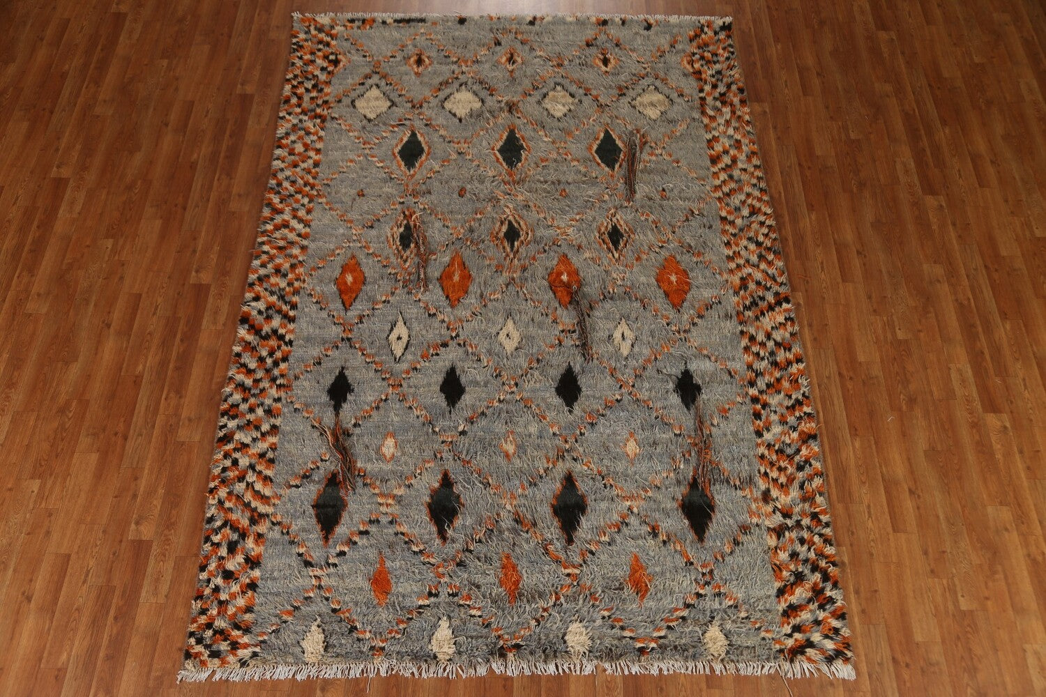A Beautiful Genuine Pakistan Moroccan rug is Hand Knotted by skillful weavers in Pakistan with 100% Wool Material. This rug is in condition. dimensions are 9' 5'' X 6' 9'' in foot and 287 X 206 in centimeter. the primary color is Greys & Charcoal.