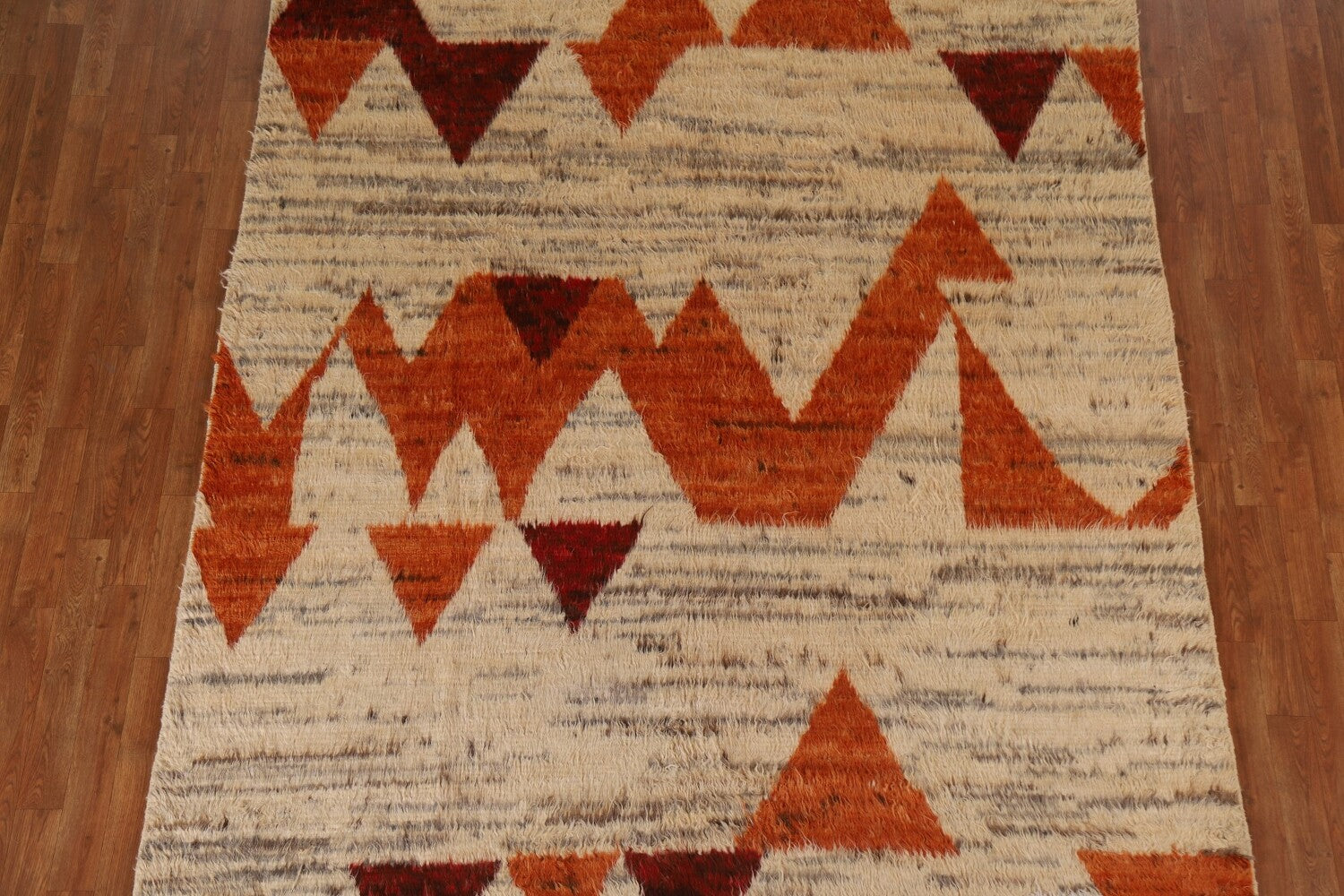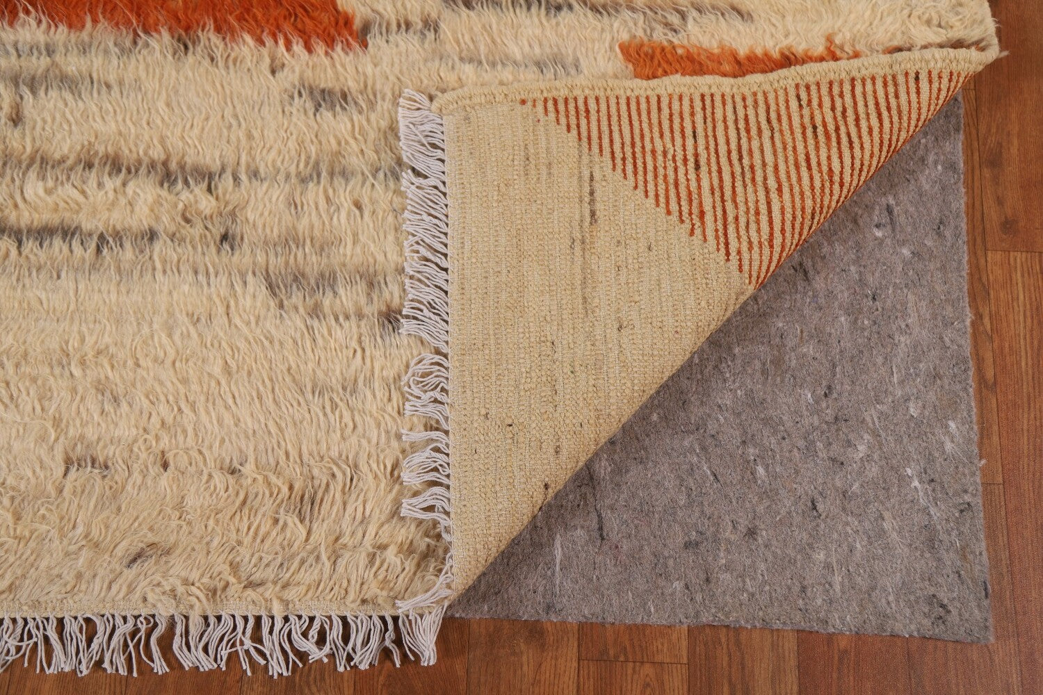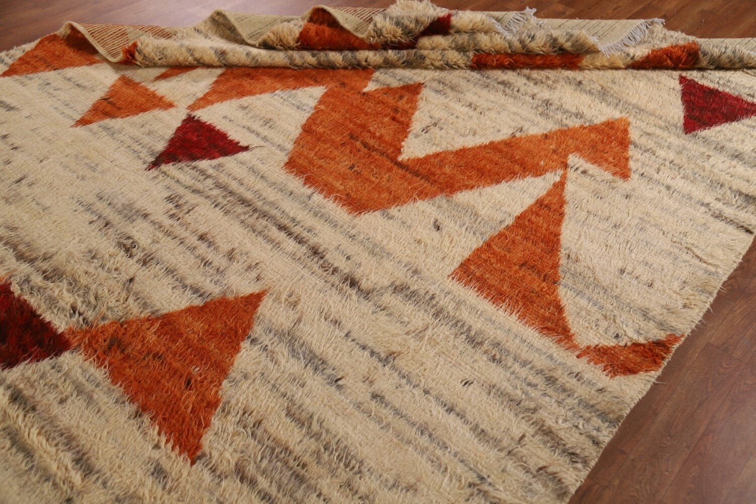 A Beautiful Genuine Pakistan Moroccan rug is Hand Knotted by skillful weavers in Pakistan with 100% Wool Material. This rug is in New, First Quality condition. dimensions are 9' 4'' X 6' 9'' in foot and 284 X 206 in centimeter. the primary color is Beige & Ivories.