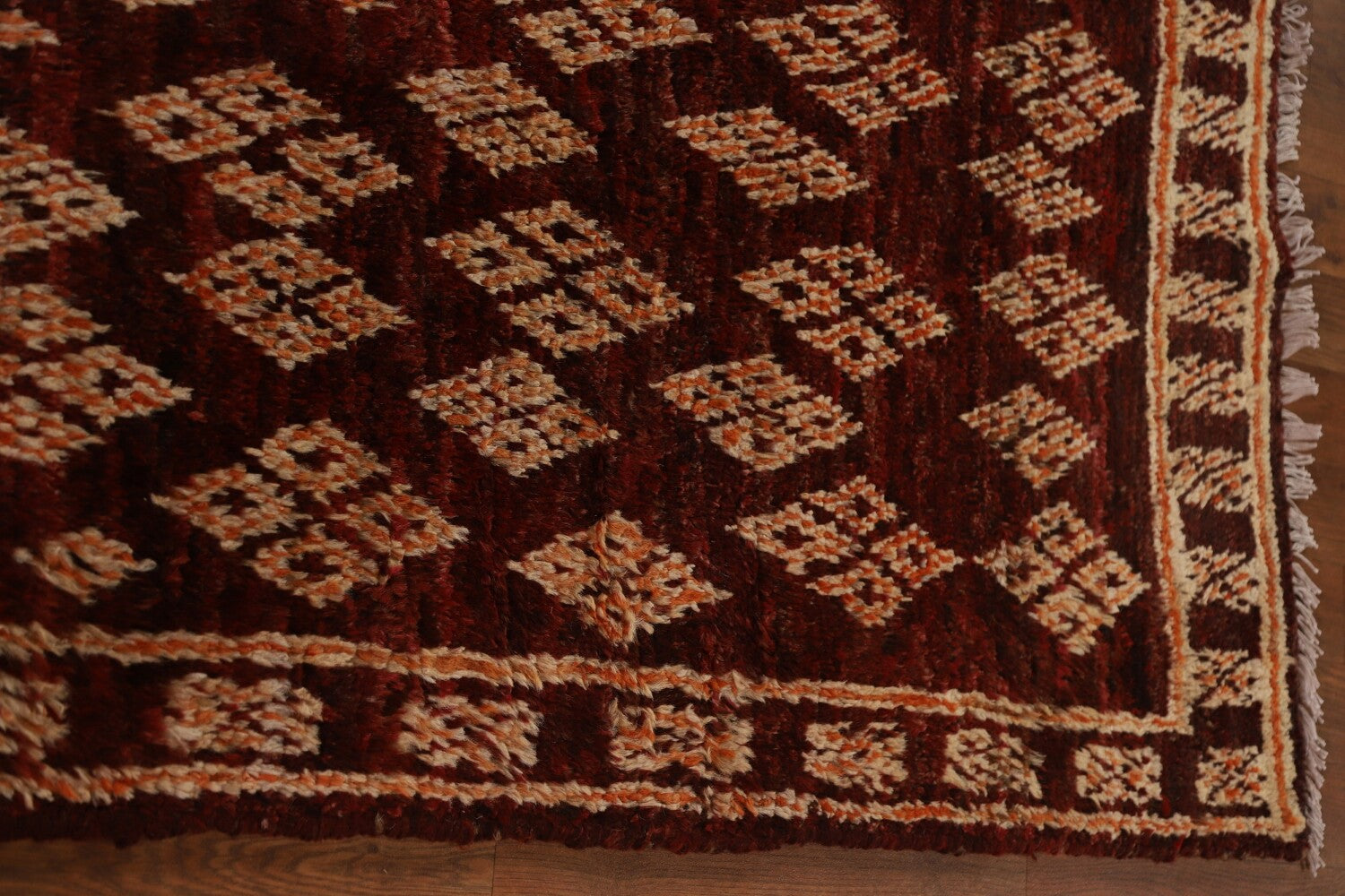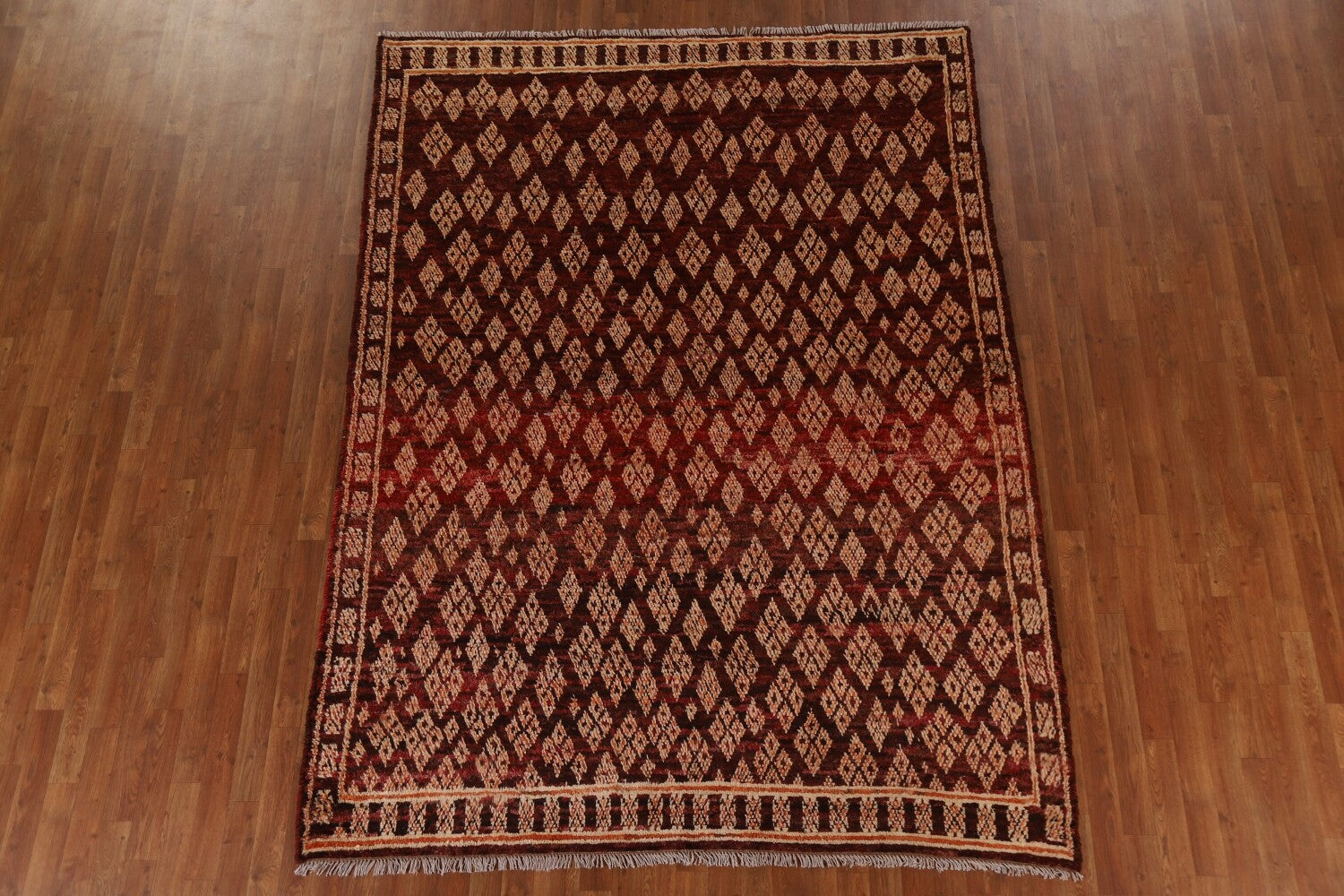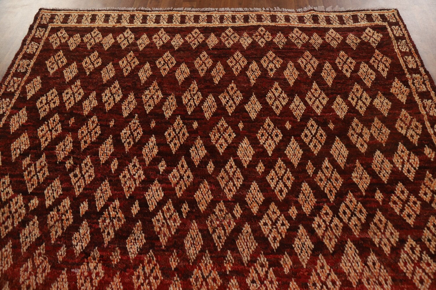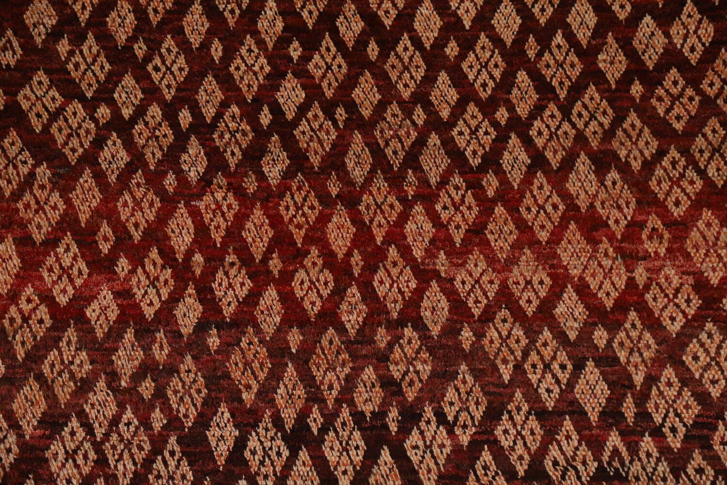 A Beautiful Genuine Pakistan Moroccan rug is Hand Knotted by skillful weavers in Pakistan with 100% Wool Material. This rug is in New, First Quality condition. dimensions are 9' 2'' X 6' 10'' in foot and 279 X 208 in centimeter. the primary color is Red.