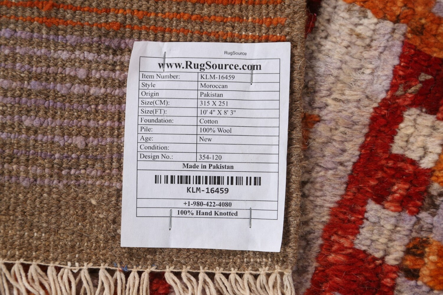 A Beautiful Genuine Pakistan Moroccan rug is Hand Knotted by skillful weavers in Pakistan with 100% Wool Material. This rug is in condition. dimensions are 10' 4'' X 8' 3'' in foot and 315 X 251 in centimeter. the primary color is Multi-Colored.