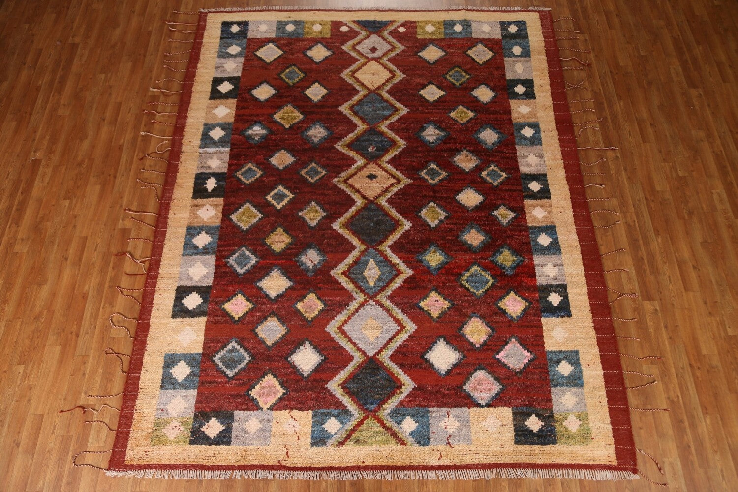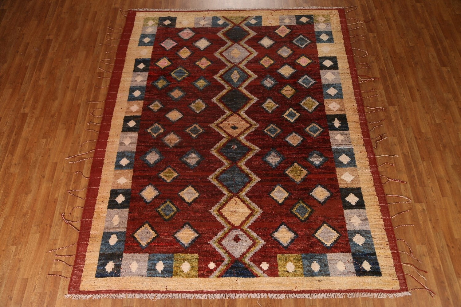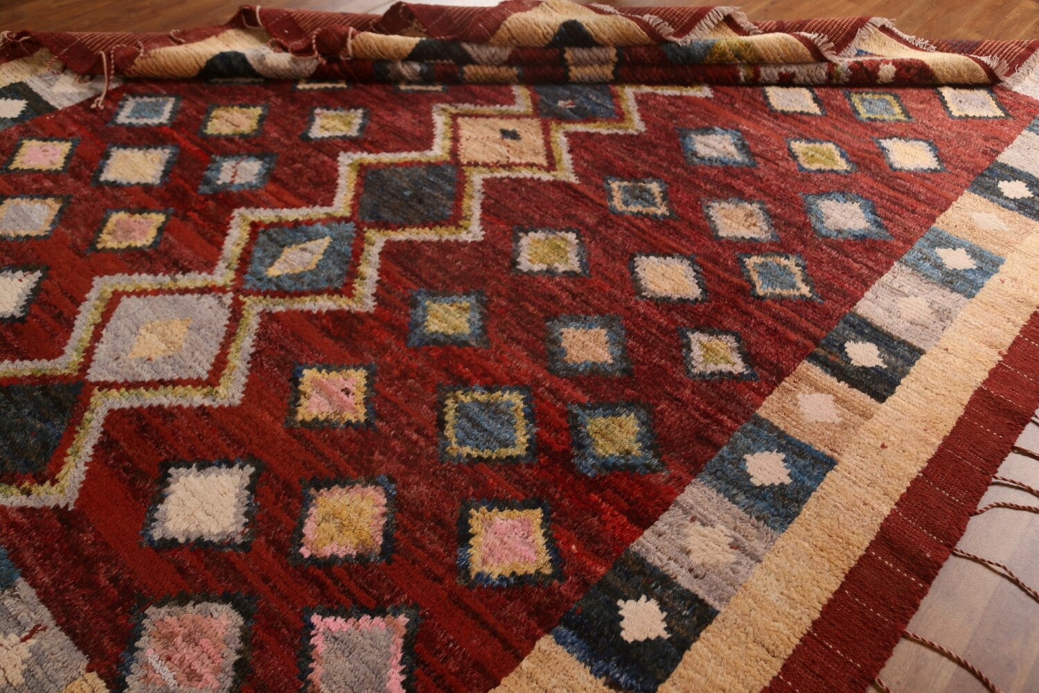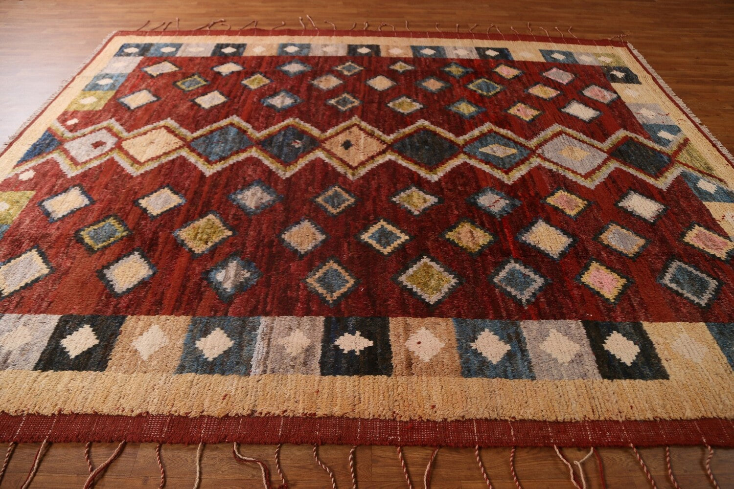 A Beautiful Genuine Pakistan Moroccan rug is Hand Knotted by skillful weavers in Pakistan with 100% Wool Material. This rug is in condition. dimensions are 10' 3'' X 8' 3'' in foot and 312 X 251 in centimeter. the primary color is Red.