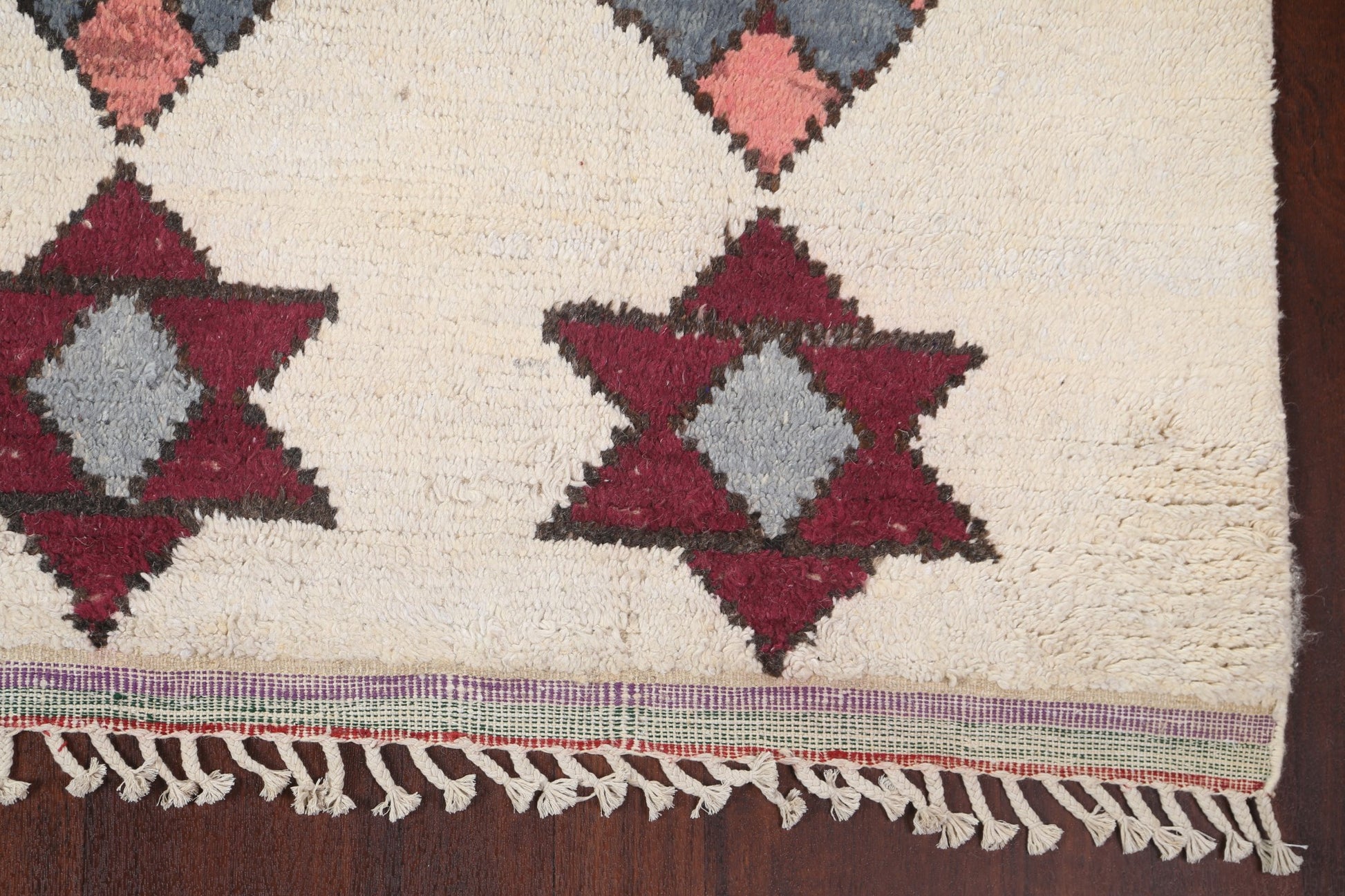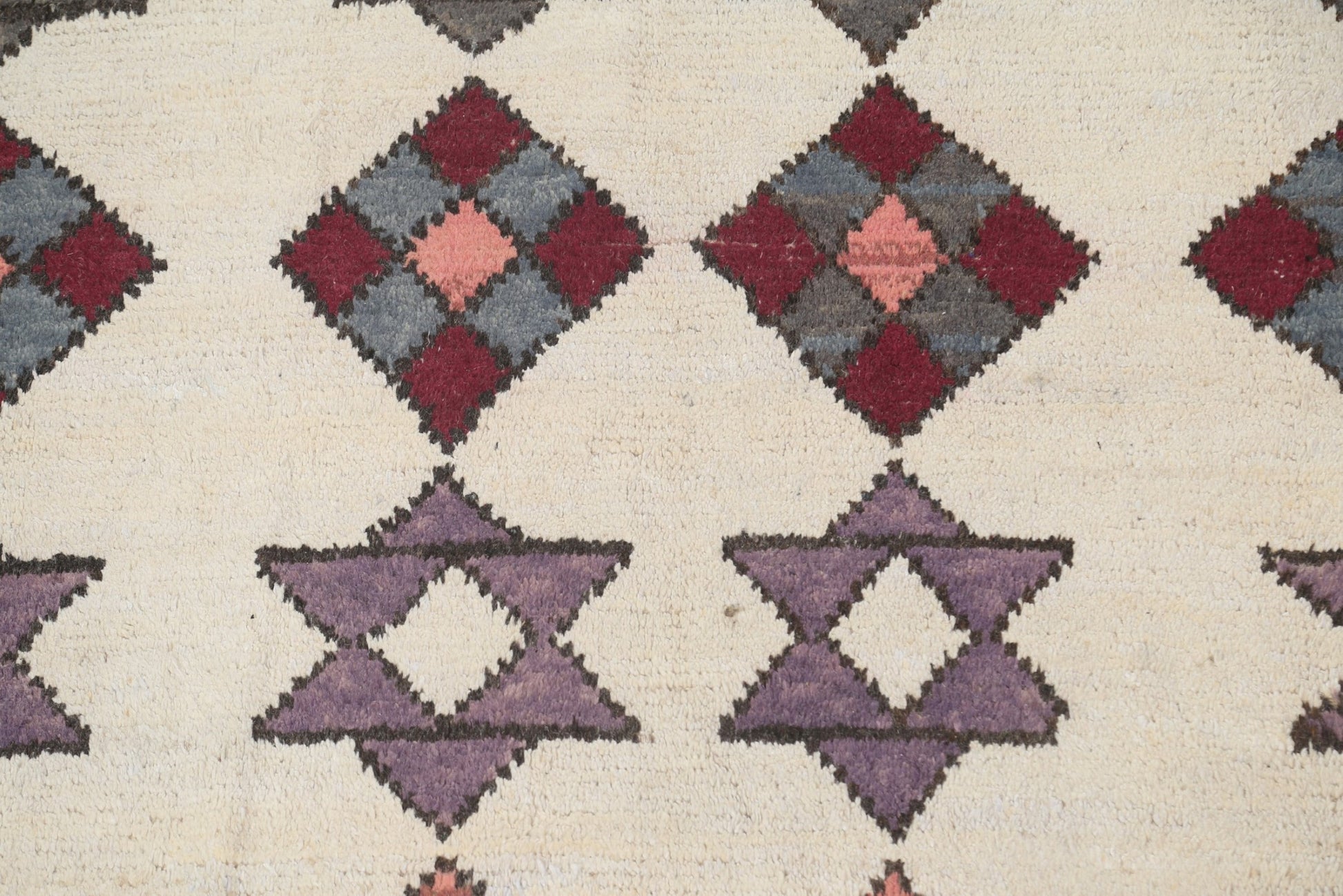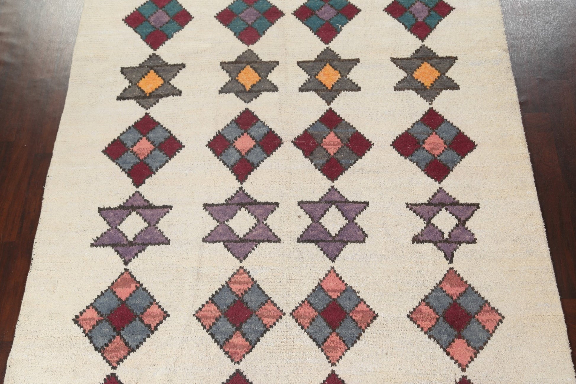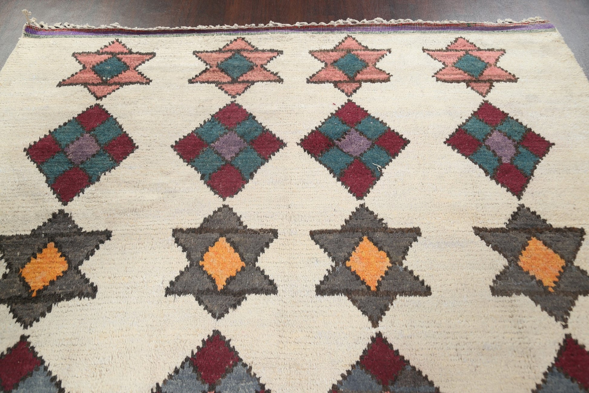 A Beautiful Genuine Morocco Moroccan rug is Hand Knotted by skillful weavers in Morocco with 100% Wool Material. This rug is in New, First Quality condition. dimensions are 10' 7'' X 7' 10'' in foot and 323 X 239 in centimeter. the primary color is Beige & Ivories.