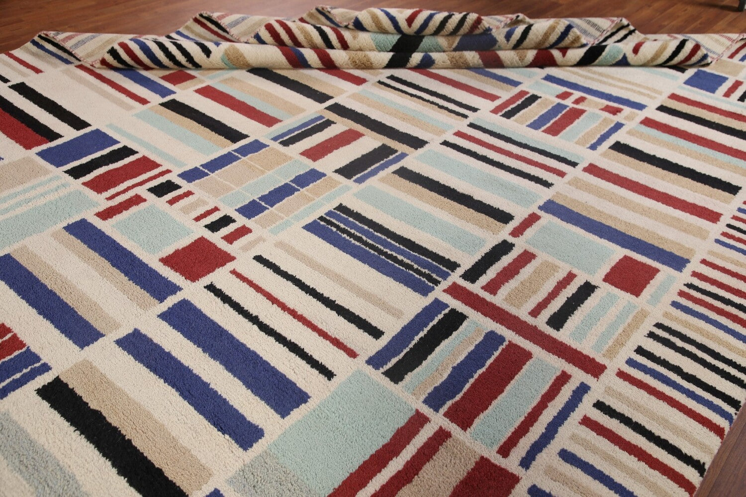 A Beautiful Genuine India Moroccan rug is Hand Knotted by skillful weavers in India with 100% Wool Material. This rug is in New, First Quality condition. dimensions are 12' 2'' X 9' 3'' in foot and 371 X 282 in centimeter. the primary color is Beige & Ivories.