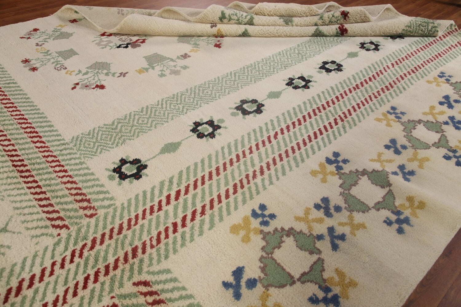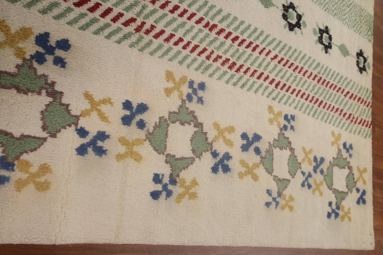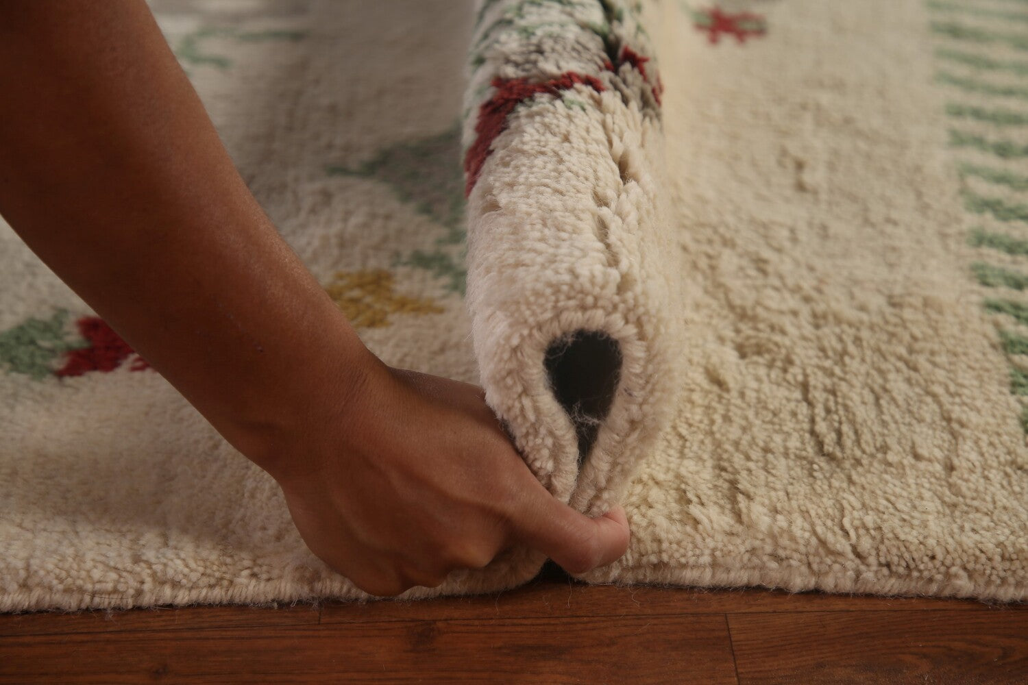 A Beautiful Genuine India Moroccan rug is Hand Knotted by skillful weavers in India with 100% Wool Material. This rug is in New, First Quality condition. dimensions are 12' 4'' X 9' 2'' in foot and 376 X 279 in centimeter. the primary color is Beige & Ivories.