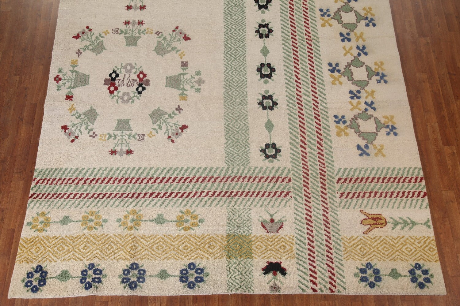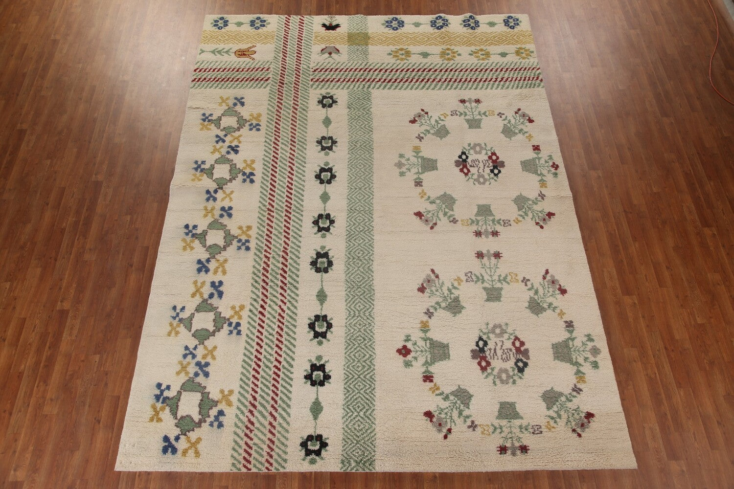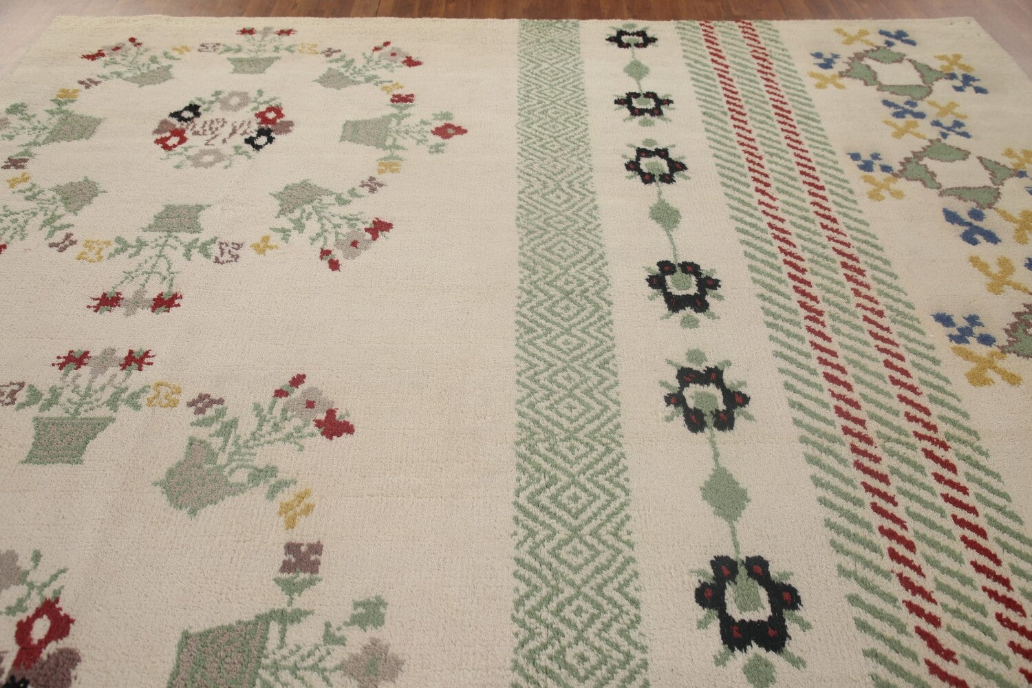 A Beautiful Genuine India Moroccan rug is Hand Knotted by skillful weavers in India with 100% Wool Material. This rug is in New, First Quality condition. dimensions are 12' 4'' X 9' 2'' in foot and 376 X 279 in centimeter. the primary color is Beige & Ivories.