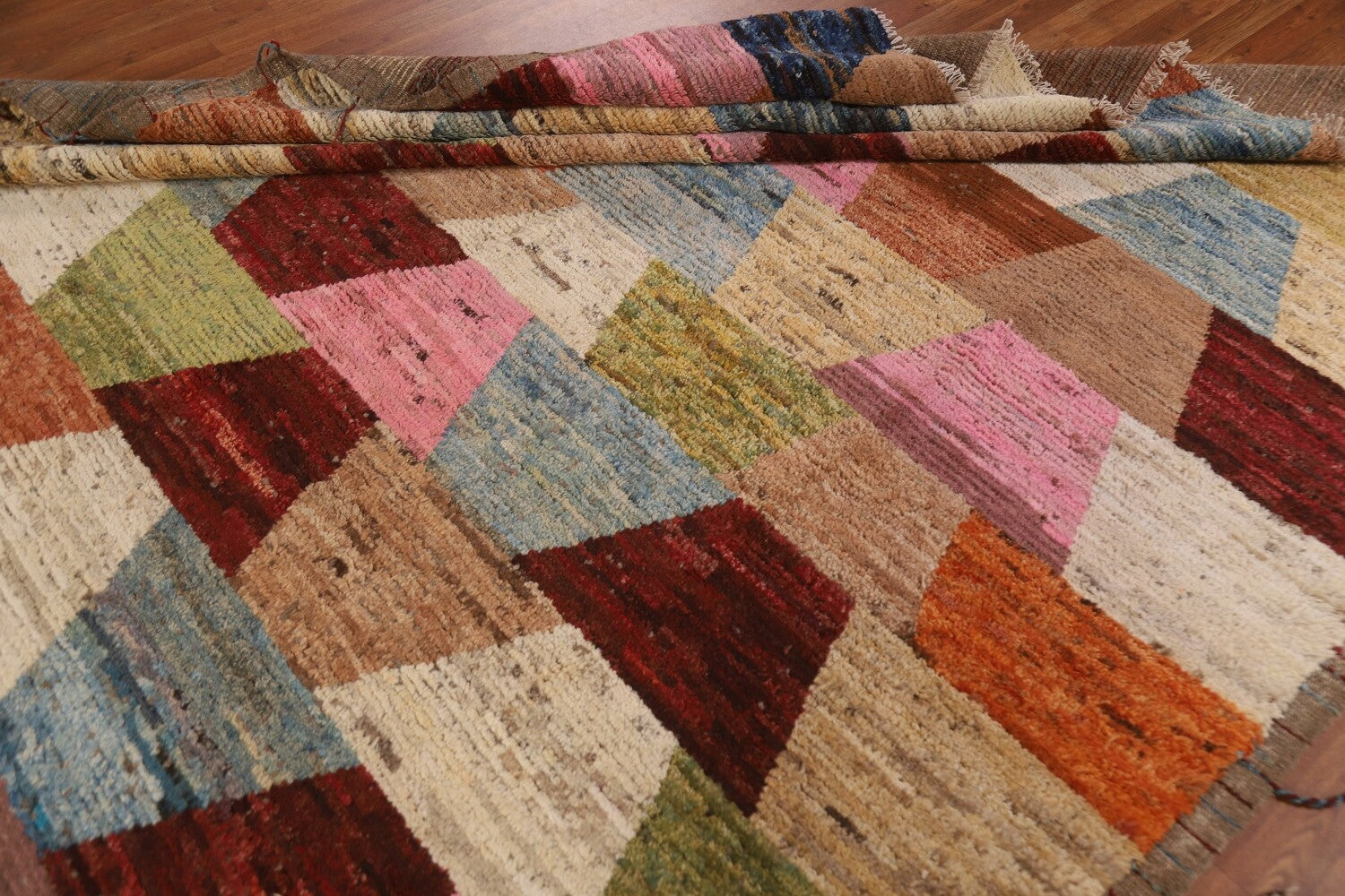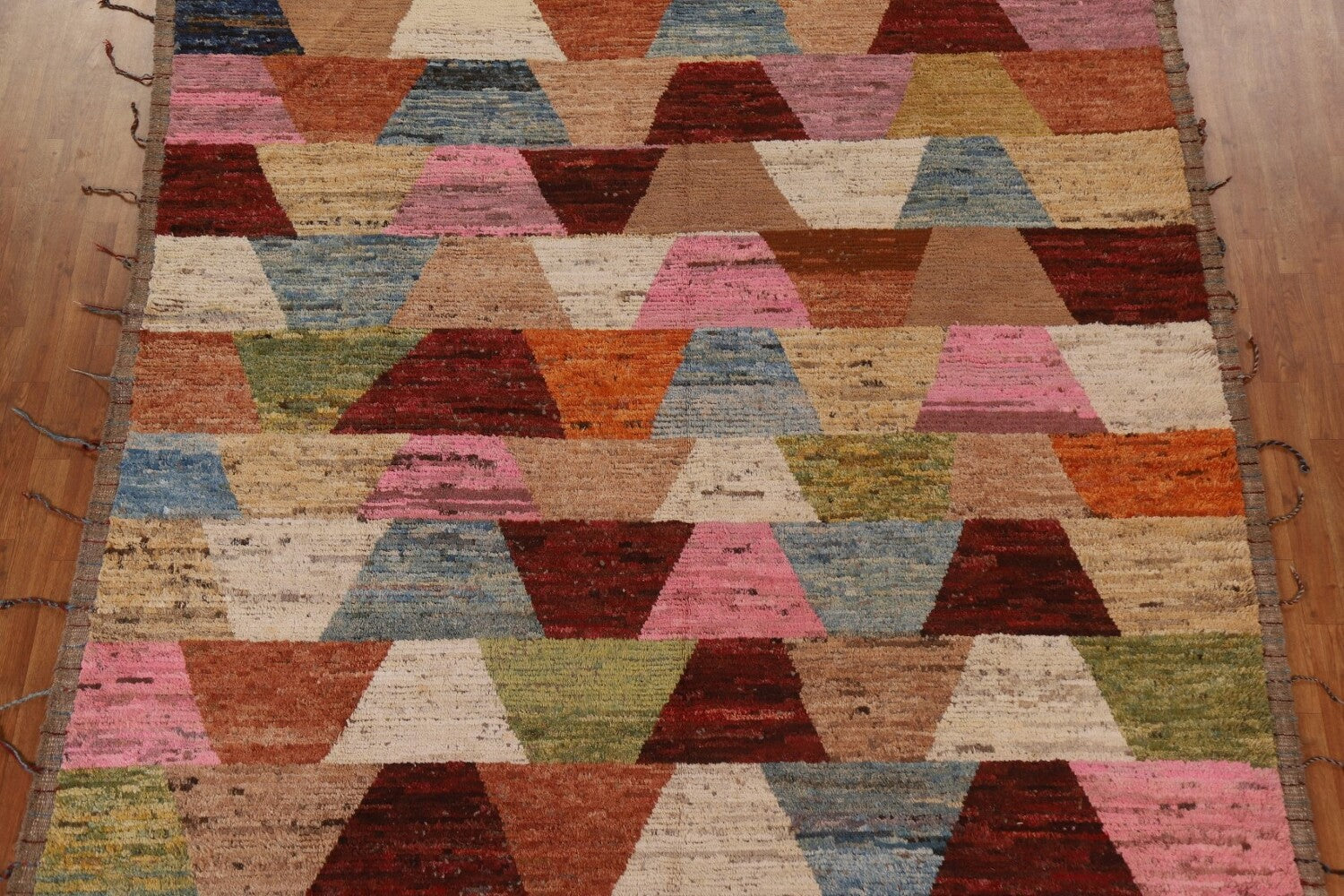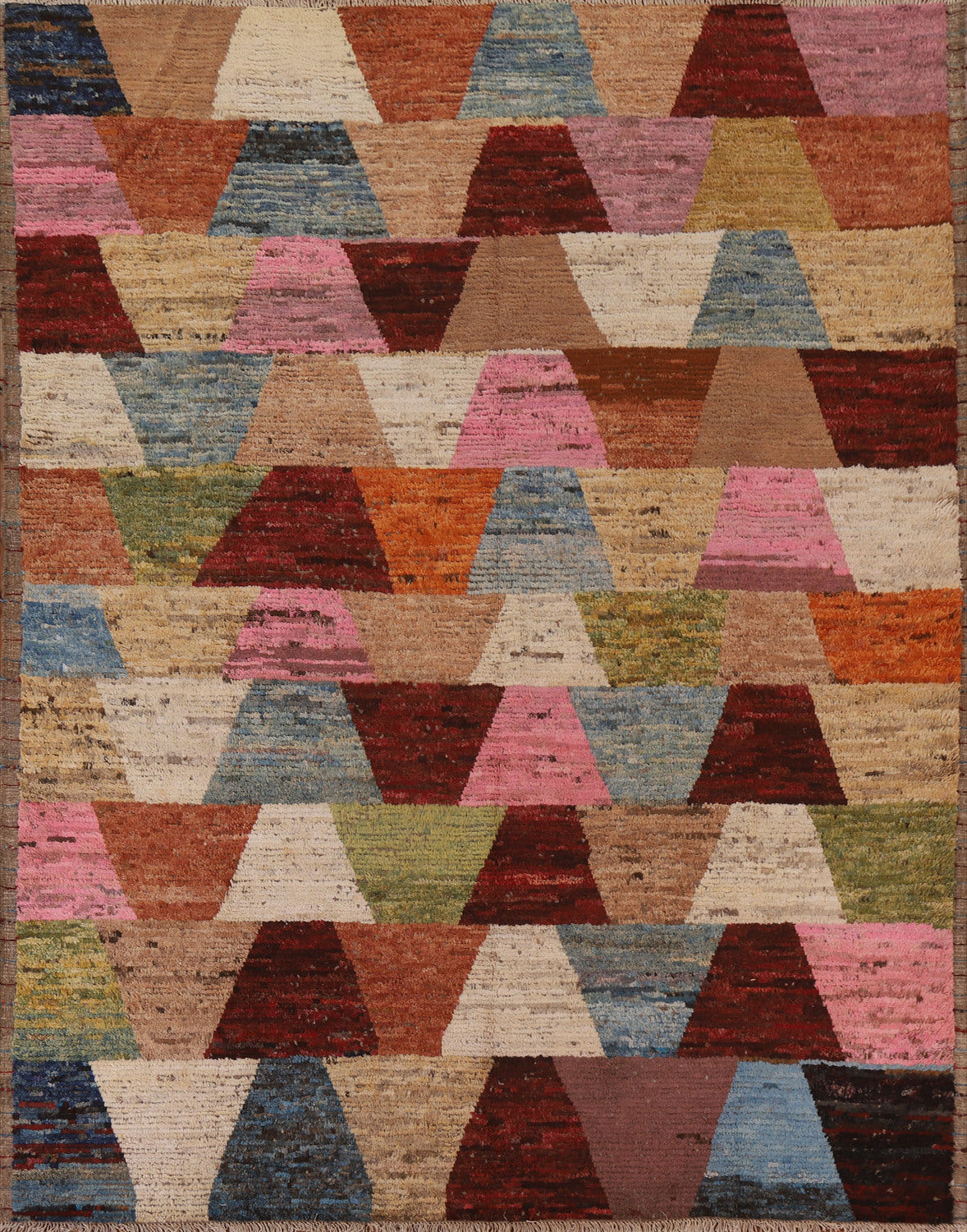 A Beautiful Genuine Pakistan Moroccan rug is Hand Knotted by skillful weavers in Pakistan with 100% Wool Material. This rug is in condition. dimensions are 9' 5'' X 8' 7'' in foot and 287 X 262 in centimeter. the primary color is Multi-Colored.