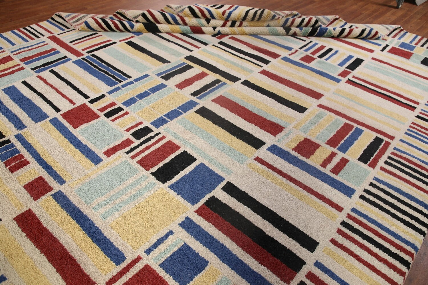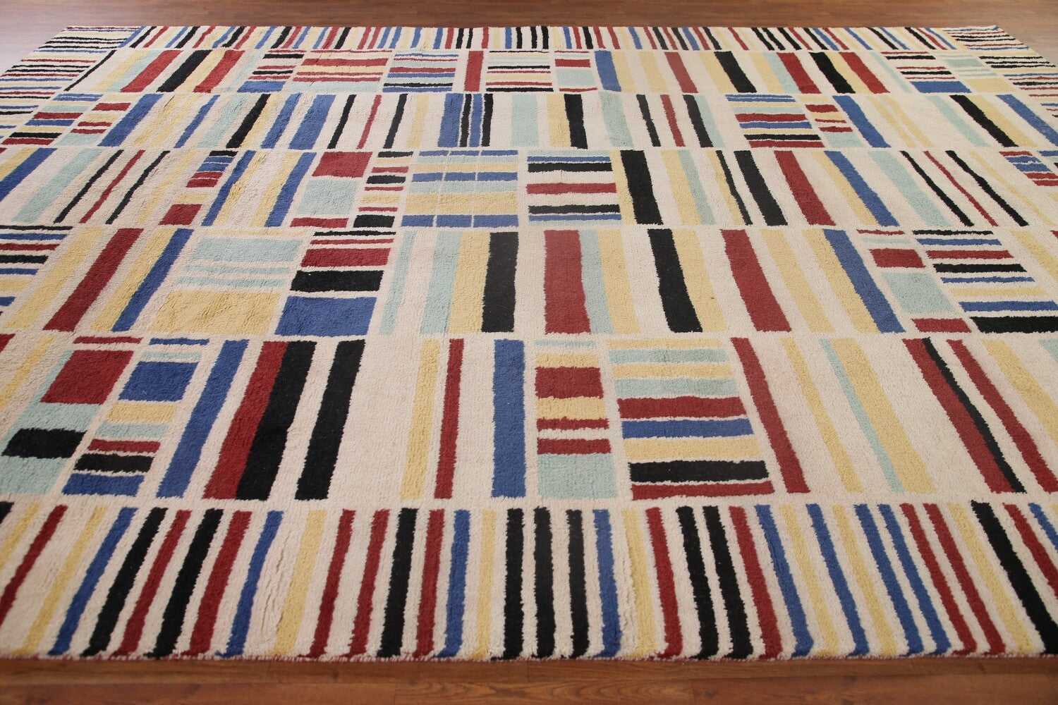 A Beautiful Genuine India Moroccan rug is Hand Knotted by skillful weavers in India with 100% Wool Material. This rug is in condition. dimensions are 13' 10'' X 10' 1'' in foot and 422 X 307 in centimeter. the primary color is Beige & Ivories.