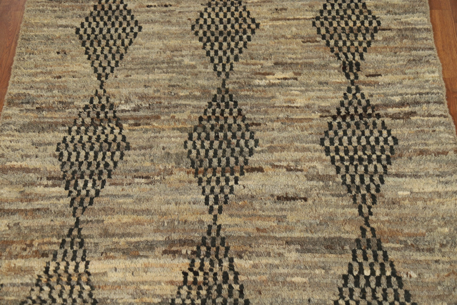 A Beautiful Genuine Pakistan Moroccan rug is Hand Knotted by skillful weavers in Pakistan with 100% Wool Material. This rug is in New, First Quality condition. dimensions are 6' 3'' X 4' 10'' in foot and 191 X 147 in centimeter. the primary color is Multi-Colored.