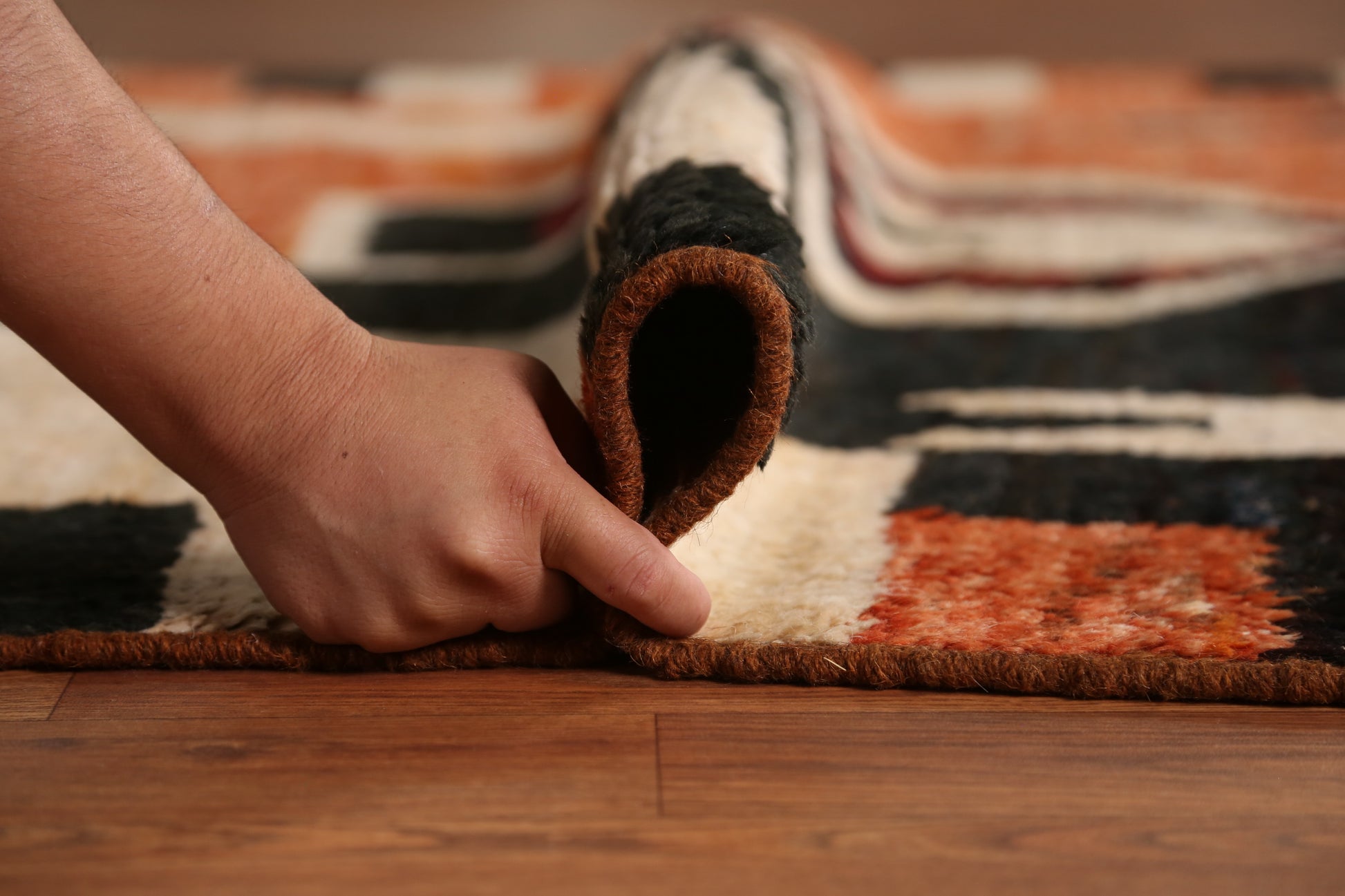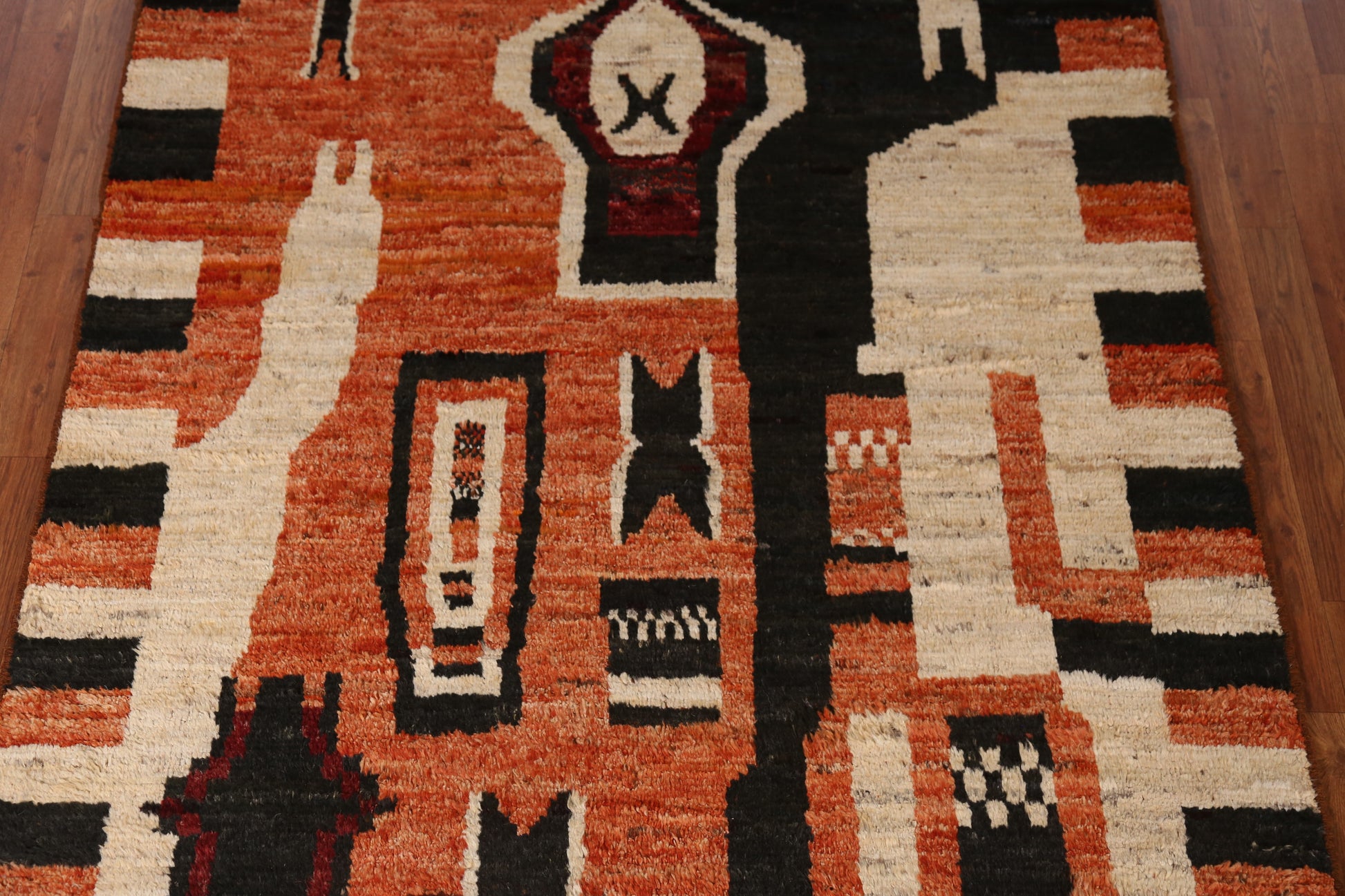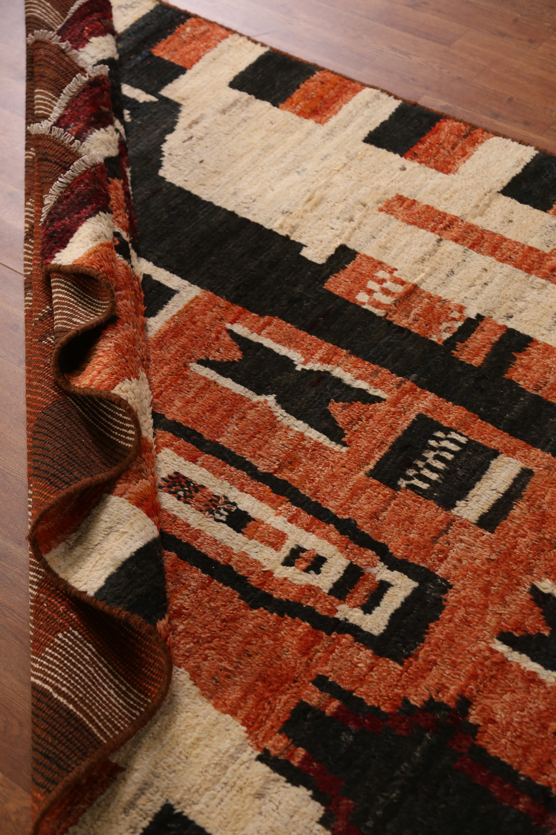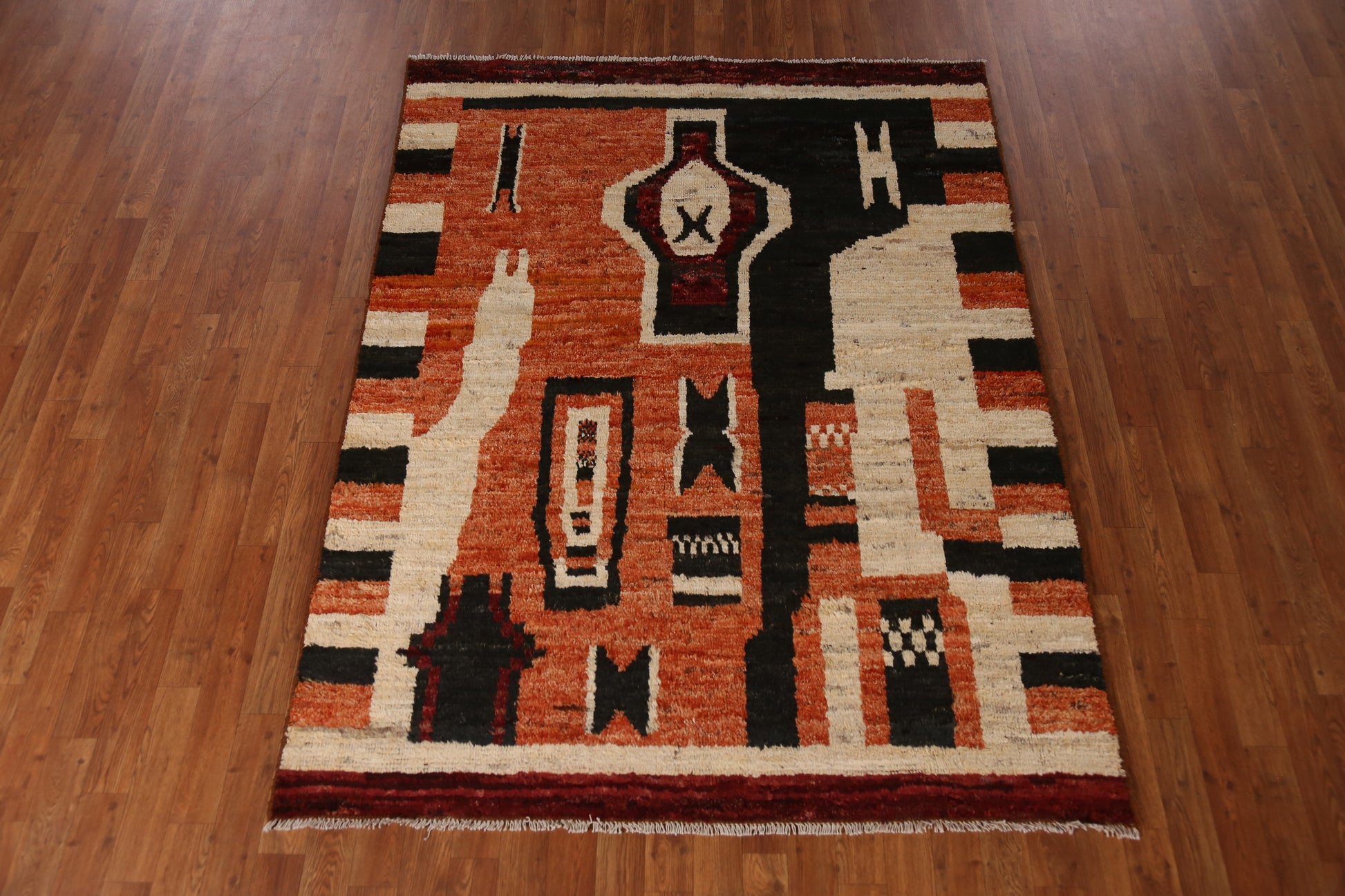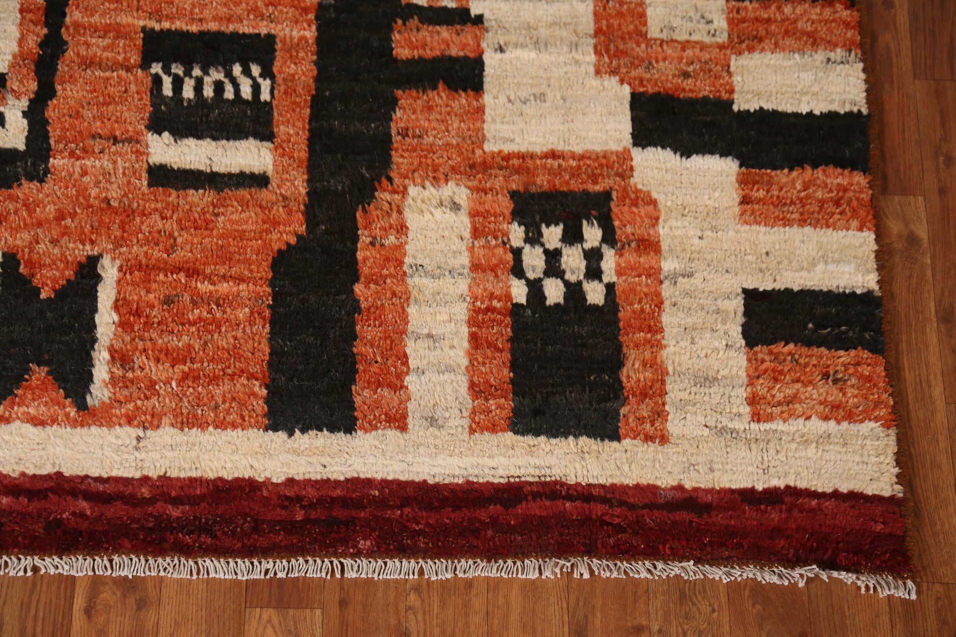 A Beautiful Genuine Pakistan Moroccan rug is Hand Knotted by skillful weavers in Pakistan with 100% Wool Material. This rug is in New, First Quality condition. dimensions are 6' 8'' X 5' 1'' in foot and 203 X 155 in centimeter. the primary color is Oranges & Rust.