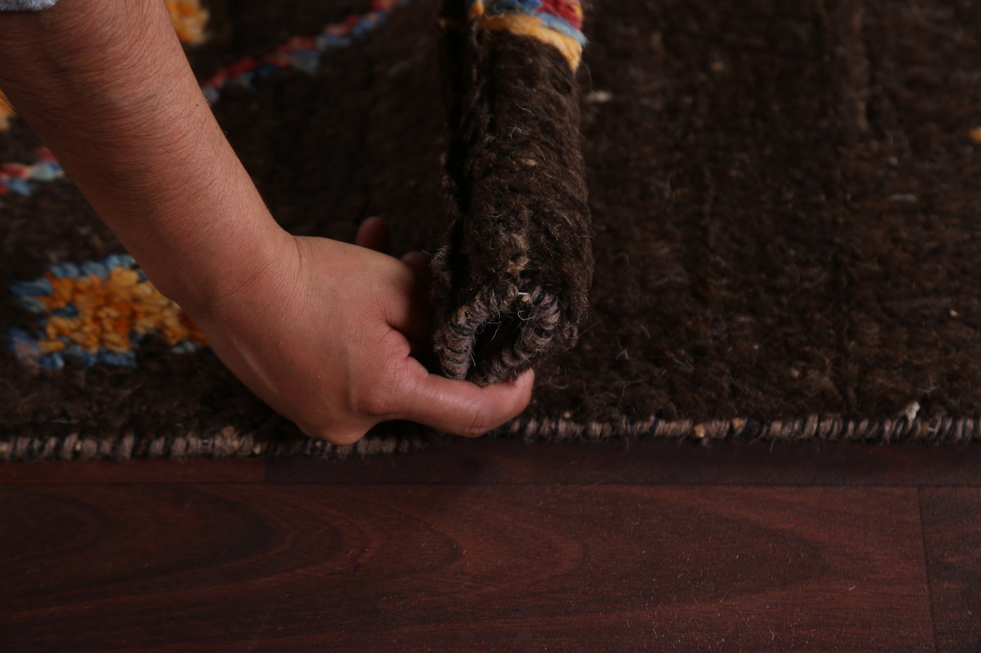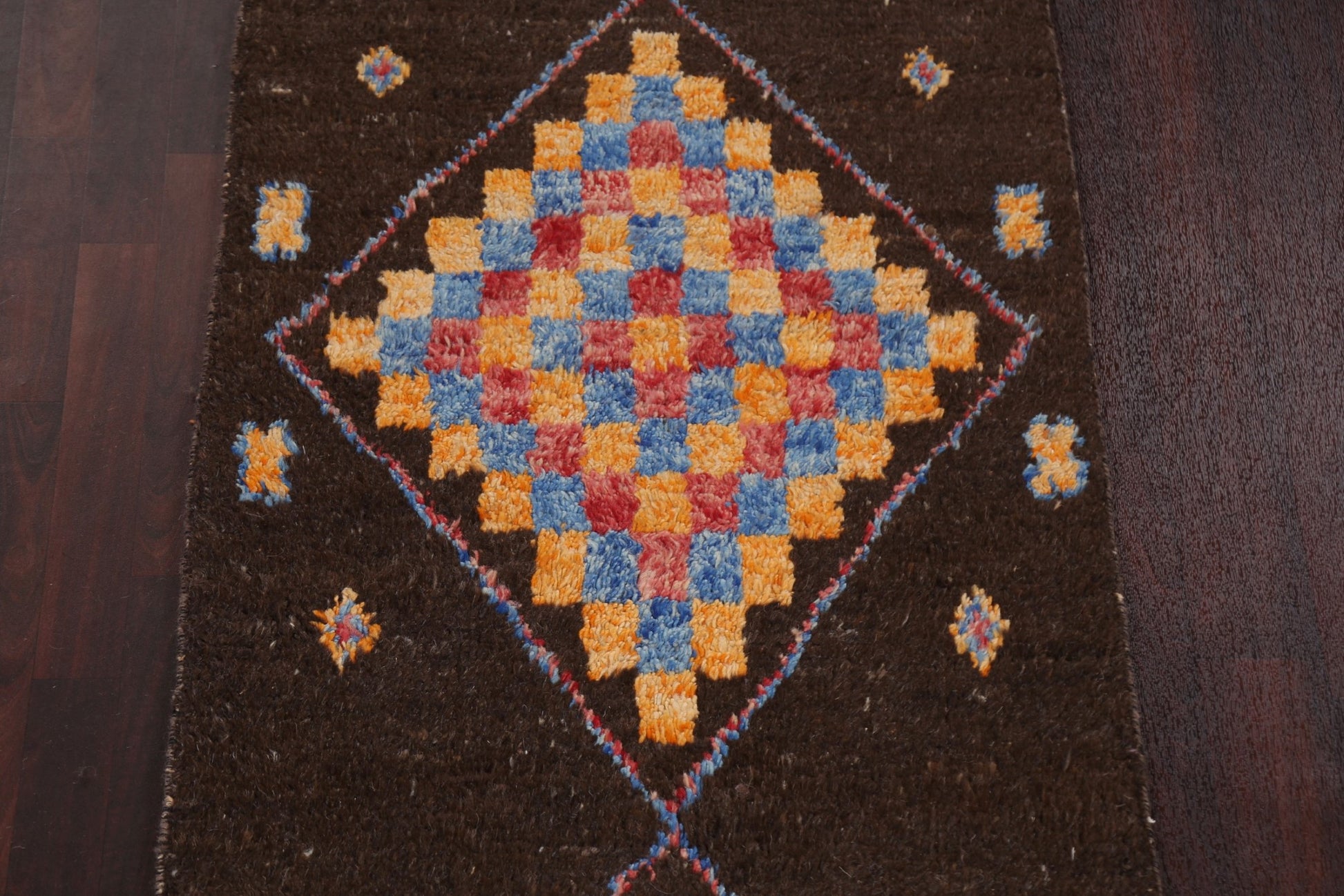 A Beautiful Genuine Morocco Moroccan rug is Hand Knotted by skillful weavers in Morocco with 100% Wool Material. This rug is in New, First Quality condition. dimensions are 12' 7'' X 3' 1'' in foot and 384 X 94 in centimeter. the primary color is Brown.