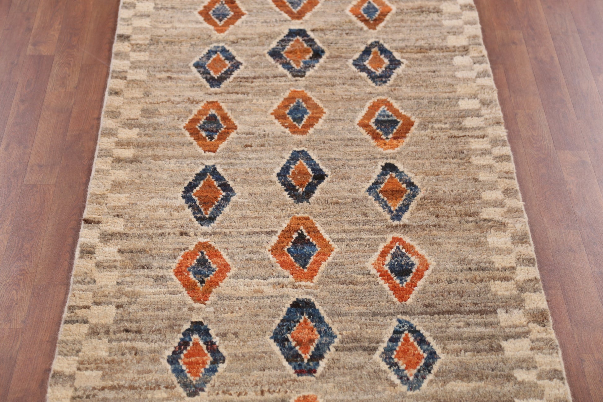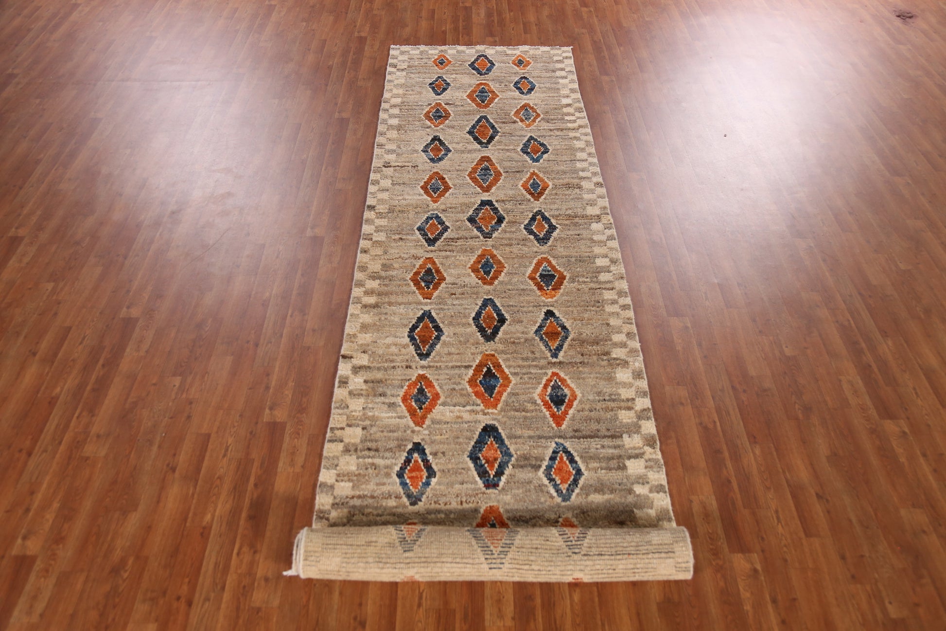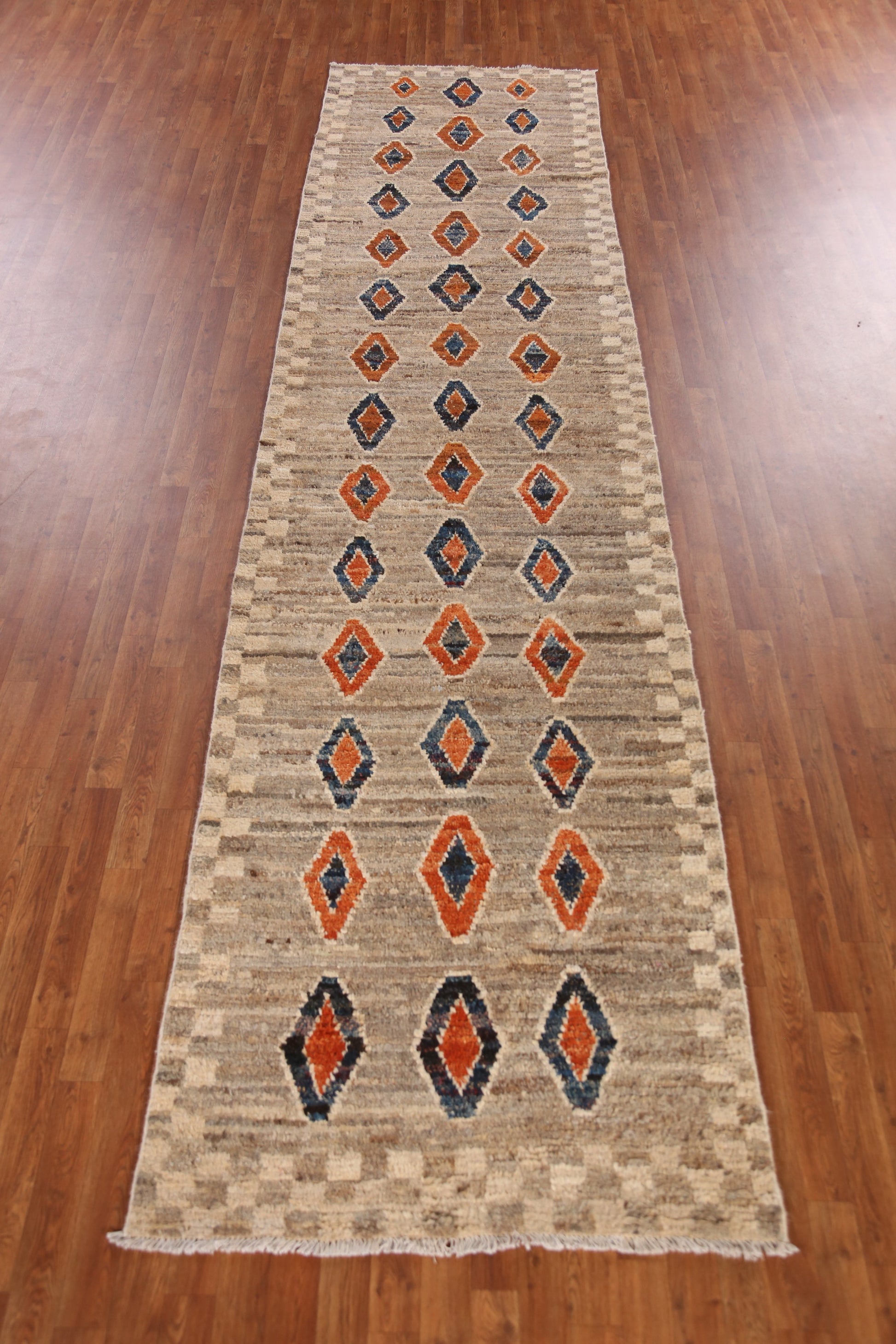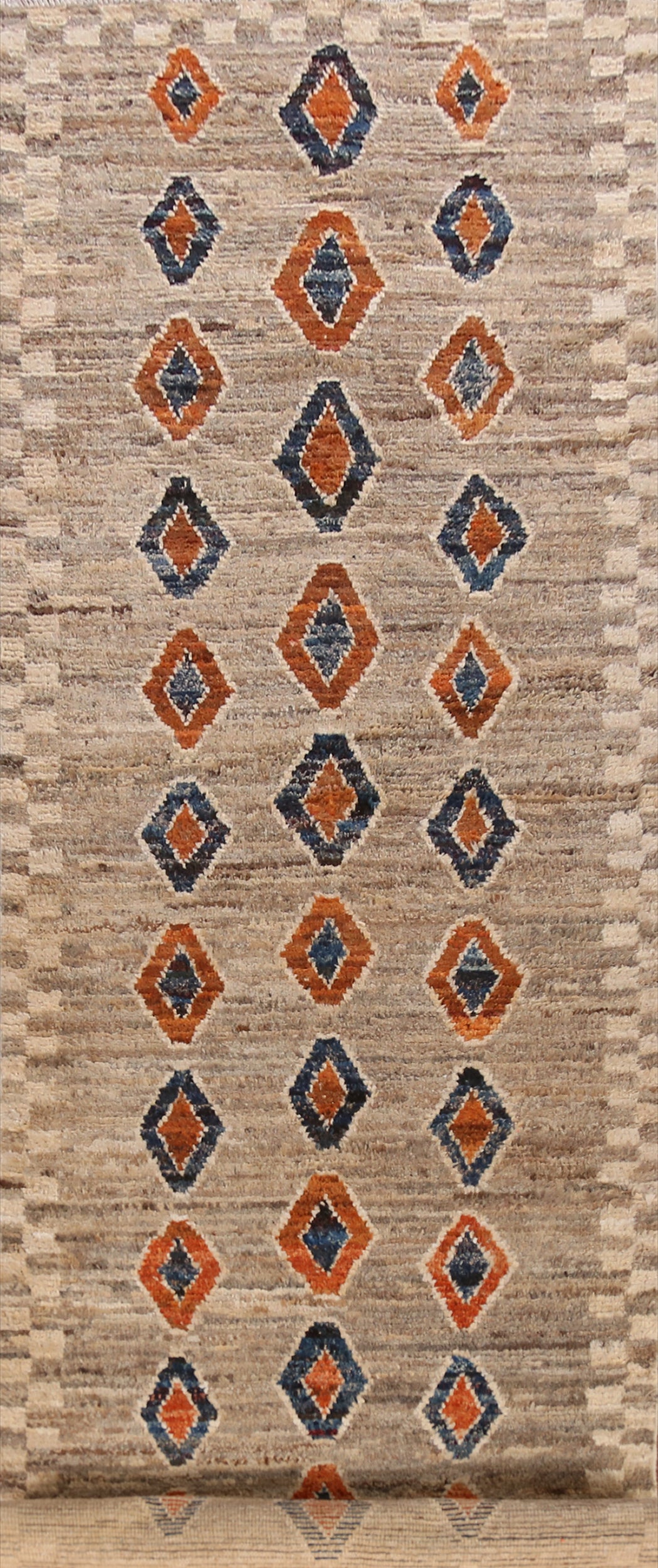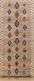 A Beautiful Genuine Pakistan Moroccan rug is Hand Knotted by skillful weavers in Pakistan with 100% Wool Material. This rug is in New, First Quality condition. dimensions are 15' 4'' X 3' 8'' in foot and 467 X 112 in centimeter. the primary color is Multi-Colored.