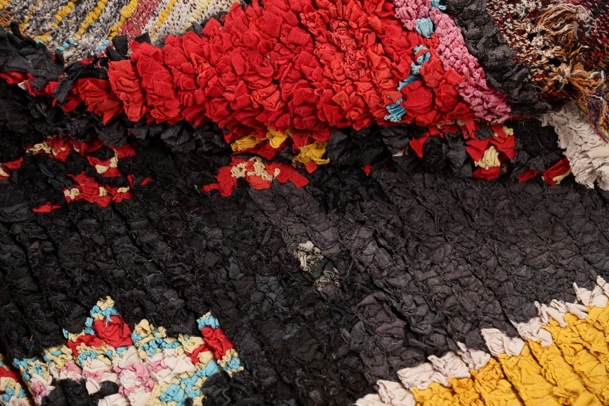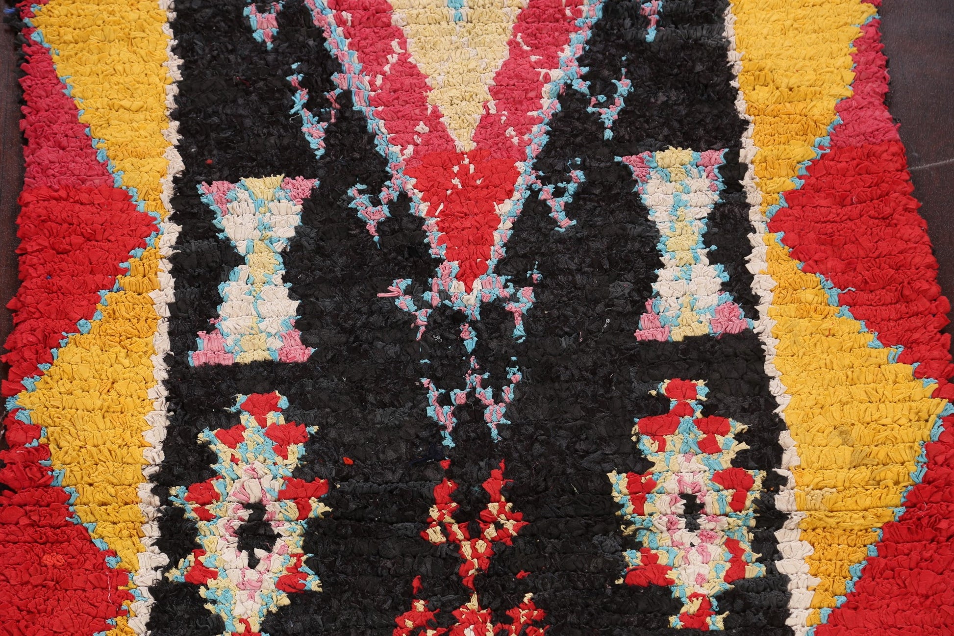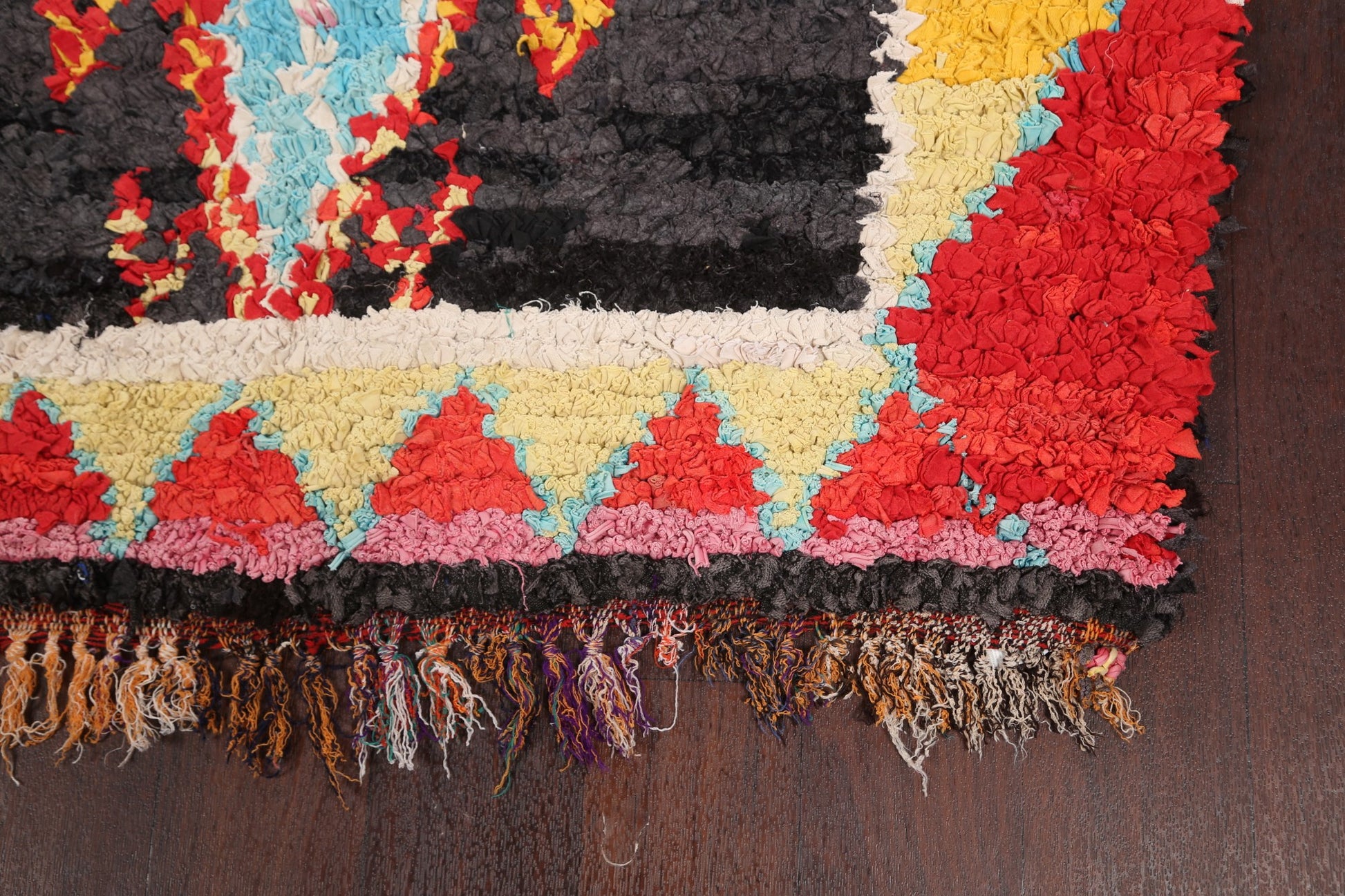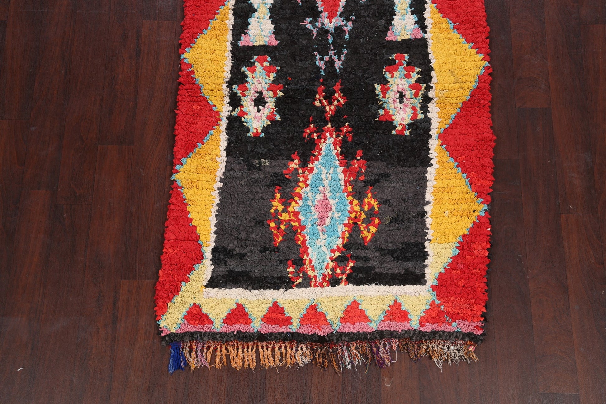 A Beautiful Genuine Morocco Moroccan rug is Hand Knotted by skillful weavers in Morocco with 100% Wool Material. This rug is in Very Good condition. dimensions are 8' 6'' X 3' 8'' in foot and 259 X 112 in centimeter. the primary color is Black.