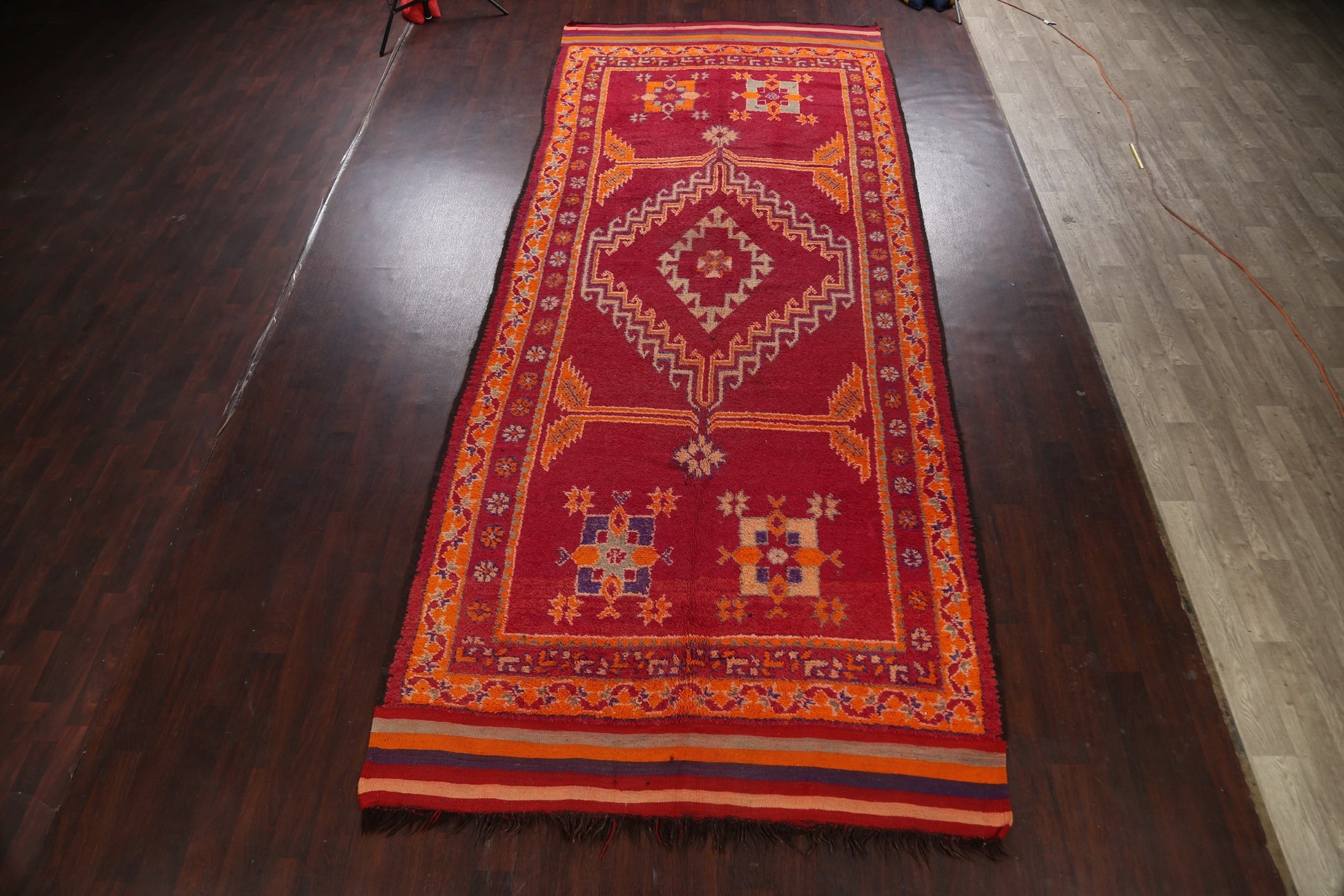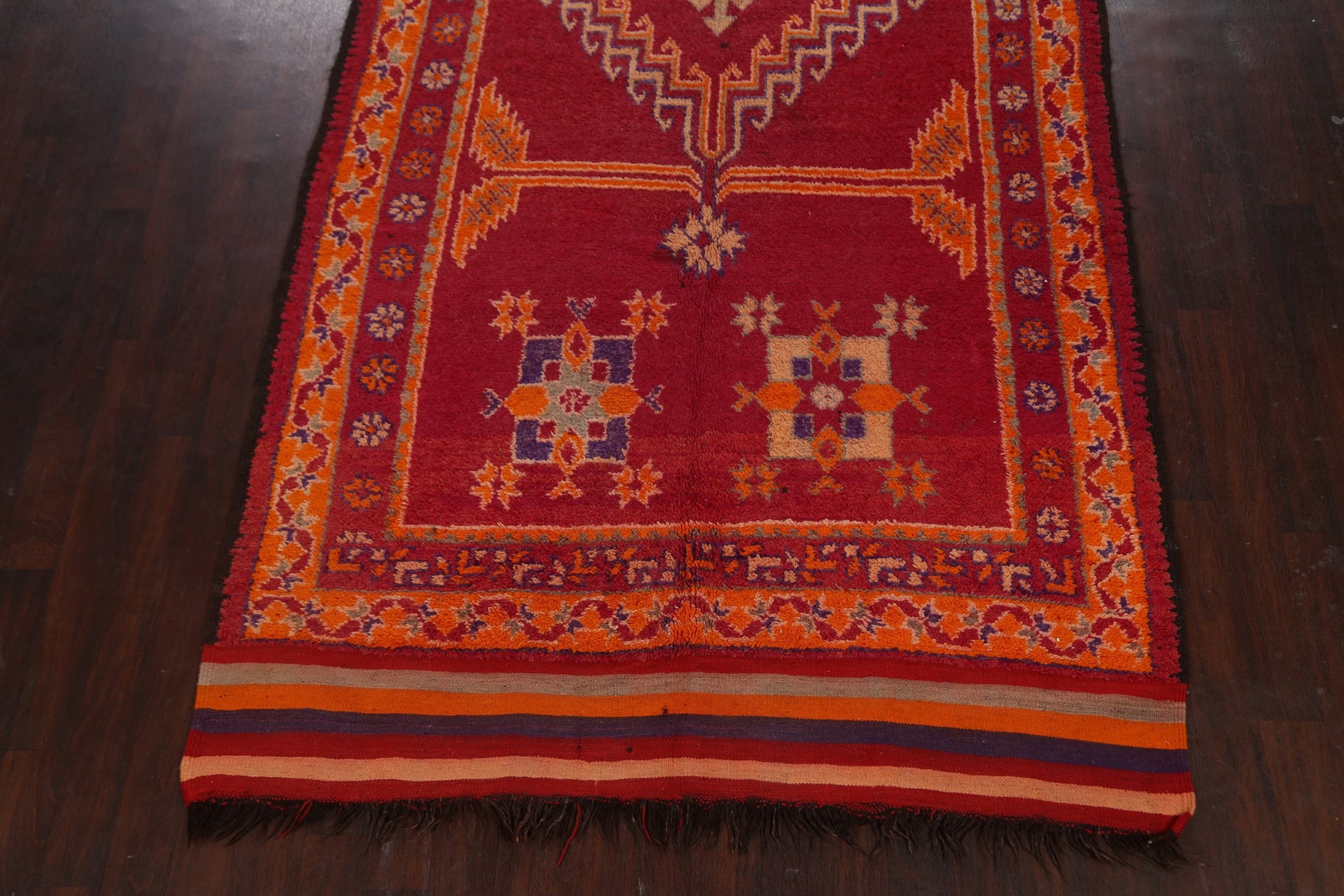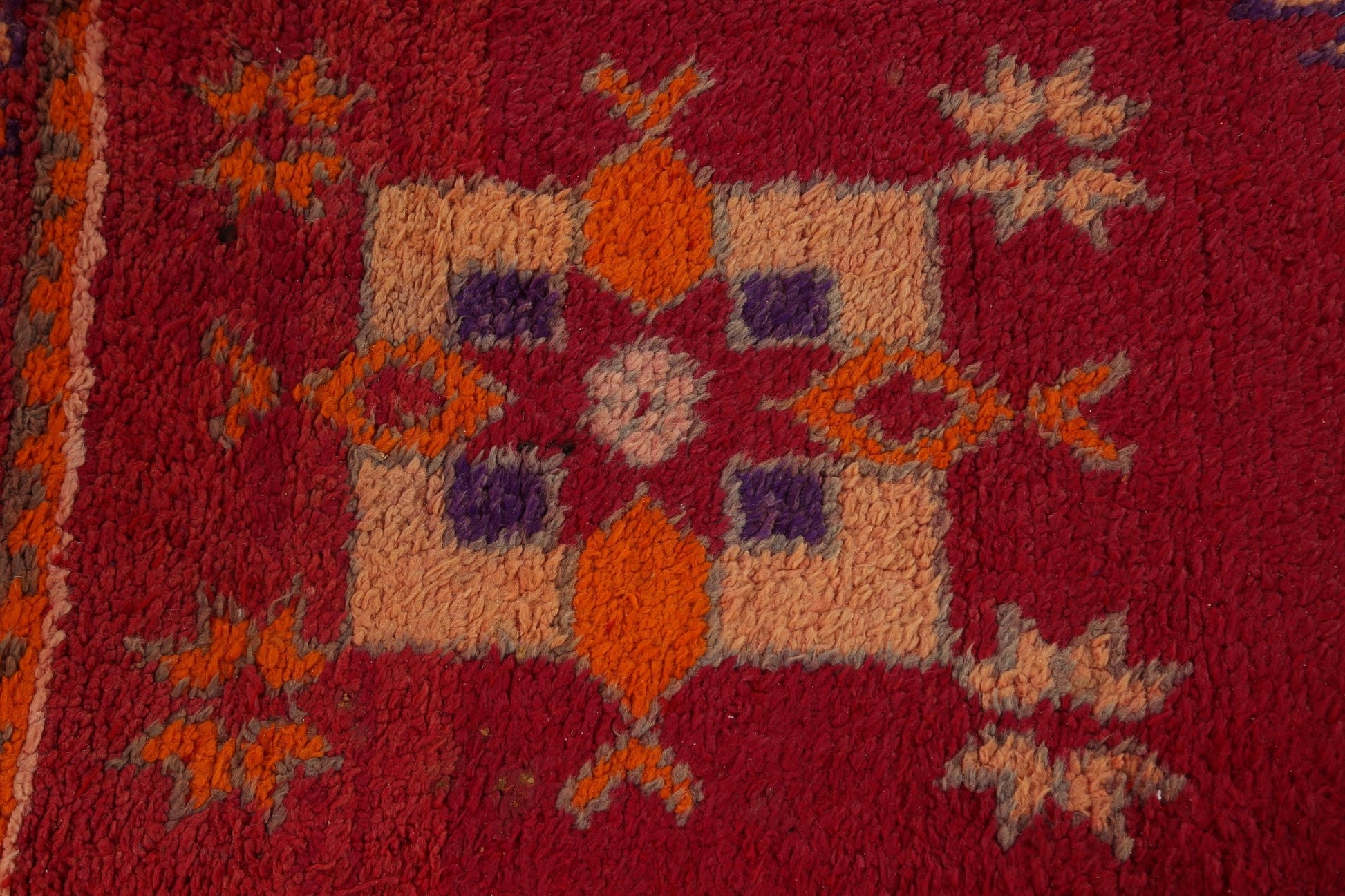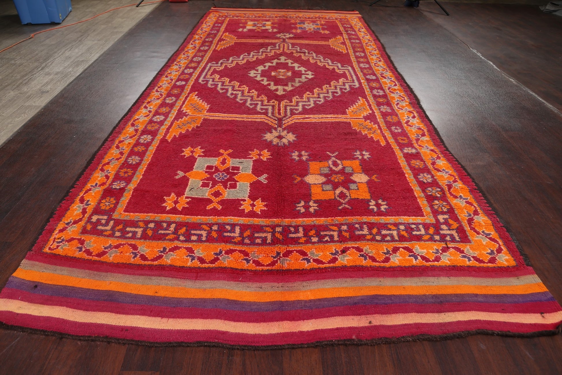 A Beautiful Genuine Morocco Moroccan rug is Hand Knotted by skillful weavers in Morocco with 100% Wool Material. This rug is in Very Good condition. dimensions are 16' 8'' X 6' 9'' in foot and 508 X 206 in centimeter. the primary color is Red.